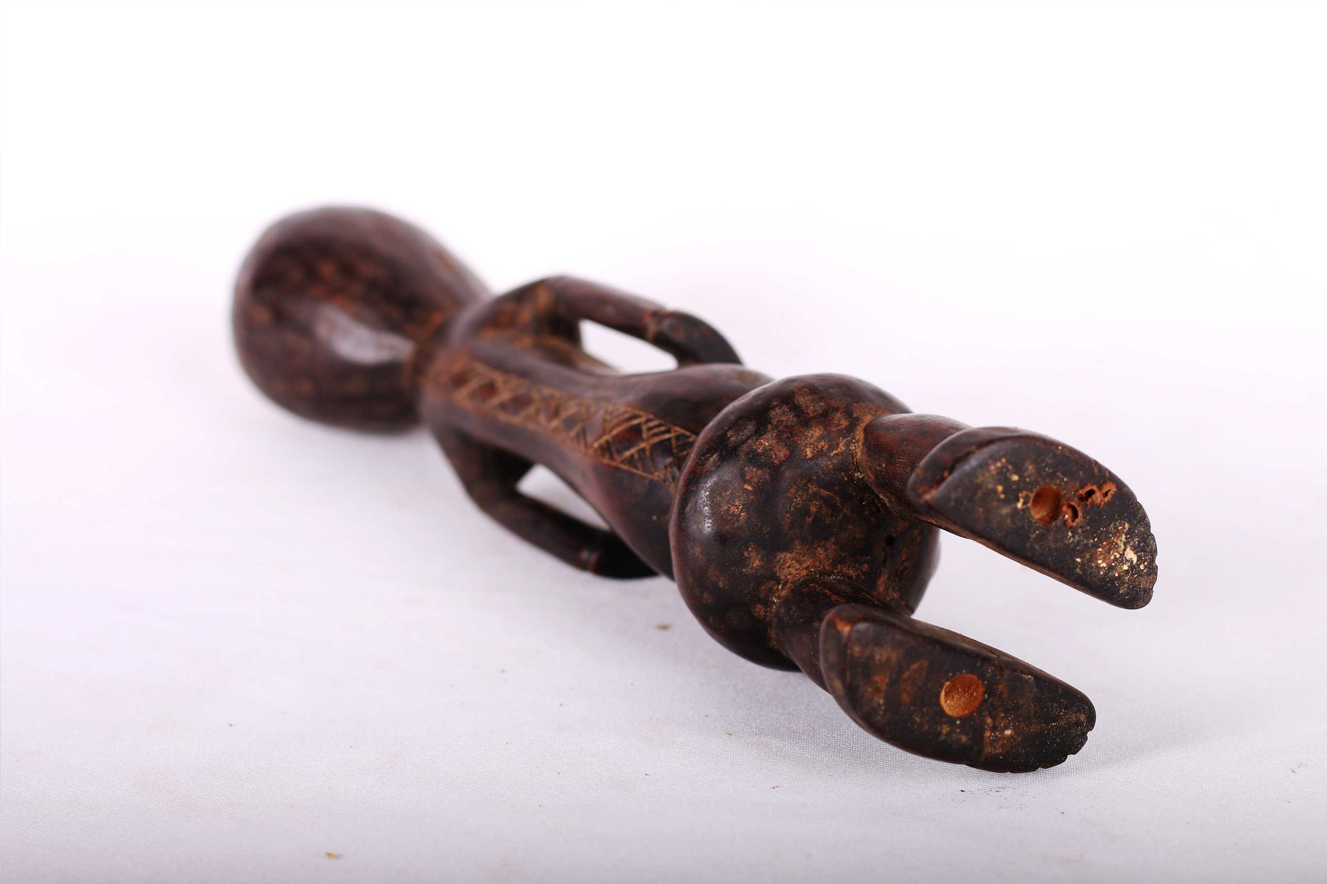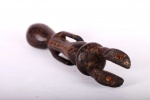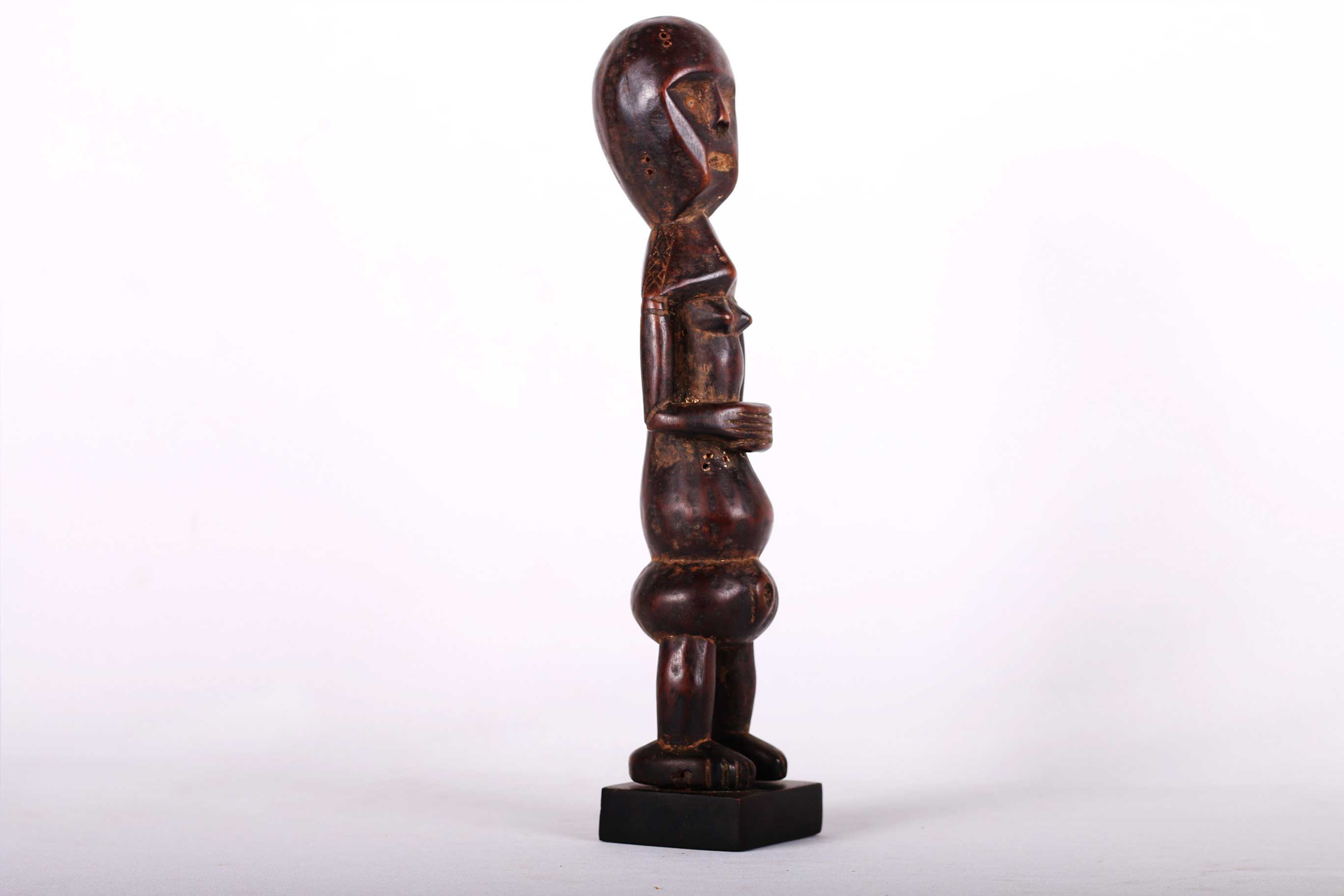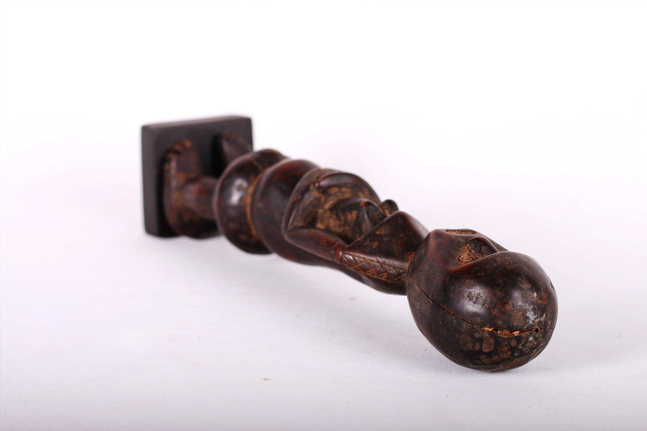 The Bali are located in the Eastern Democratic Republic of the Congo, statues and tribal art in general from this region is quite rare and hence not a lot of information is known on the functionality of the figures from this tribe, we are yet to ascertain the function of this mask. This is an old female Bali statue with a shiny dark brown patina,this standing figure has a stunning face and quite elaborate features, it is without a doubt an old bush collected figure.