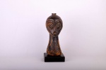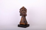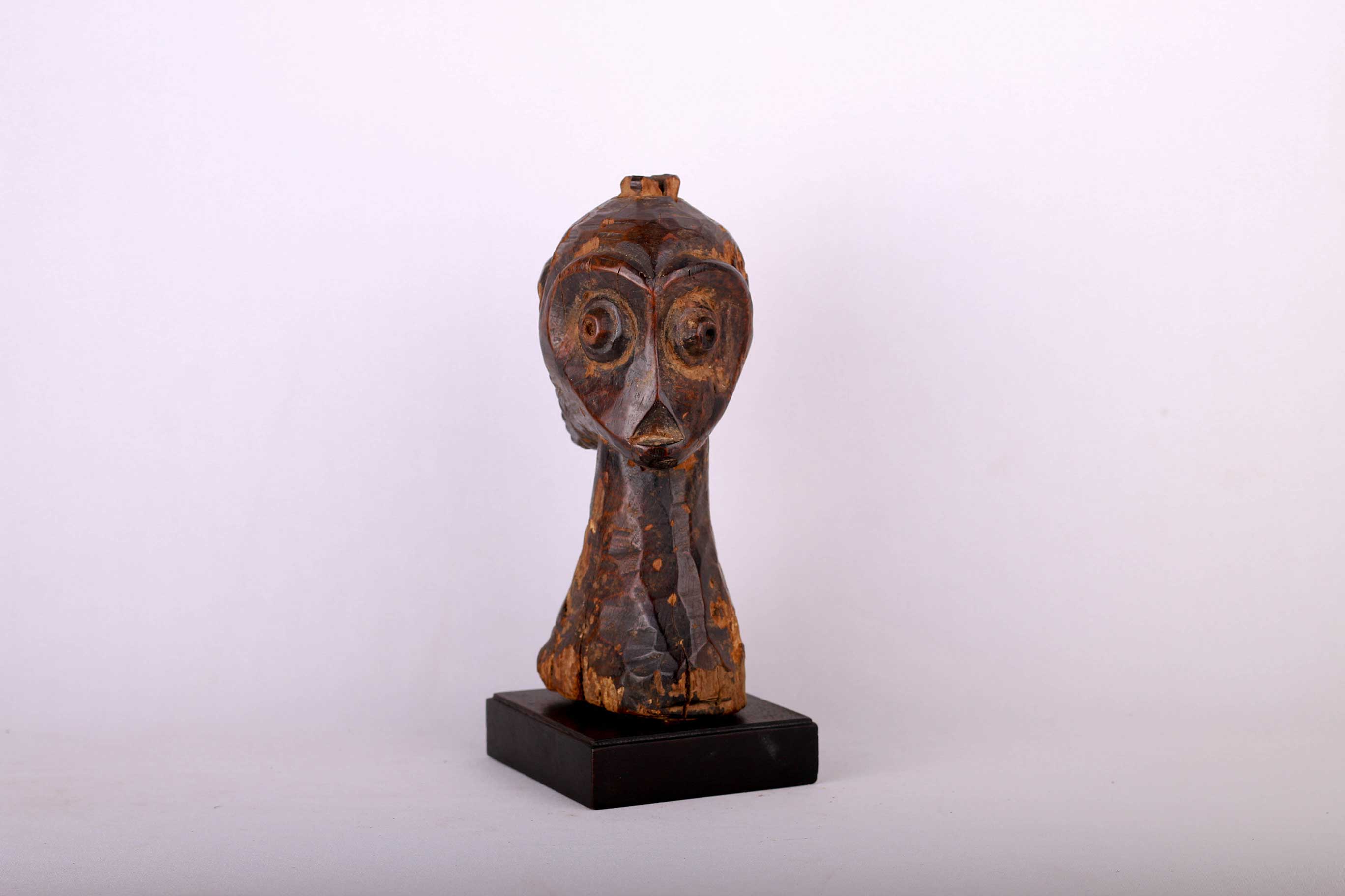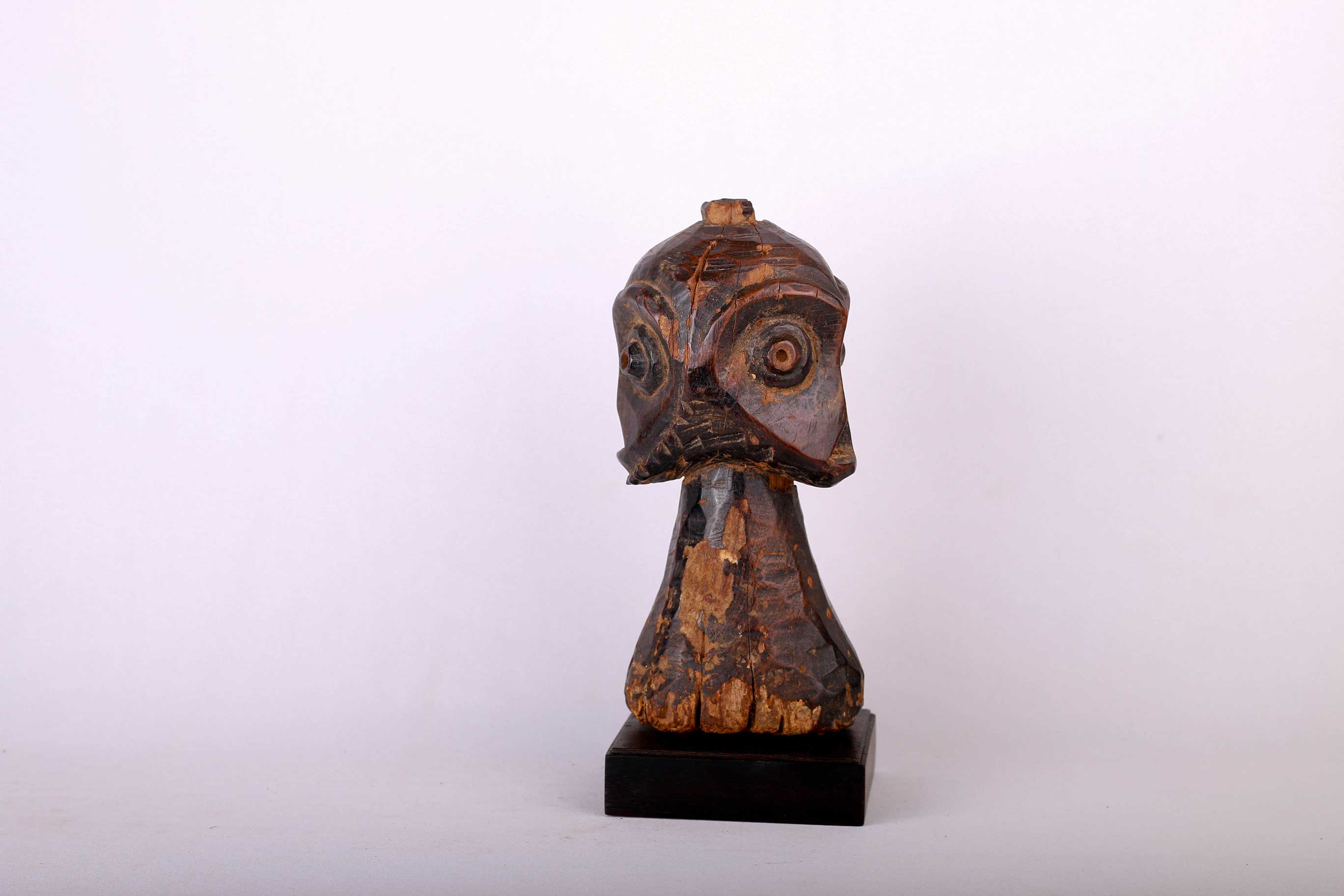 This sculpture originates from the Bembe people, a tribe from the northwest forests of the Democratic Republic of Congo. The Bembe carved numerous kinds of wooden figures that represent various spirits.