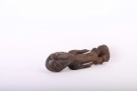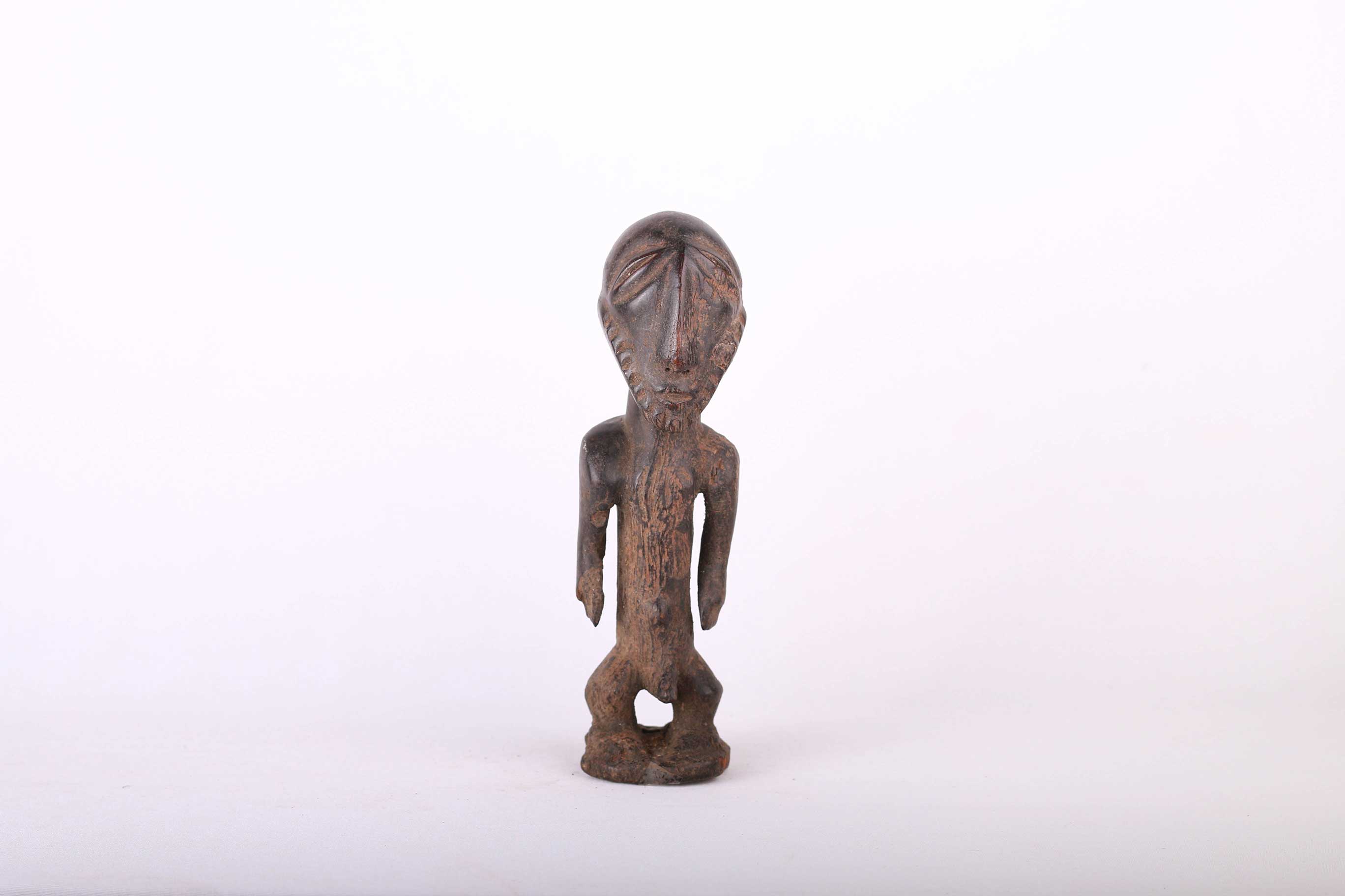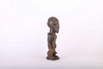 The Bembe is found in the eastern part of the Democratic Republic of Congo. Miniature wooden sculptures such as this represent the spirits of Bembe family ancestors. The following statue has a dark patina and looks visibly old.