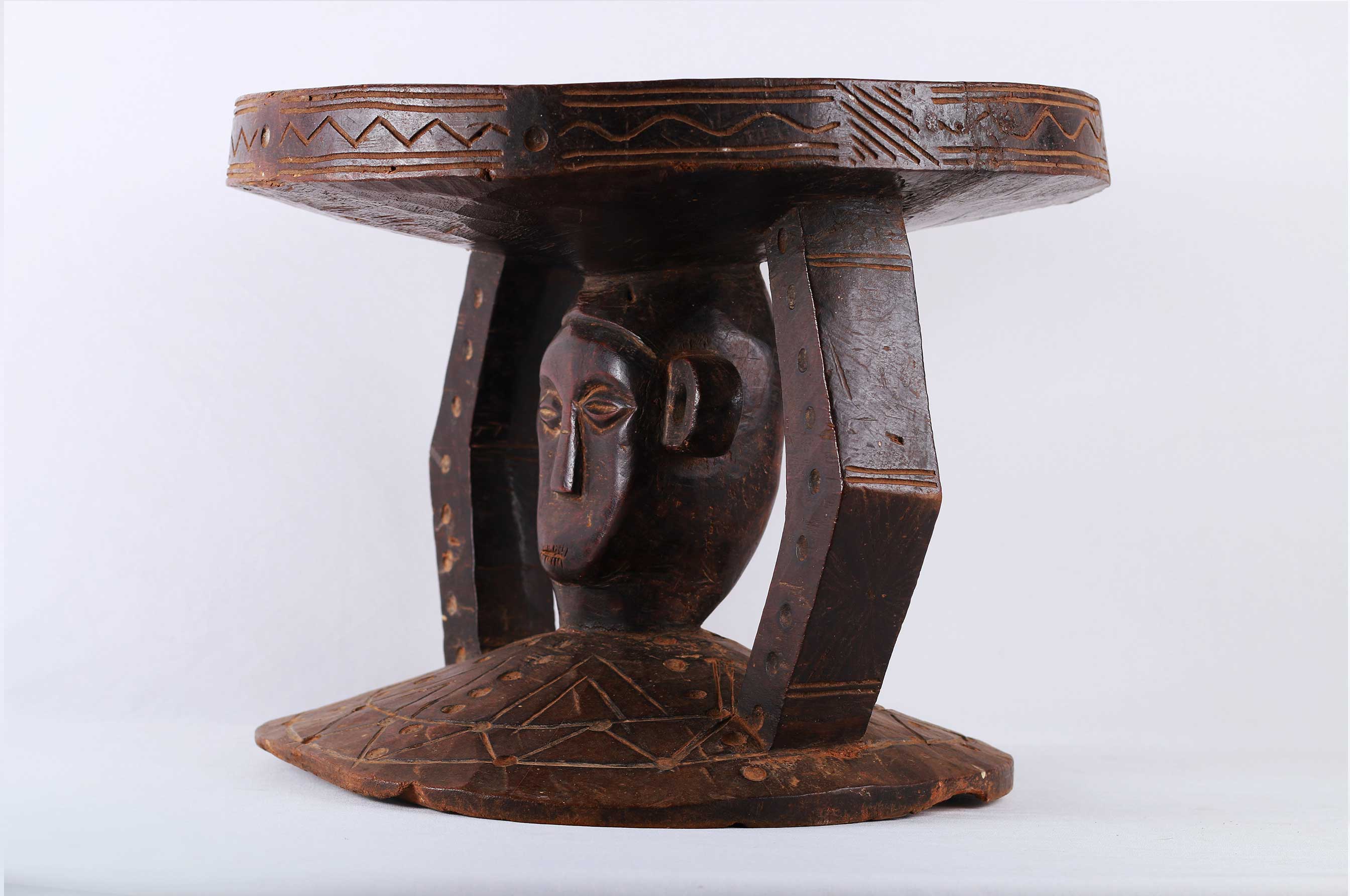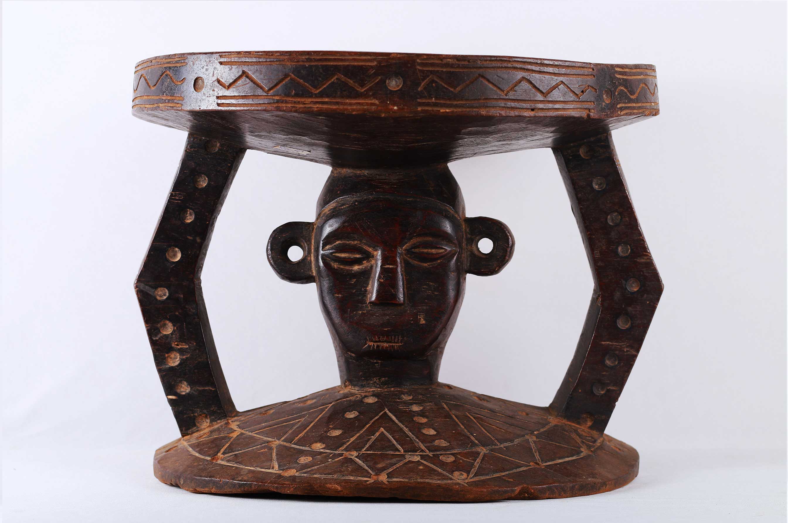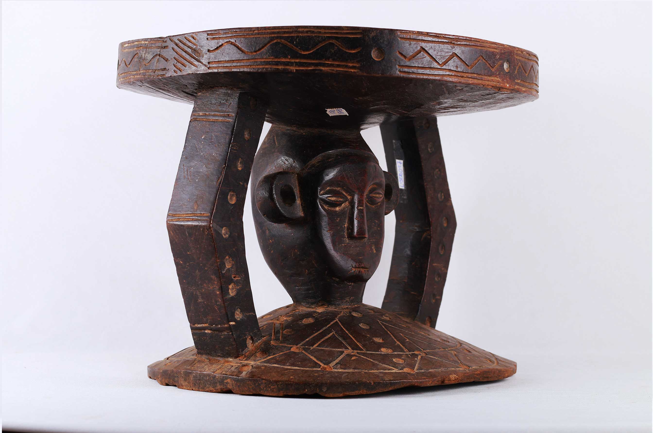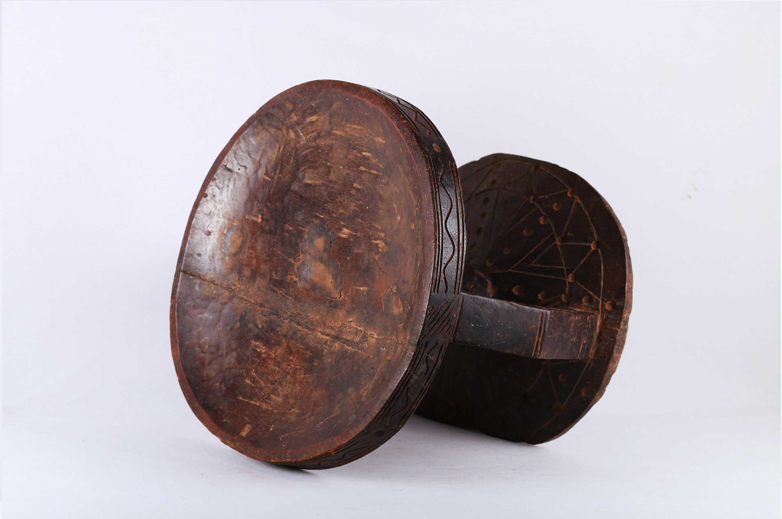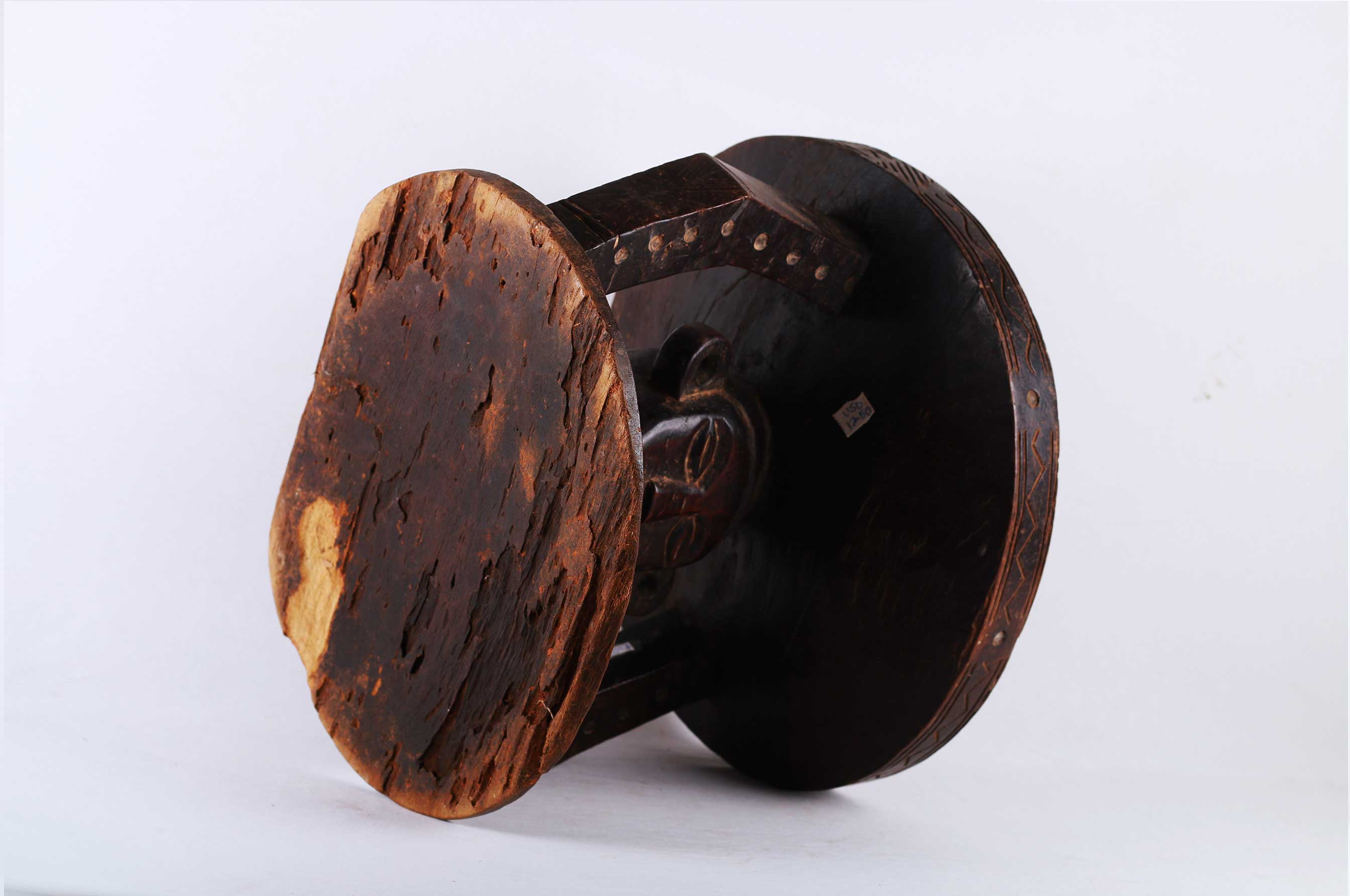 The size of the stool was often in relation to the importance of the owner. This stool is carved in wood, in good condition, though worn with age, and has evidence overall of old worm wear to the surfaces