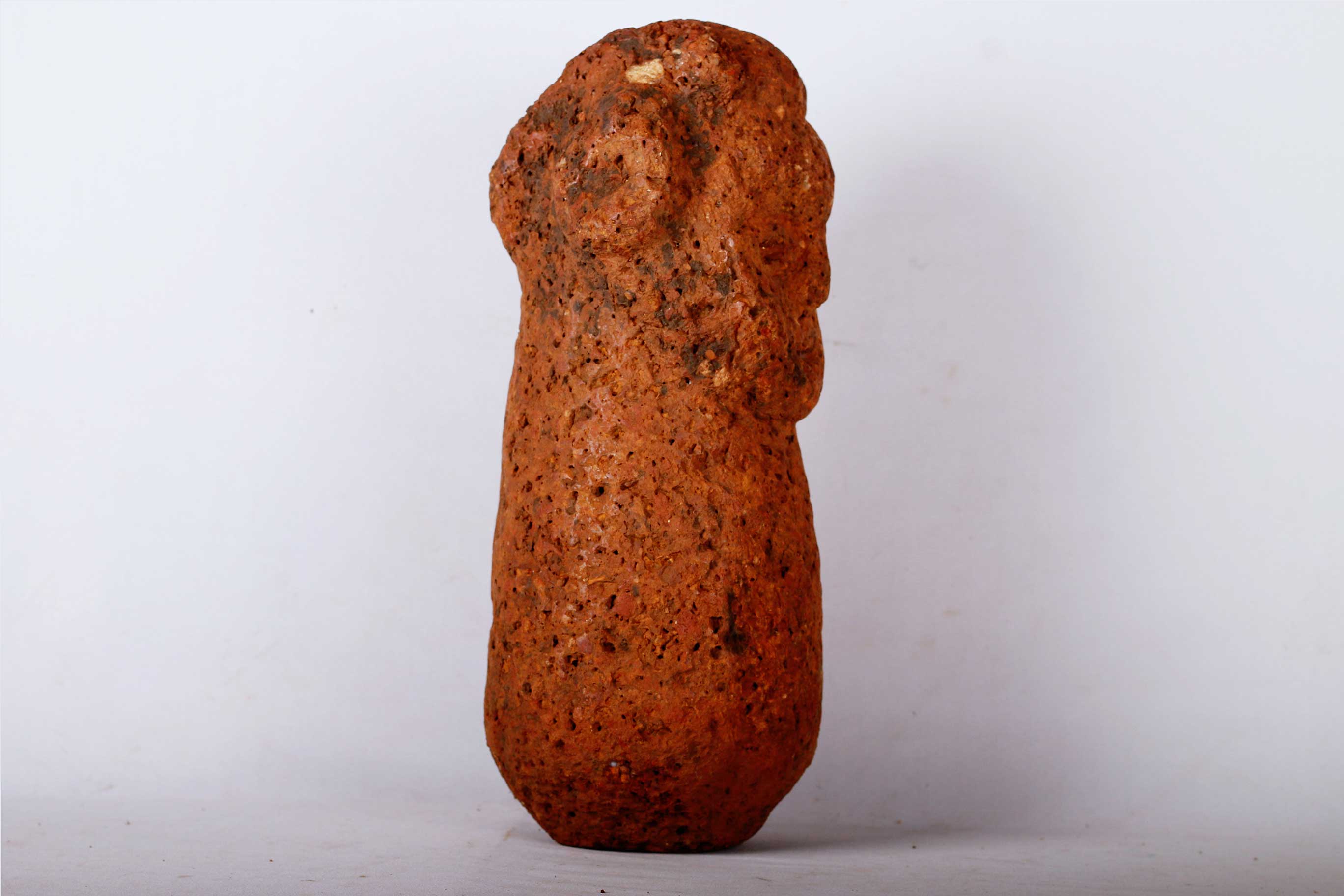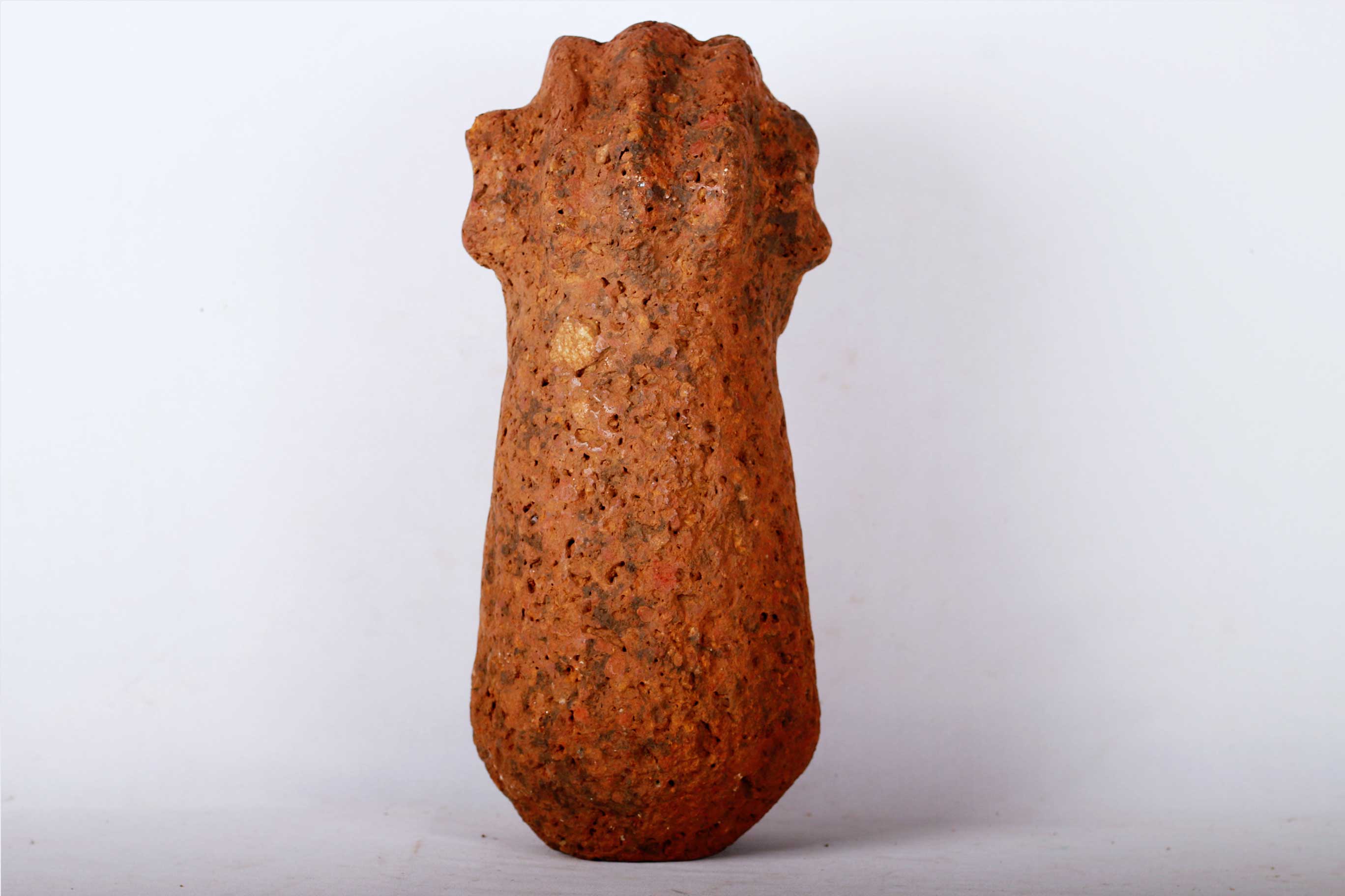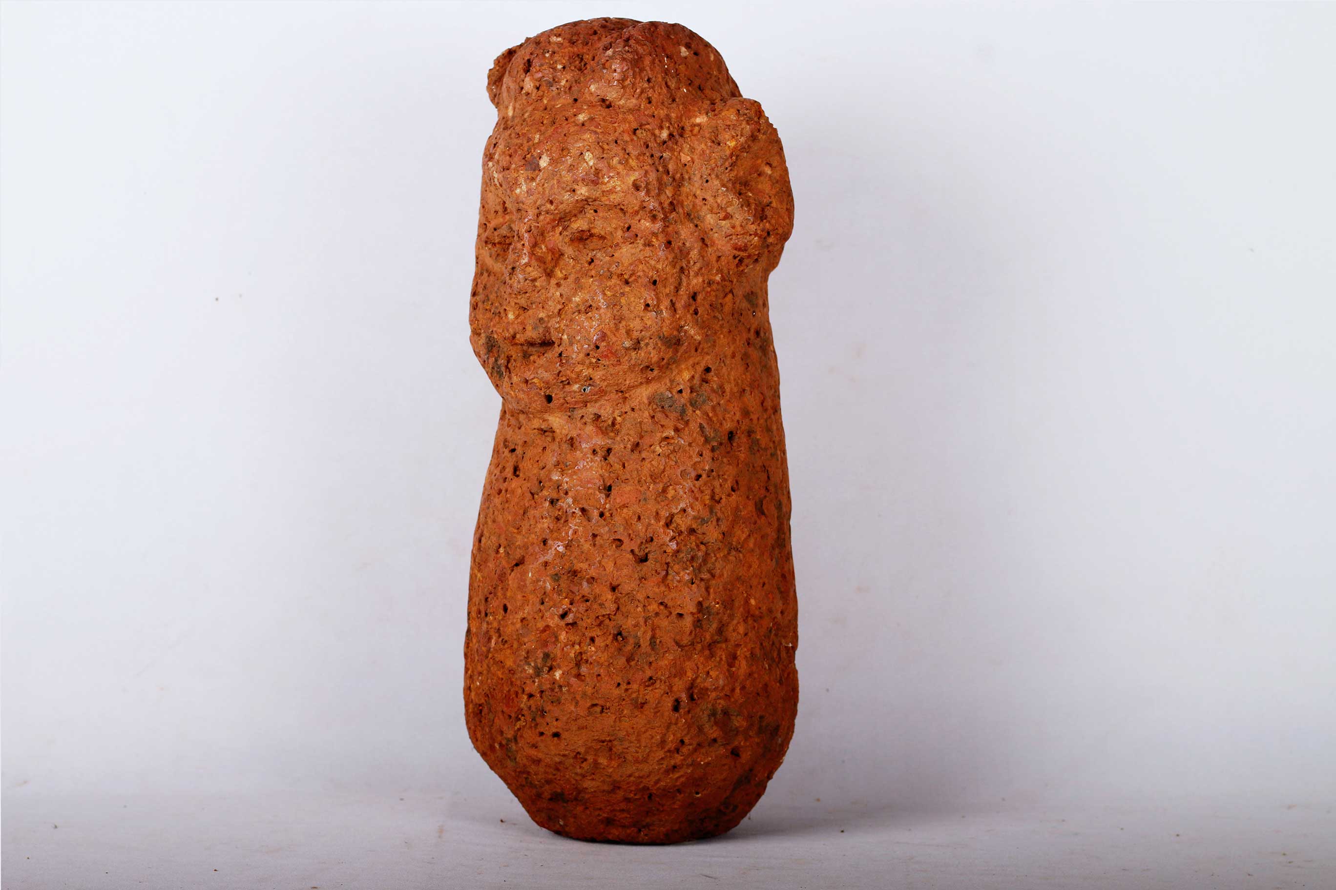 The Bongo is an ethnic group living in South Sudan, mostly in the Tonj District. They are mainly an agricultural community, they do some forestry on a small level. This ancient stone acted as a funerary post in the Bongo society and was used during burial ceremonies. This is a fine naturally weathered specimen with clear signs of old age. It was hand-carved from a very heavy and thick porous stone.