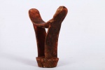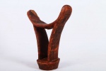 This is a figurative headrest from the Boni an ethnic group of lower status on account of their hunting and fishing occupations, they are currently living in Somalia. Headrests from this region are very refined, profusely decorated and artistically executed. Most of their headrests are embellished with elaborate linear, circular and geometric motifs. The engraving at the base of the headrests and are inspired by Islamic designs. Somali headrests represent the age and gender of its owner, a young man, woman or elder. Owners used them to rest on, at communal rituals, council meetings, and lineage congregations and also to protect the braided hair of the owner.