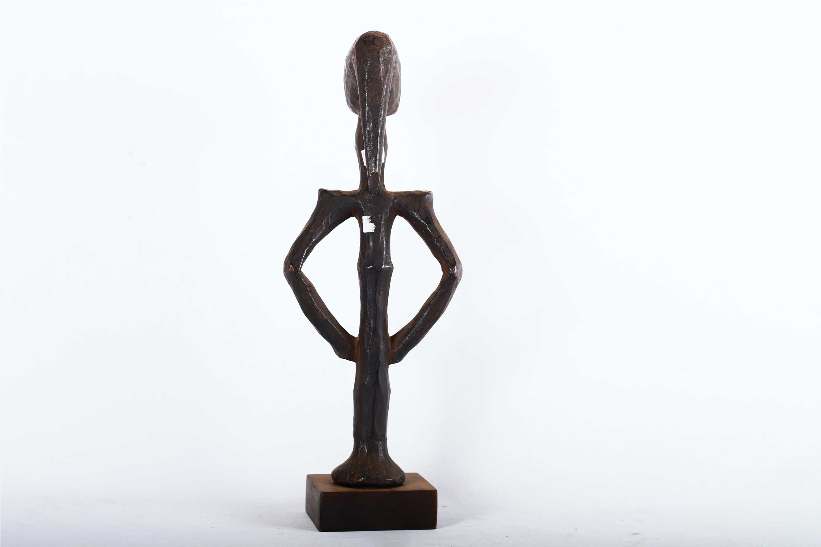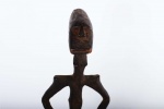 The Chokwe are spread out over a wide area in eastern Angola, southern DRC, and Zambia. The Chokwe are well known for art objects produced to celebrate and validate the royal court. Most of the sculptures are portraits, which represent the royal lineage. The Chokwe sculptures were also carved to represent their beloved royal ancestors, case in point their hero Chibinda Ilunga. The following statue has a dark patina and shows great age