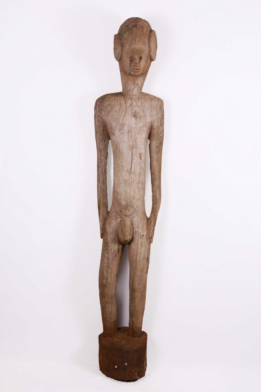 This magnificent large wooden grave post from the Zande people. The Zande are found in South Sudan, the Central African Republic, and the Northern Democratic Republic of Congo. Zande sculptures are often representations of ancestors. Such were sculpted as funerary or memorial markers and placed above tombs composed of large stones. They were idealized representations of the dead and not portraits of a specific person. Such funerary posts recognized and honored male elites, warriors, chiefs or locally significant personalities, these posts were also said to protect against sorcerers spells.