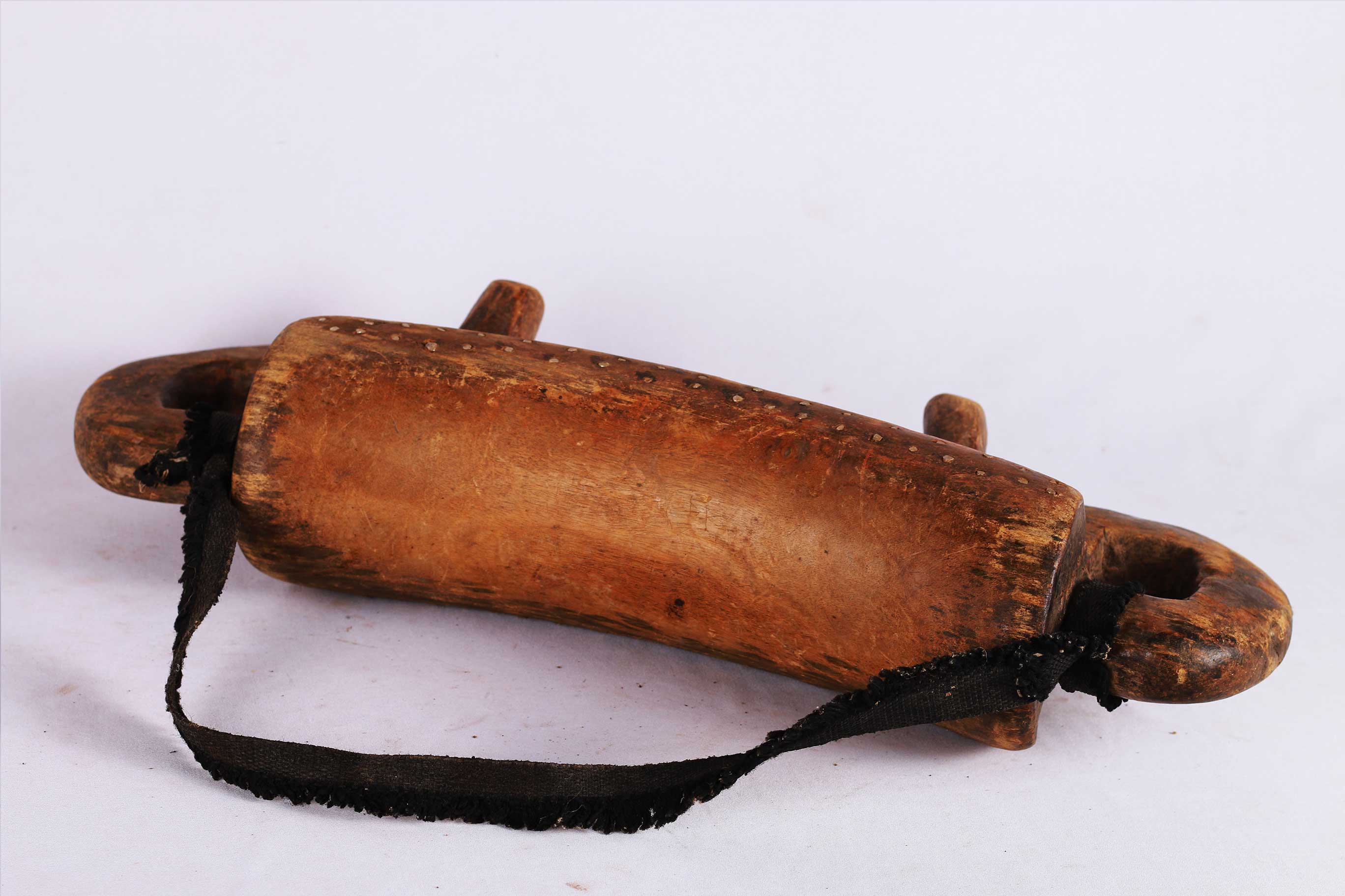 - Material; wood, brass, and cotton strap.