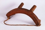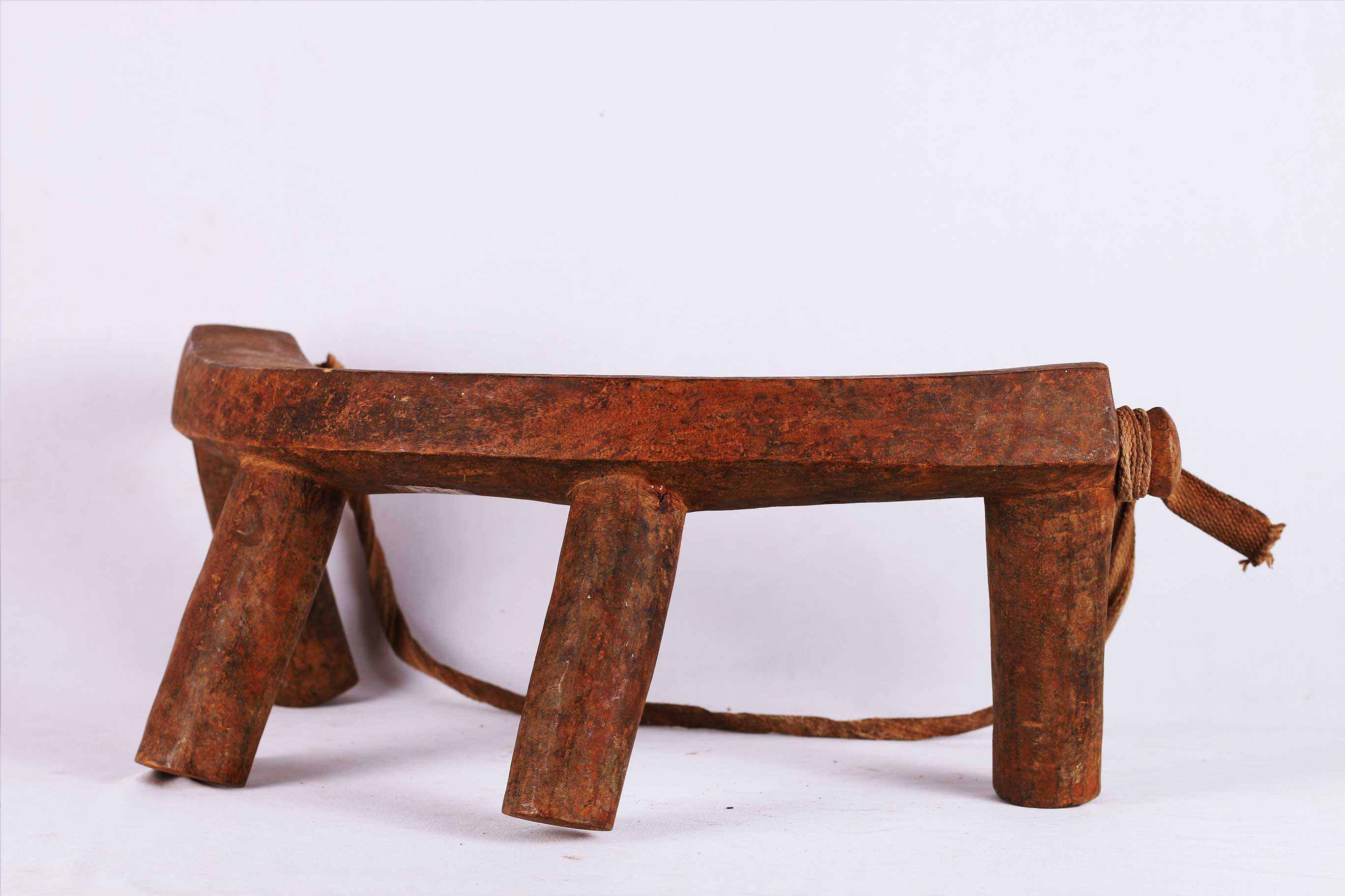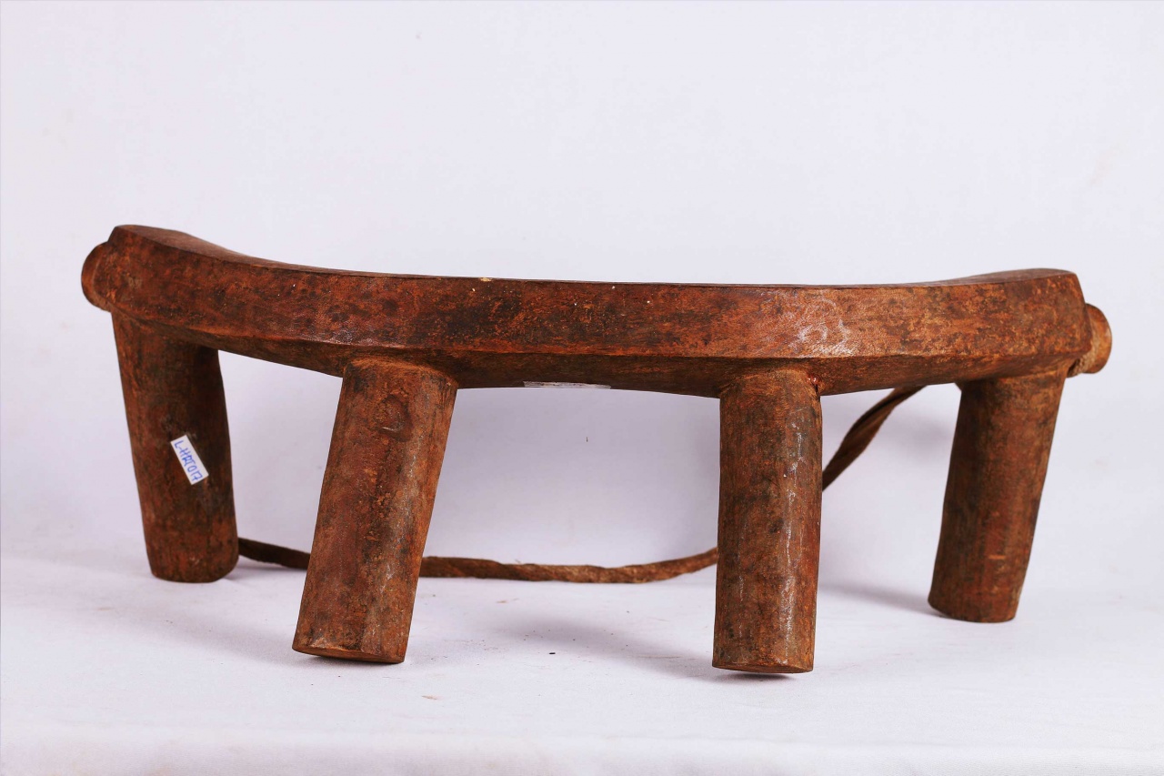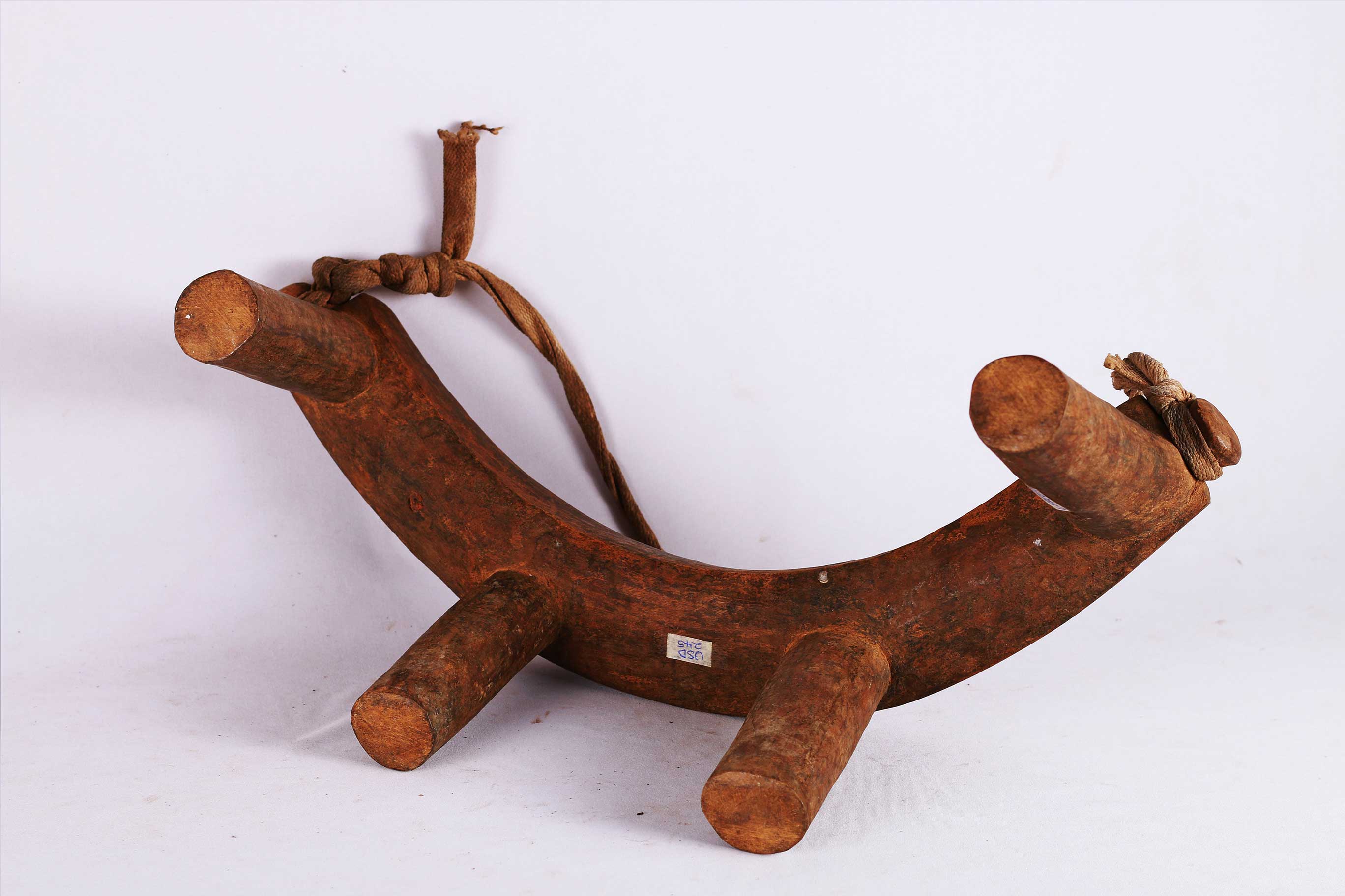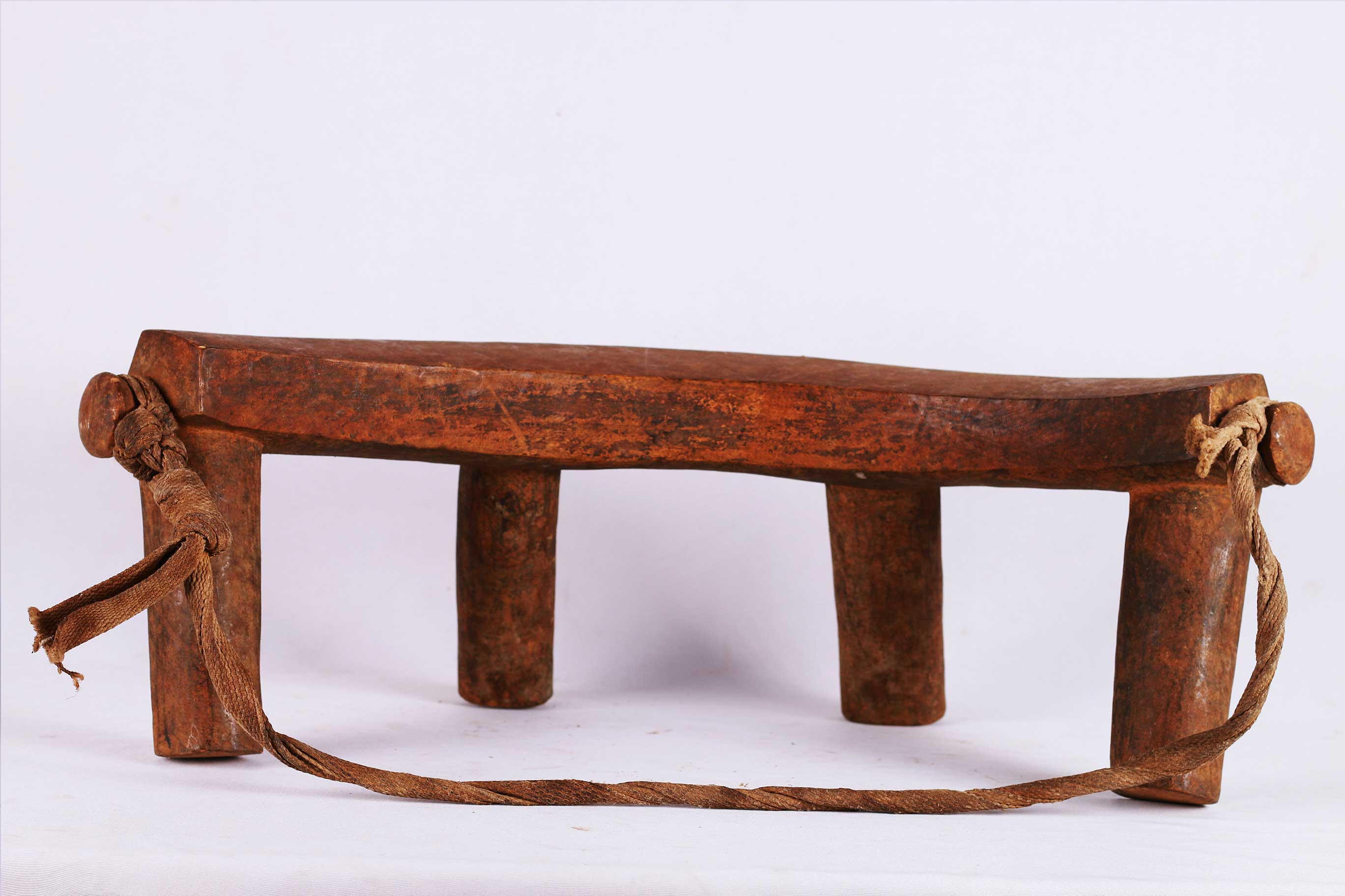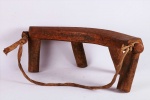 four-legged headrest. Zoomorphic features, such as a tail and a head, are sometimes brought out. These were used as pillows to help someone to have good sleep. They also used as a comfort to help protect ceremonial coiffure. In some occasions, headrests are used as a stool. As a personal object, the headrest has become part of the individual. Usually, when the person died, he is buried with his headrest. Sometimes the headrest is passed on to his heir, who would treat it with respect because this wooden piece embodies the spirit of the deceased person. Dinka headrests are primarily used by older men. The following headrest is crafted from hardwood and looks visibly old.