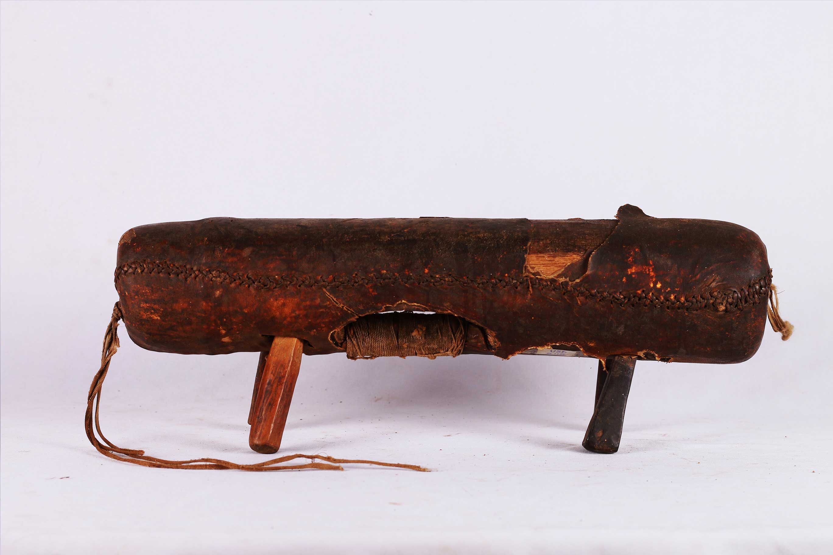 four-legged headrest. Zoomorphic features, such as a tail and a head, are sometimes brought out. These were used as pillows to help someone to have good sleep. They also used as a comfort to help protect ceremonial coiffure. In some occasions, headrests are used as a stool. As a personal object, the headrest has become part of the individual. Usually, when the person died, he is buried with his headrest. Sometimes the headrest is passed on to his heir, who would treat it with respect because this wooden piece embodies the spirit of the deceased person. Dinka headrests are primarily used by older men. The following headrest is crafted from wood and looks visibly old.