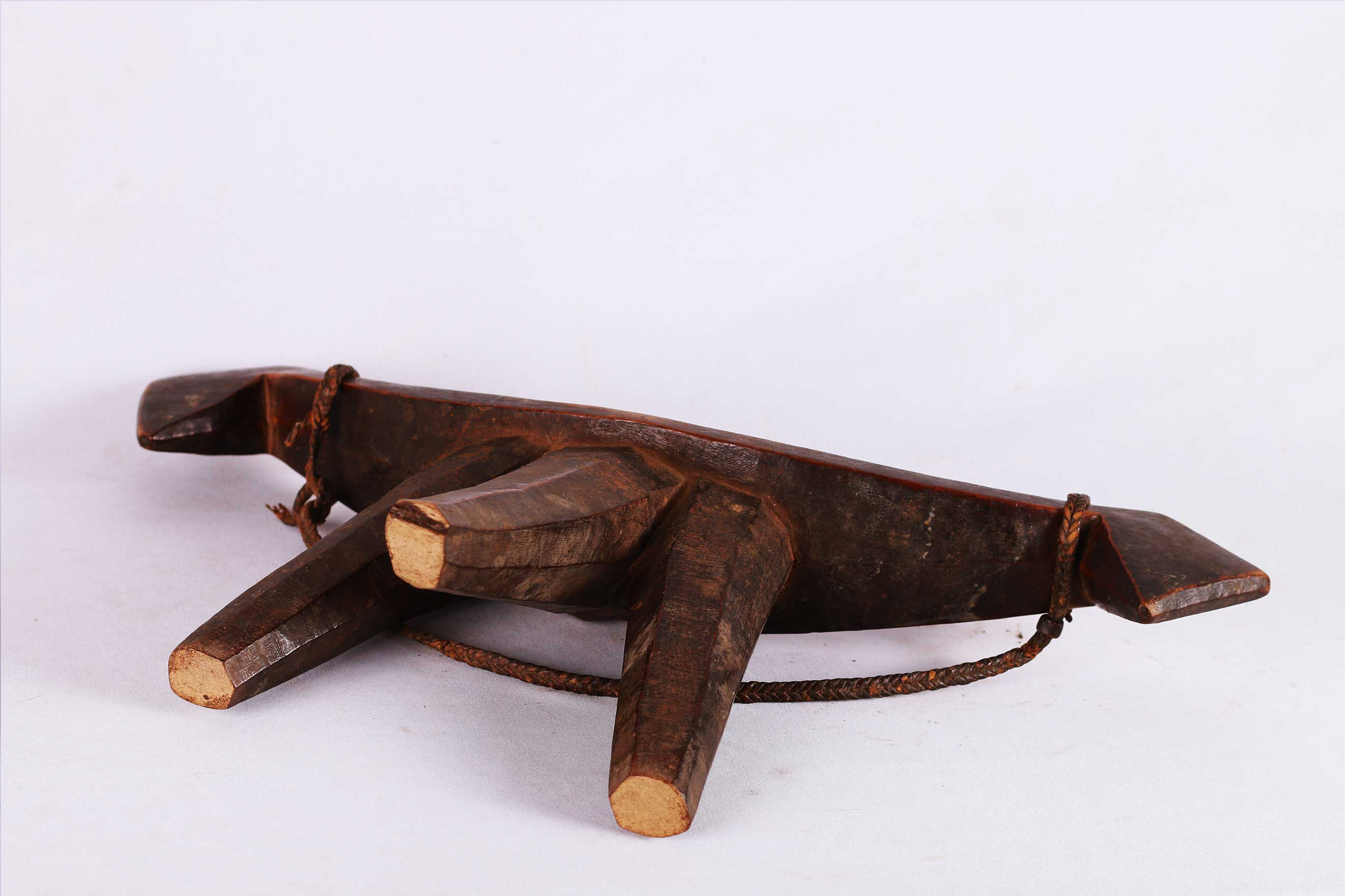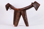 four-legged headrest. Zoomorphic features, such as a tail and a head, are sometimes brought out. These were used as pillows to help someone to have good sleep. They also used as a comfort to help protect ceremonial coiffure. In some occasions, headrests are used as a stool. As a personal object, the headrest has become part of the individual. Usually, when the person died, he is buried with his headrest. Sometimes the headrest is passed on to his heir, who would treat it with respect because this wooden piece embodies the spirit of the deceased person. Dinka headrests are primarily used by older men. The following headrest is crafted from hardwood and looks visibly old.