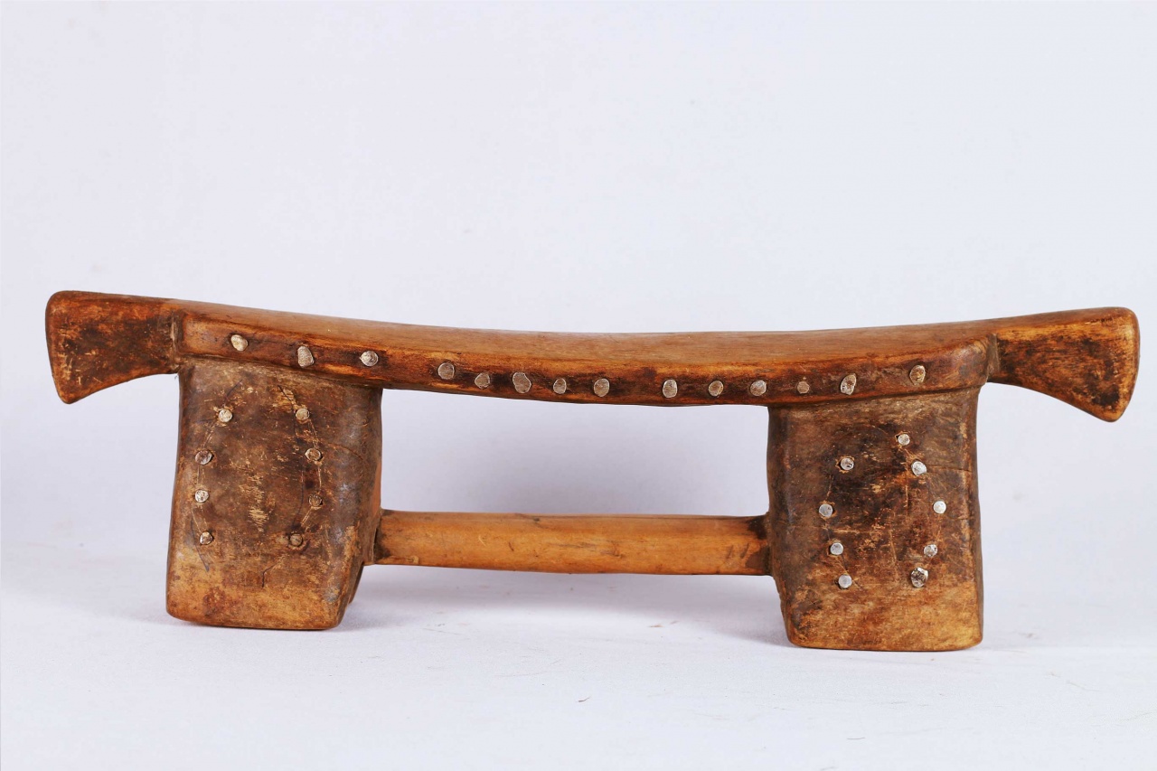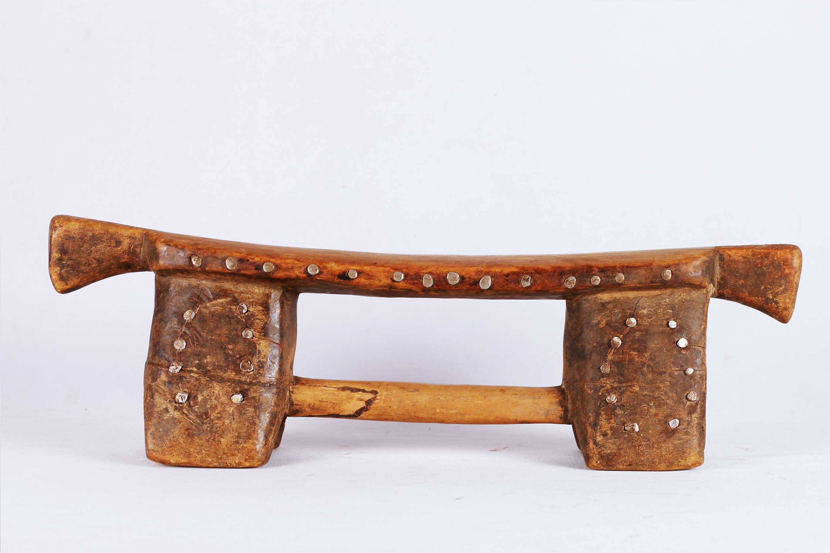 This astonishing headrest originates from the Dinka tribe in South Sudan. These were used as pillows to help someone to have good sleep. They also used as a comfort to help protect ceremonial coiffure. On some occasions, headrests are used as a stool. As a personal object, the headrest has become part of the individual. Usually, when the person died, he is buried with his headrest. Sometimes the headrest is passed on to his heir, who would treat it with respect because this wooden piece embodies the spirit of the deceased person.