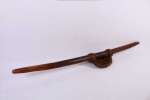 This is an example of a parrying shield used to deflect the blow of one’s opponent and reinforce his own blow. It became an essential and basic characteristic of the simple pole and parrying shields. It was only with the later development of broad shields that their users were able to defend themselves against the enemy’s spears, arrows, clubs e.t.c.It has pointed edges and a handle for a firm grip. The following shield has a dark brown patina and shows traces of wear and usage. It’s not that old in age, possibly a copy but its no doubt an amazing figure.
