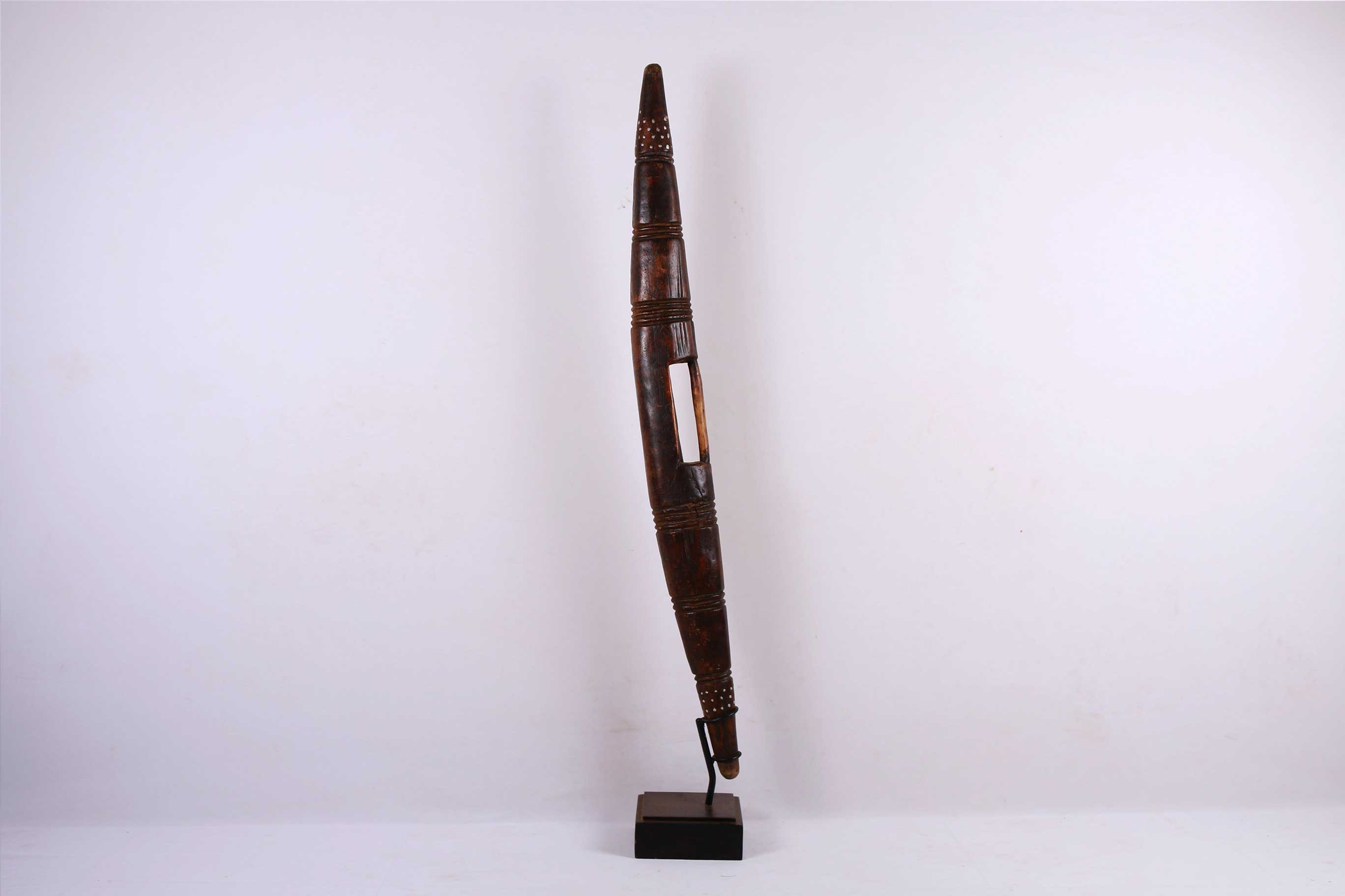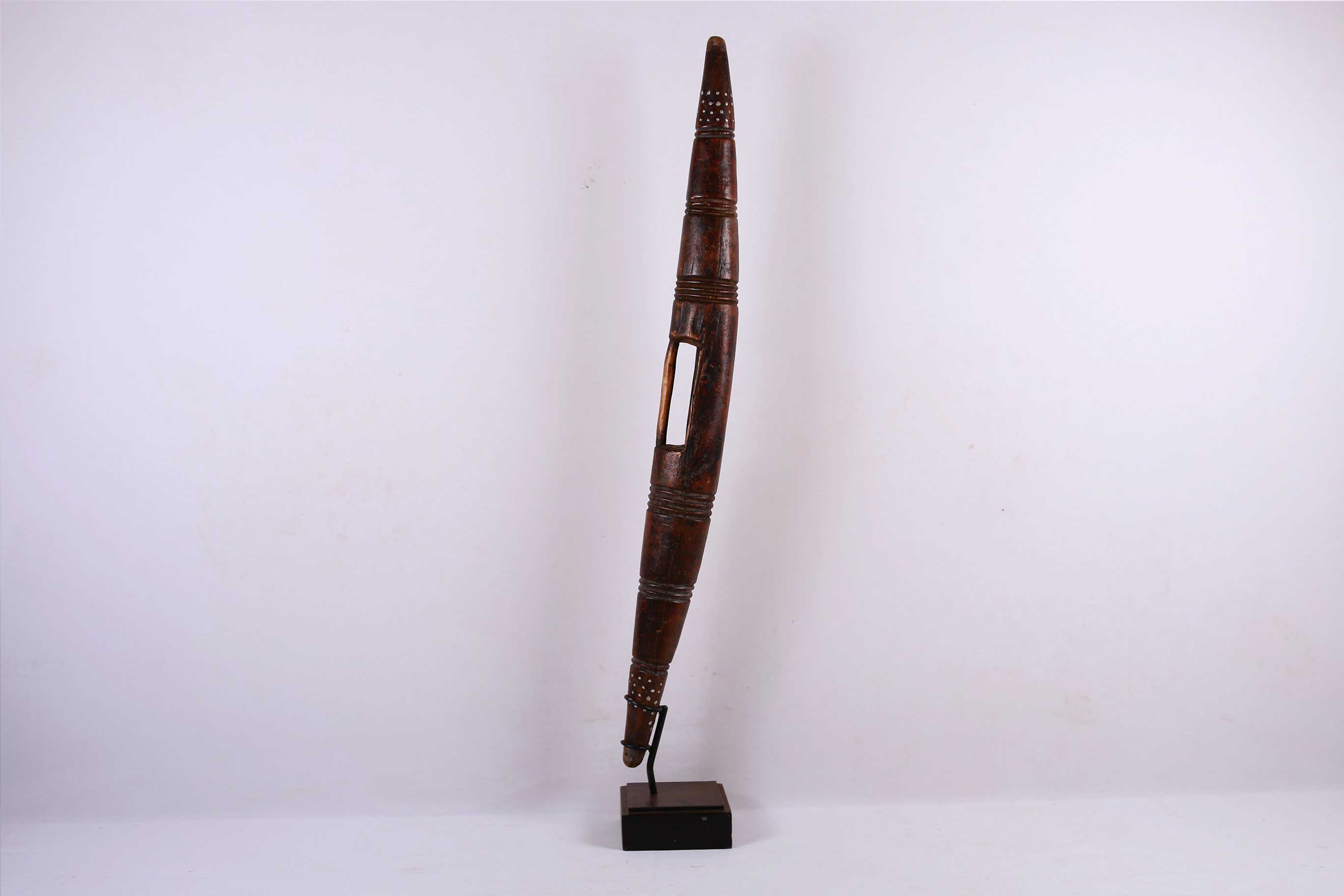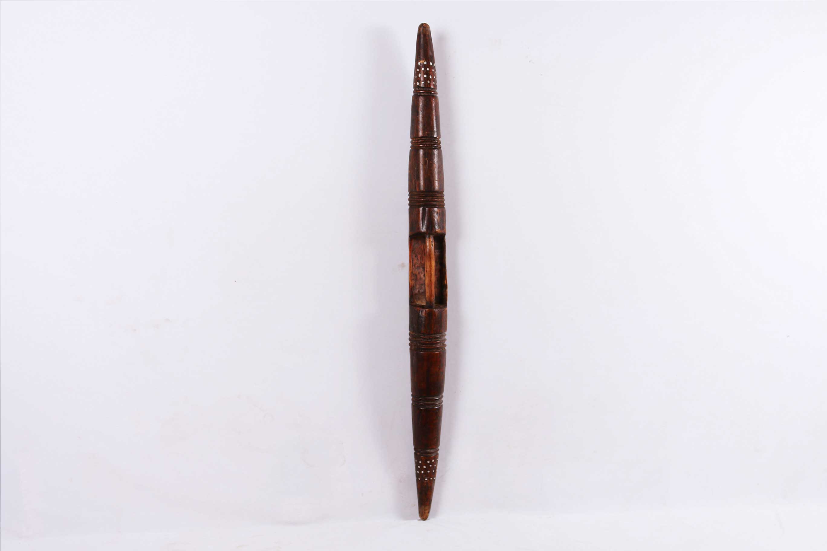 This parrying shield originates from the Dinka tribe, a Nilotic ethnic group native to South Sudan. They are mainly a pastoralists community with a recent history of war. They live in a hostile, harsh society because of their nomadic lifestyle characterized by conflicts and raids to their neighbours.