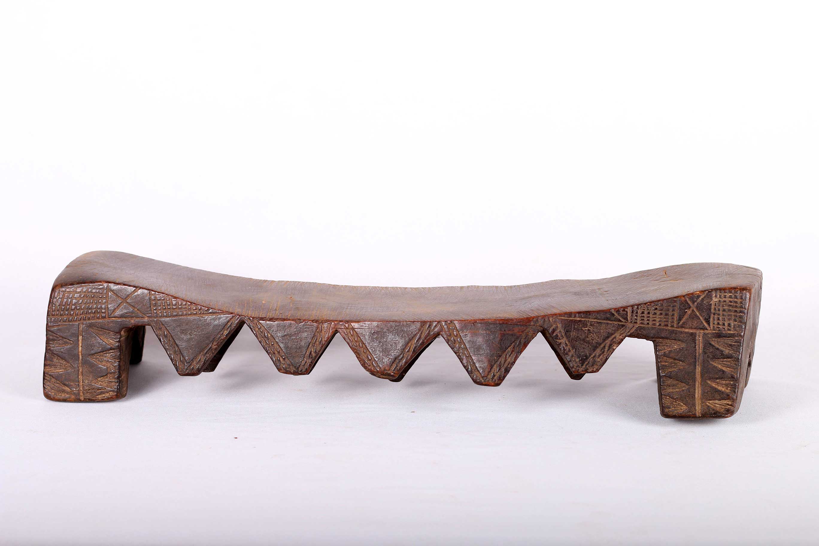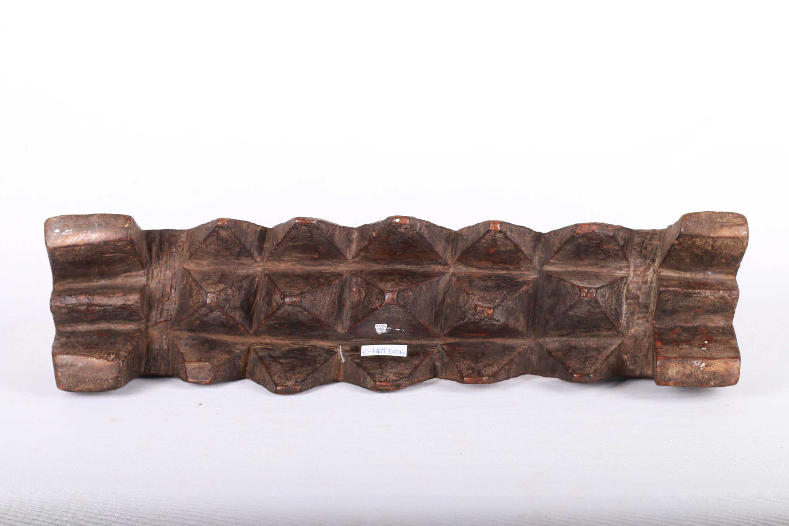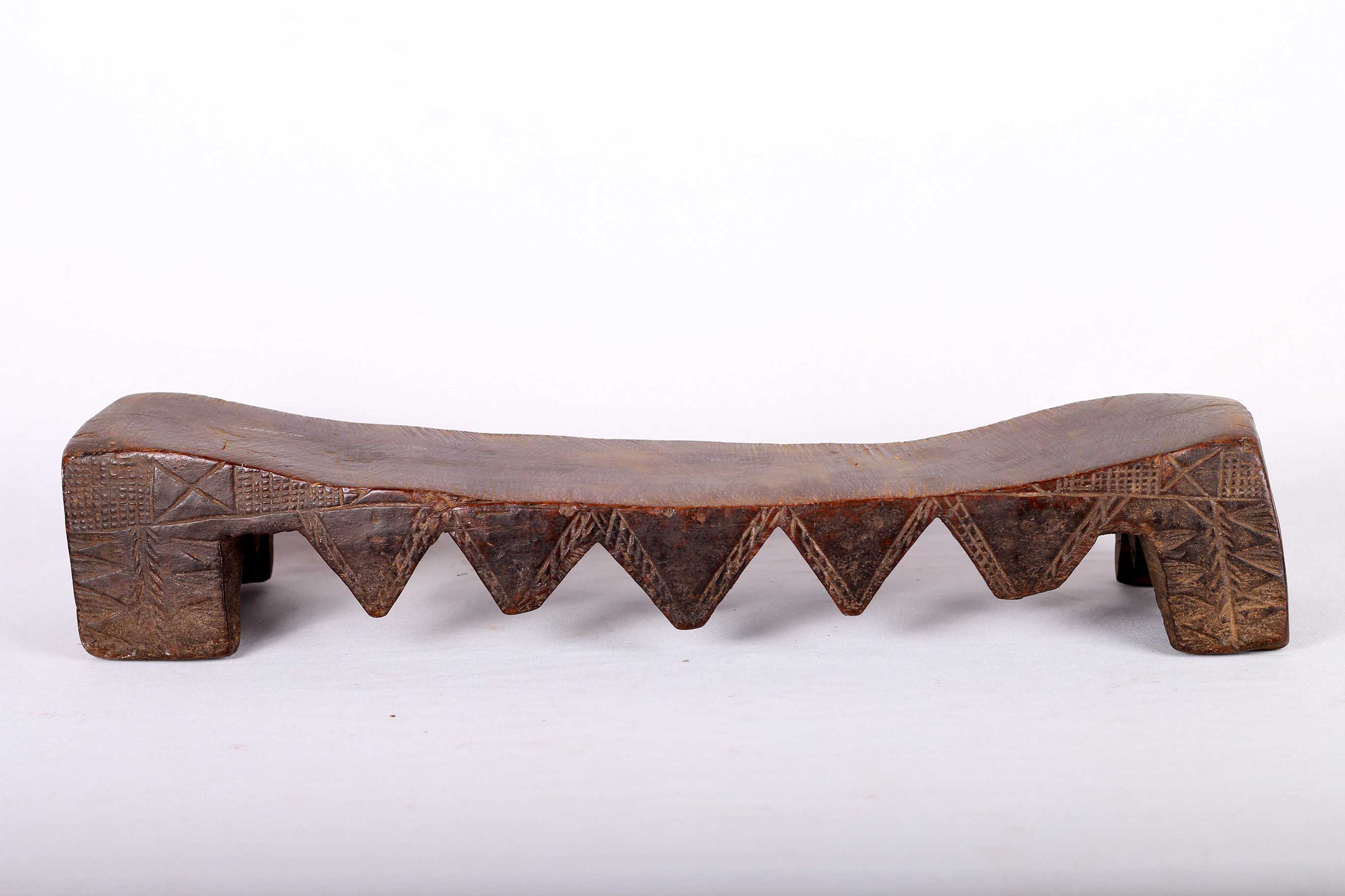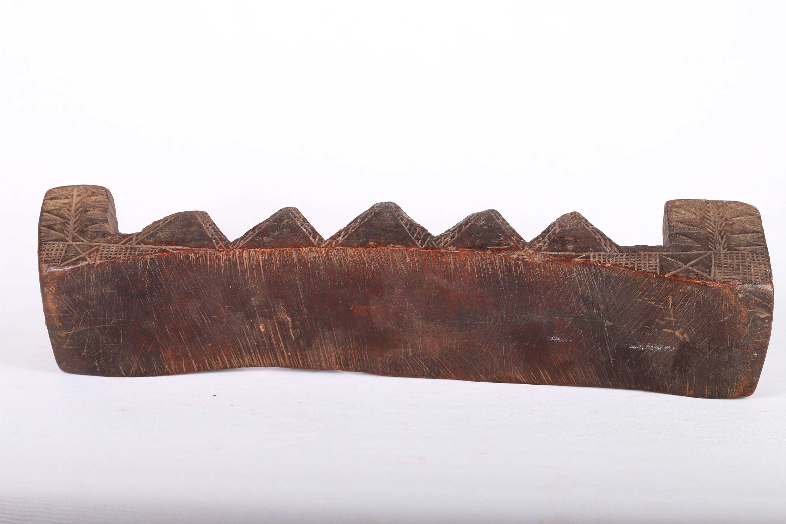 This is an old meat cutting board from Ethiopia, it bares a shinny dark brown patina and shows good age and usage. This multi-purpose board was also used as a headrest to support peoples coiffure. The following meat cutting board shows good use and age and bares a dark brown patina.