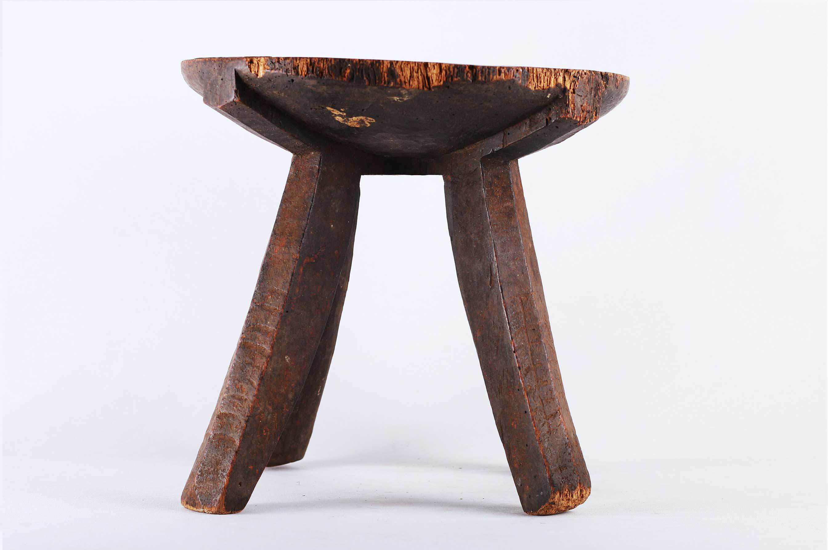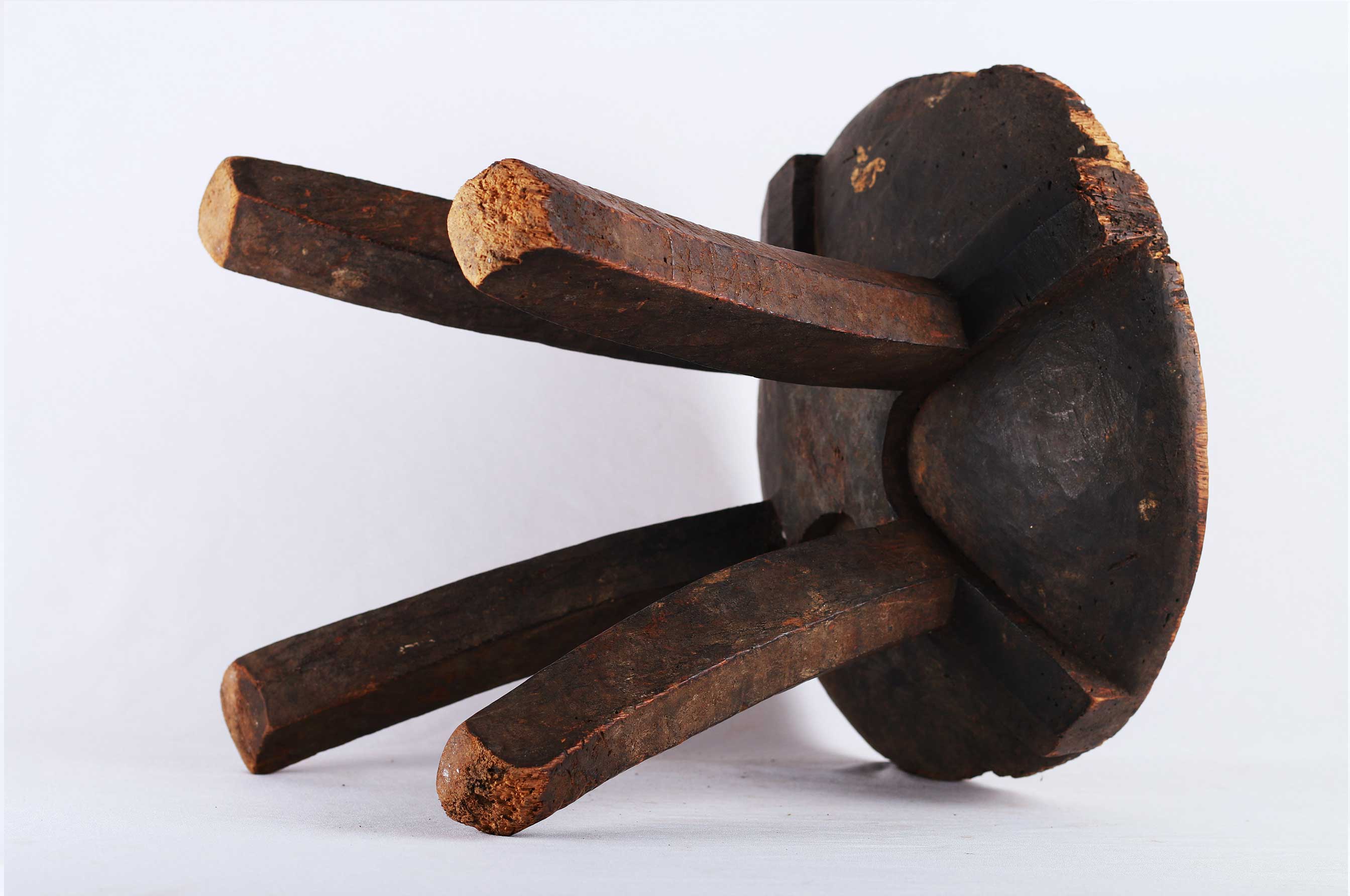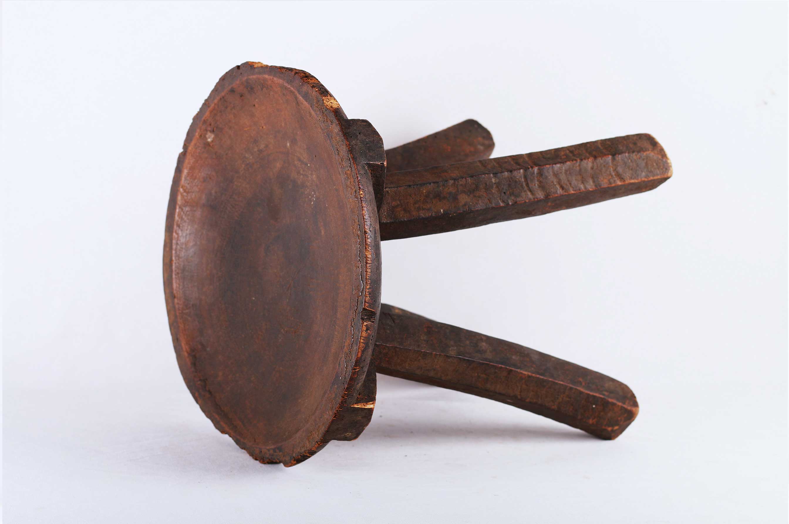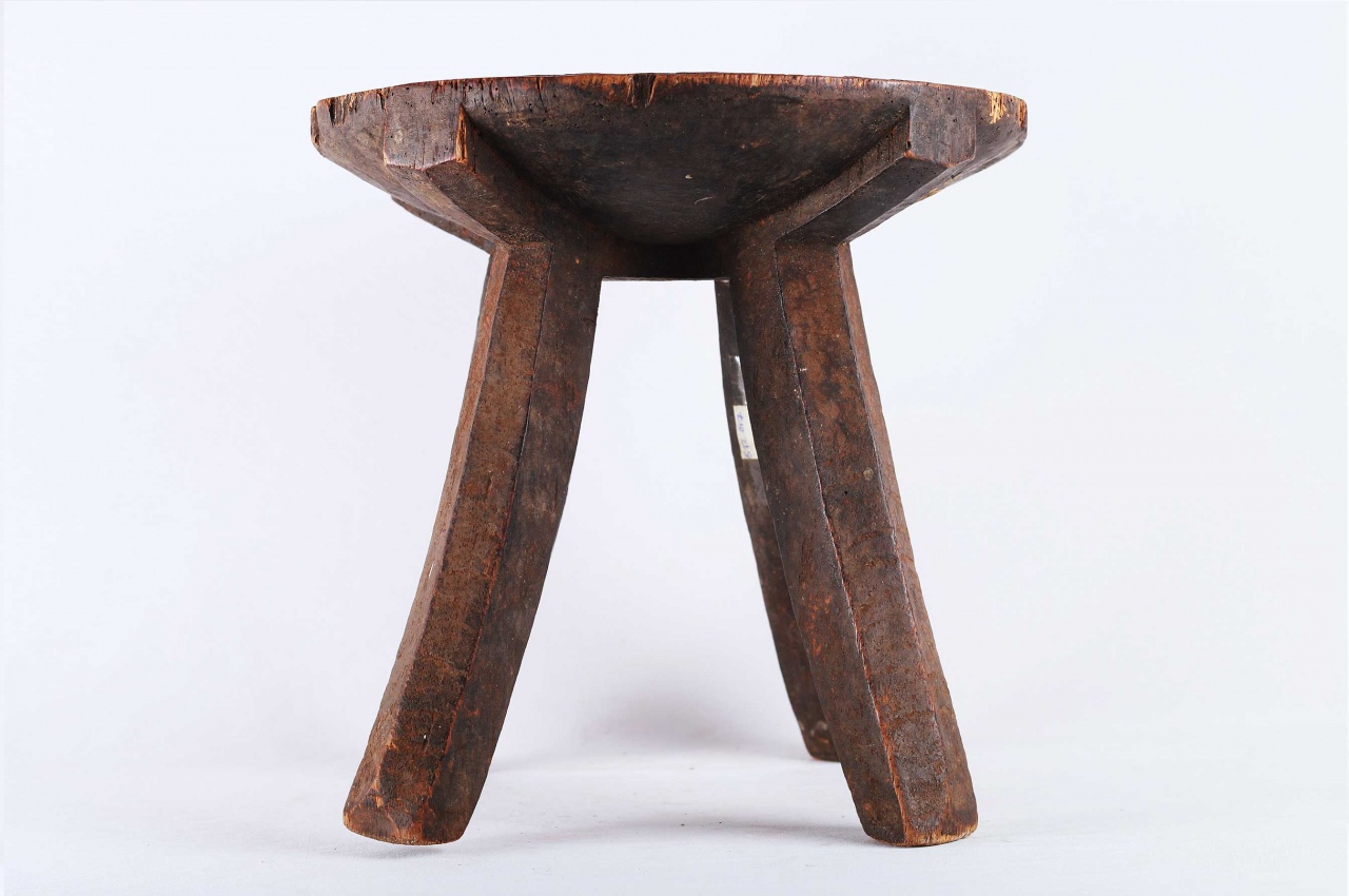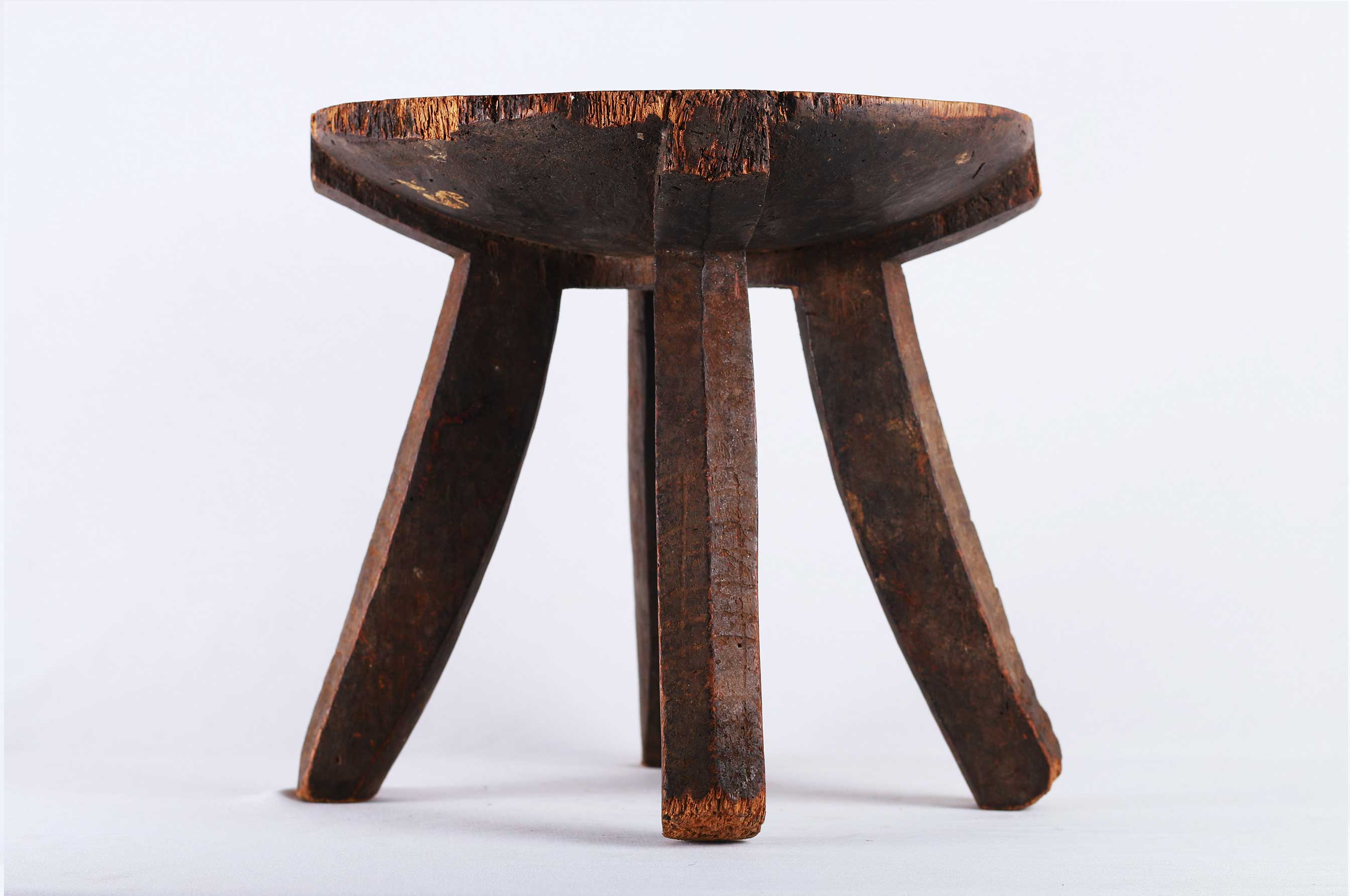 This stool originates from the Hehe tribe an ethnic group based in Iringa Region in south-central Tanzania. This rare four-legged stool is elegantly carved and considered as everyday objects. They were also used for sitting whilst milking cows/goats. The edges of this stool are worn and scuffed from everyday use. This does not take away the lovely style this stool holds. This stool has a dark patina, looks old and finely finished.