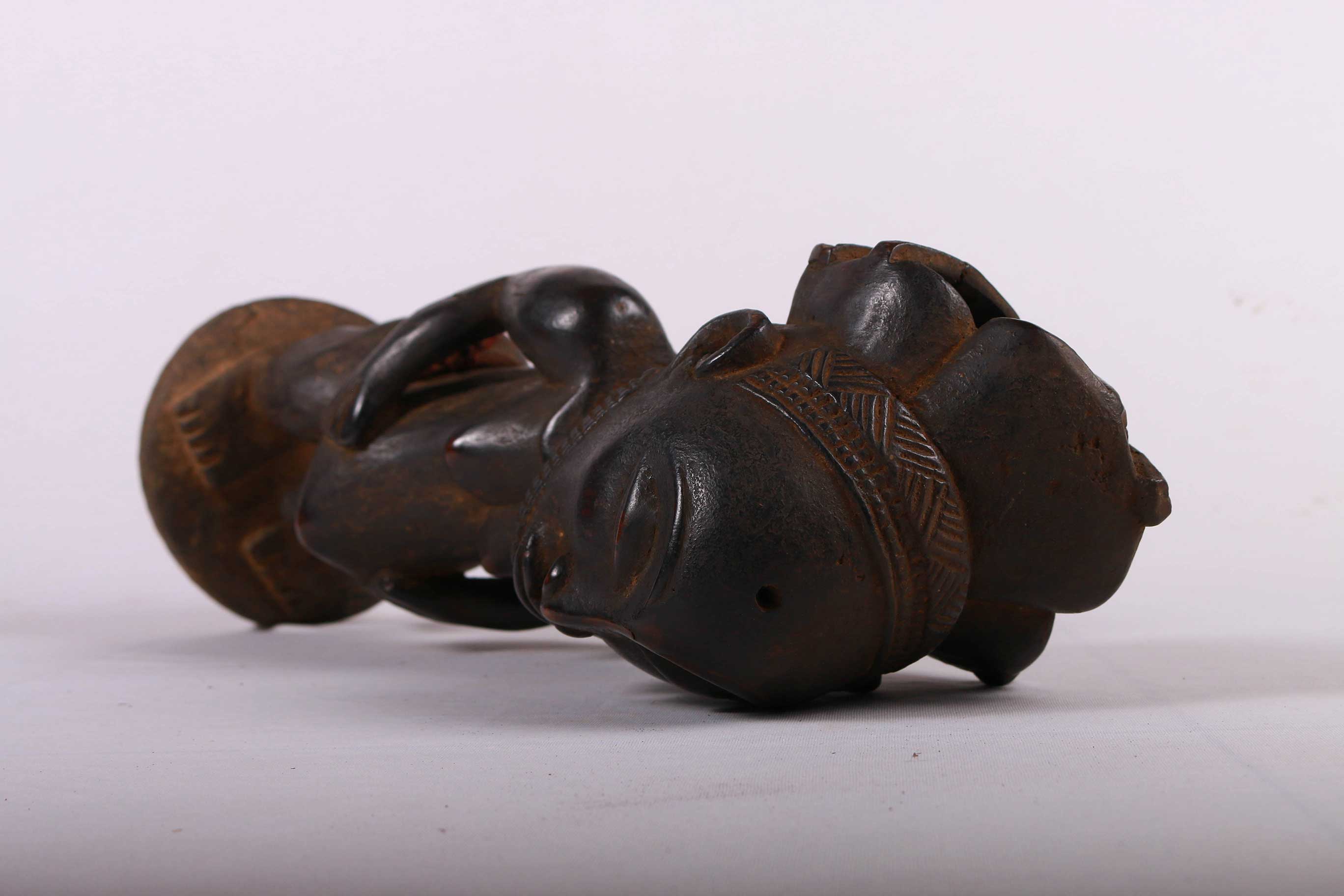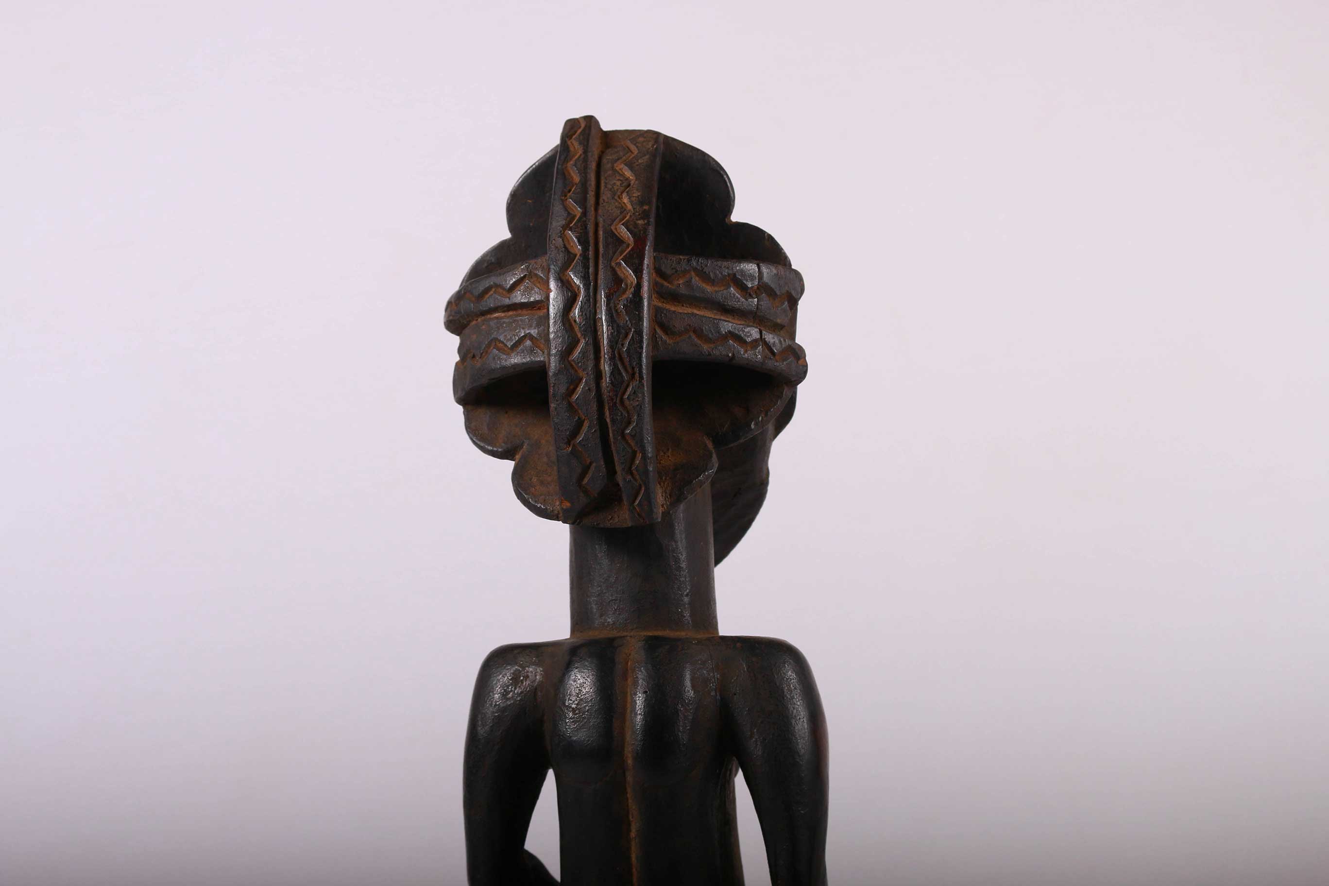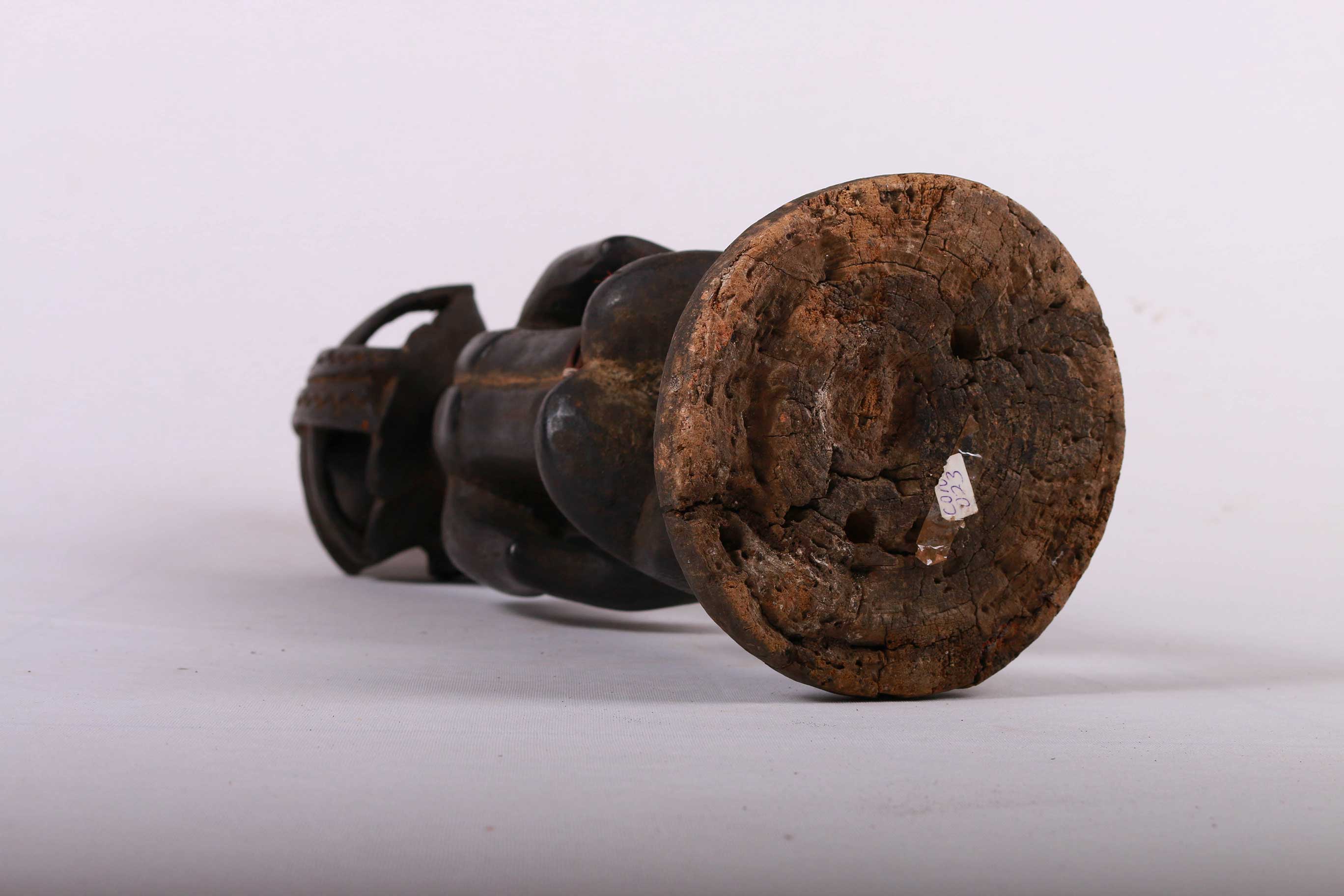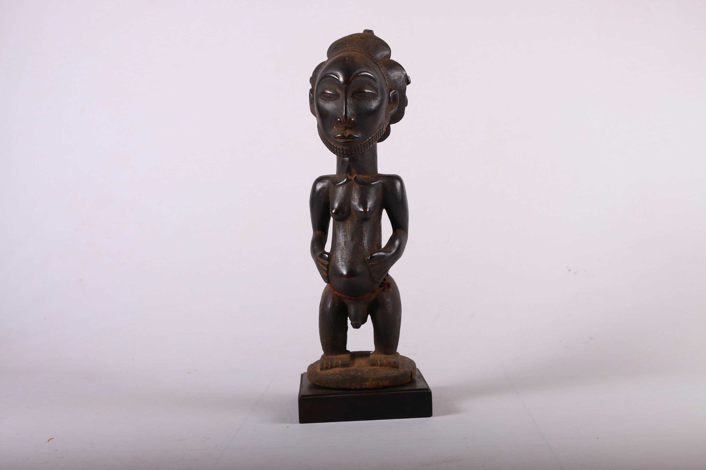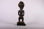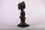 The Hemba are located along the Congo River. The Hemba art foams are closely linked to Luba art. Hemba sculptures are representations of ancestors. Female sculptures are rare and are associated with fertility as well as used for divination purposes. The following sculpture has a black patina and looks visibly old.