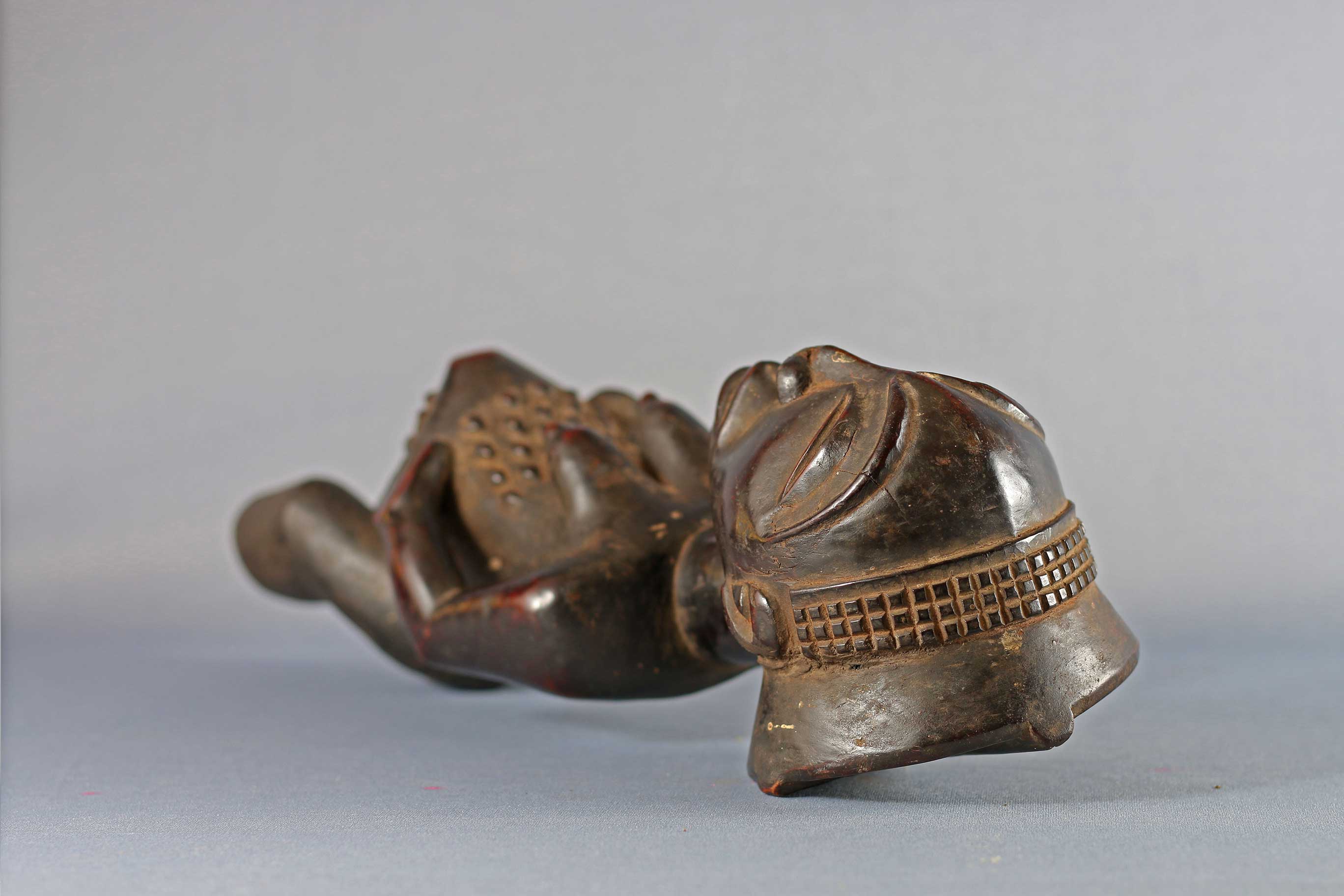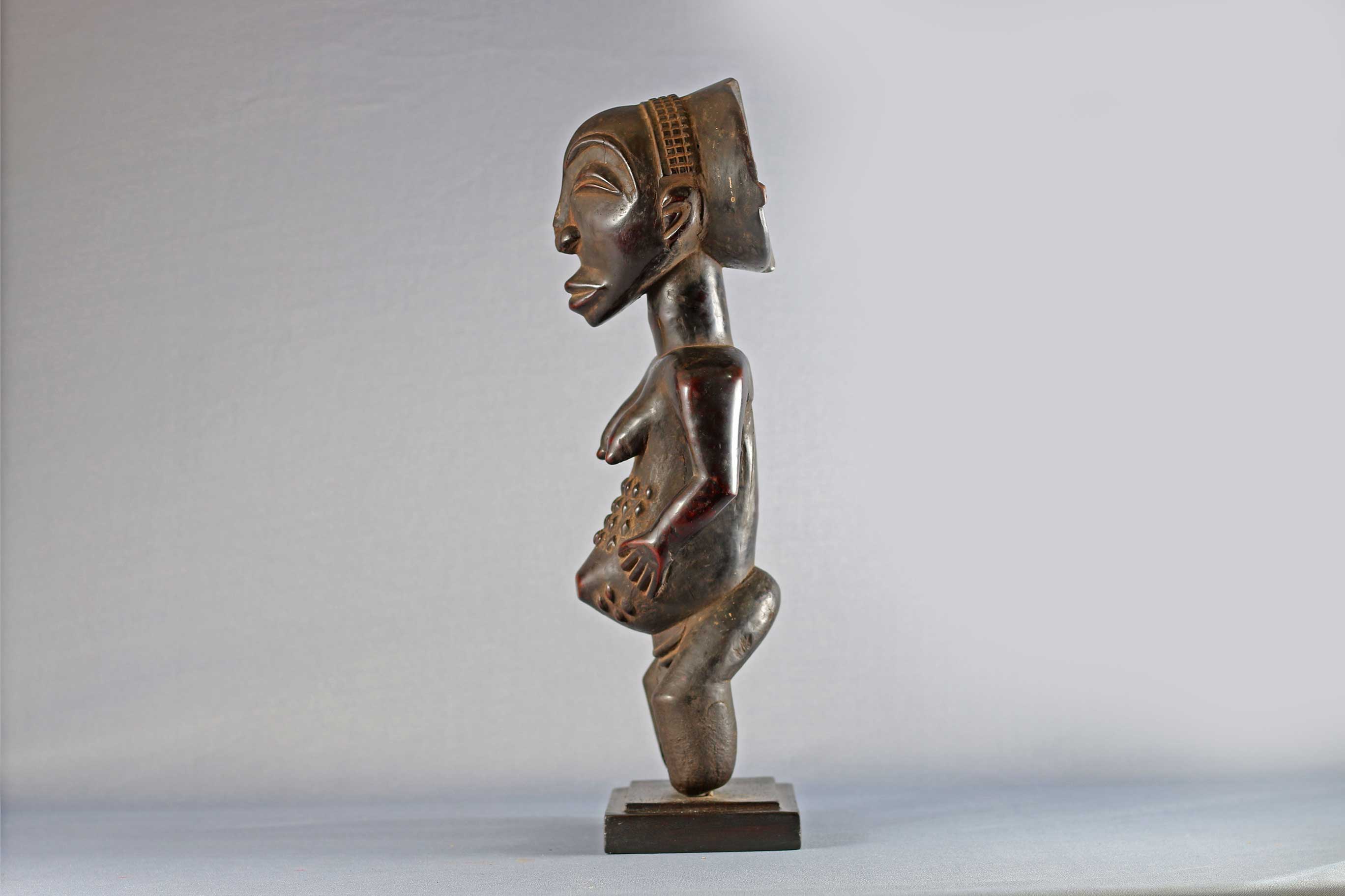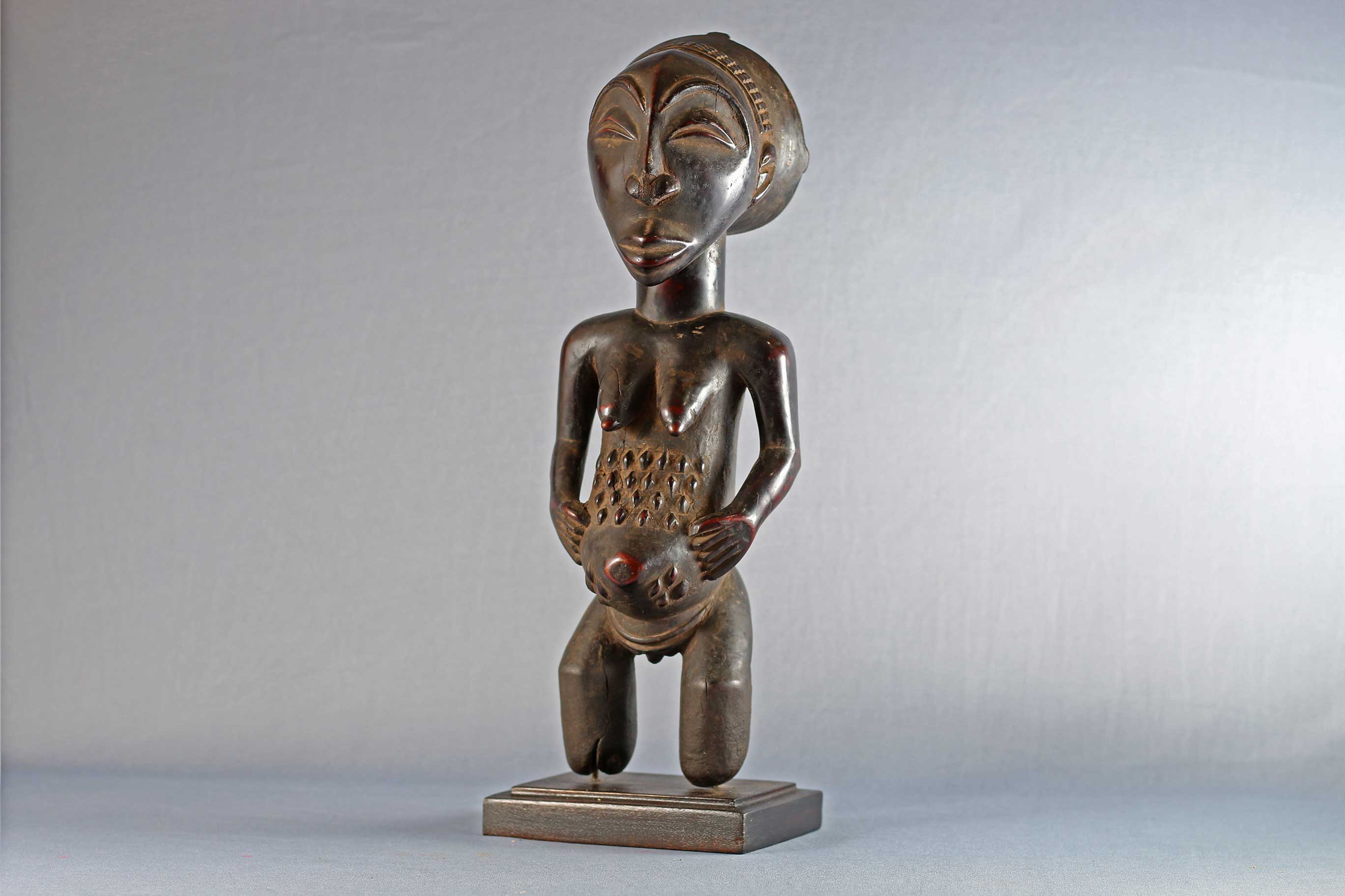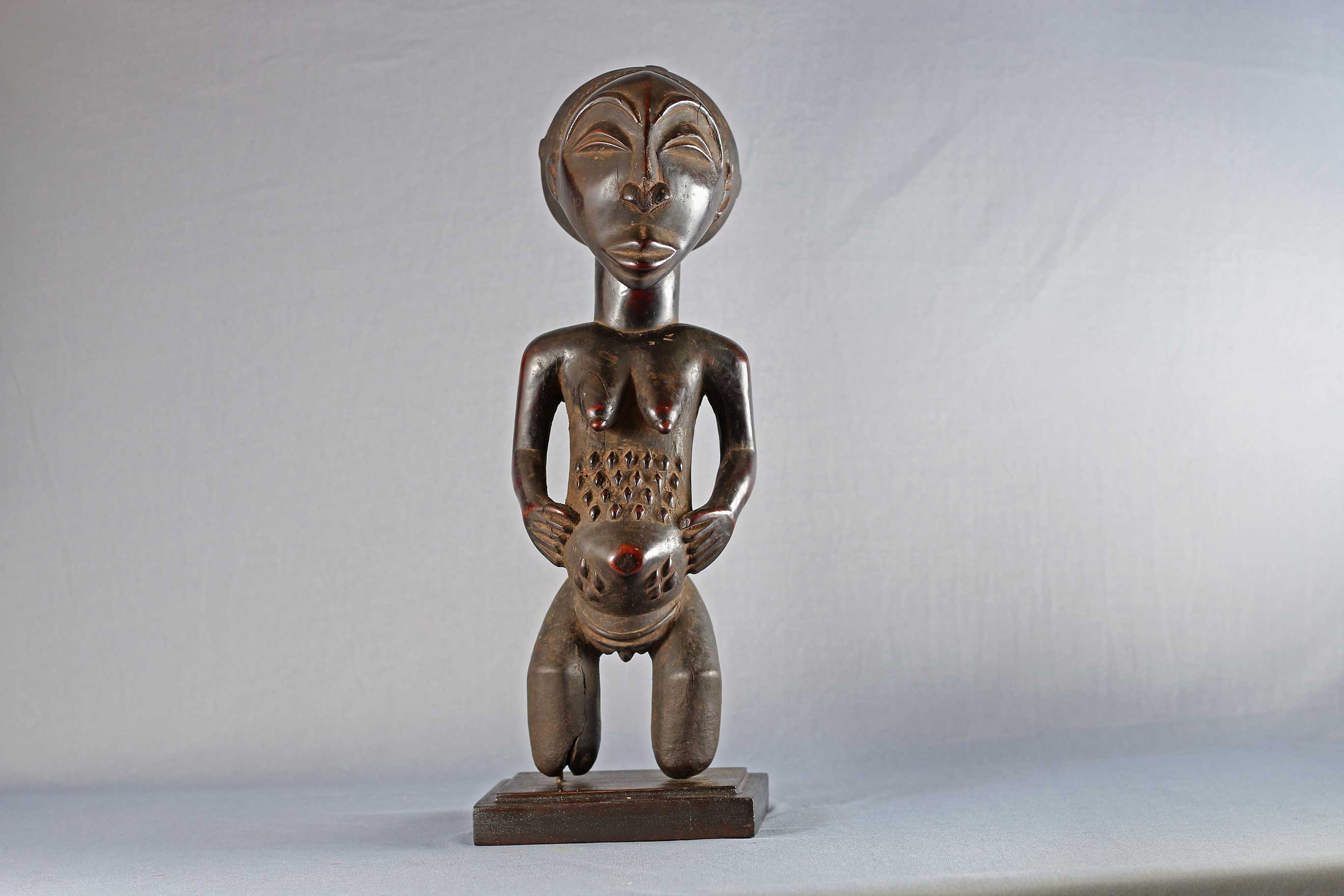The Hemba are located along the Congo River. The Hemba art foams are closely linked to Luba art. Hemba sculptures are representations of ancestors. Female sculptures are rare and are associated with fertility as well as used for divination purposes. This Hemba sculpture is in perfect condition and shows perfect signs of age, it has lost its plateau (bottom part) but its upper torso remaining.