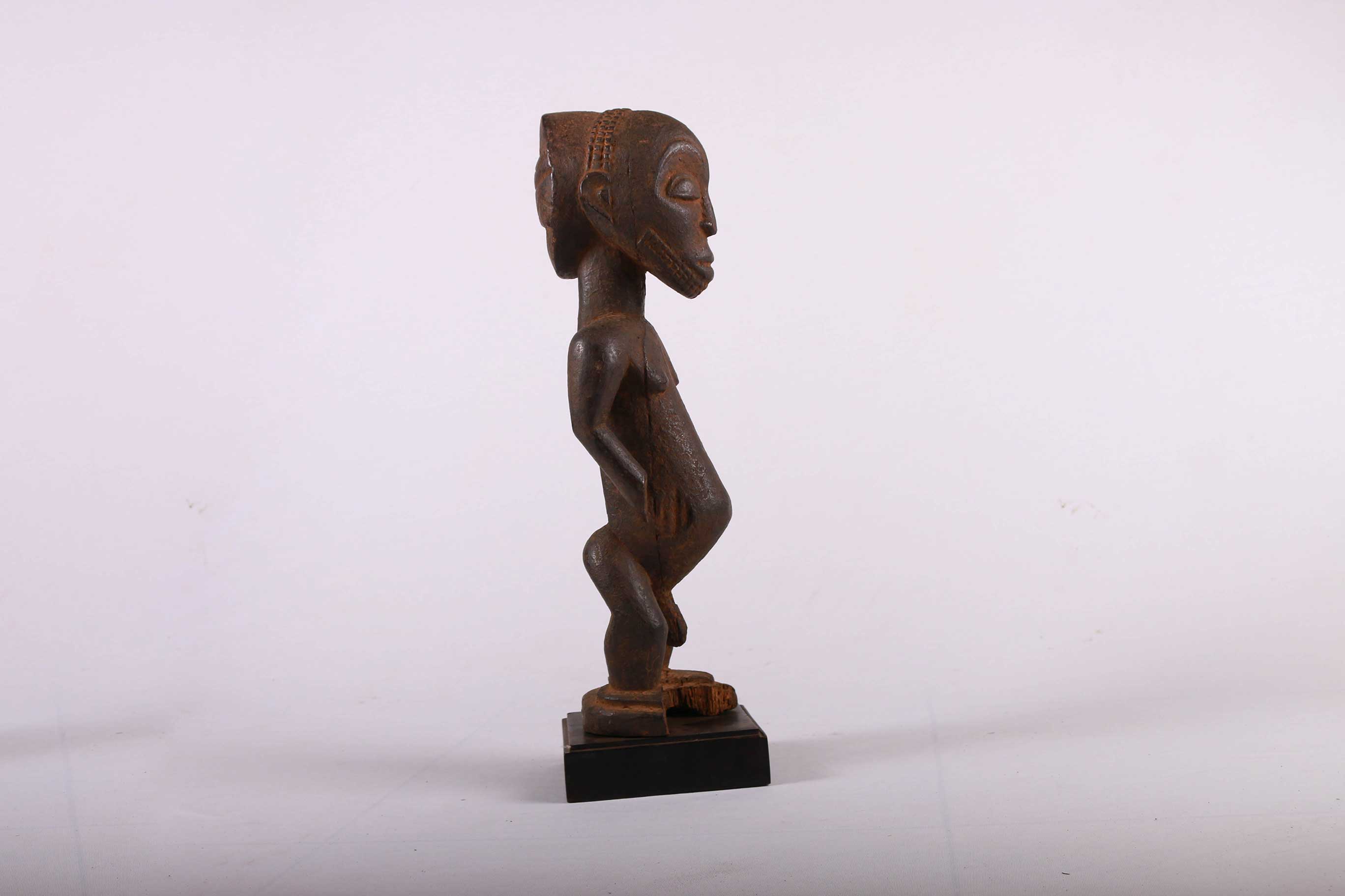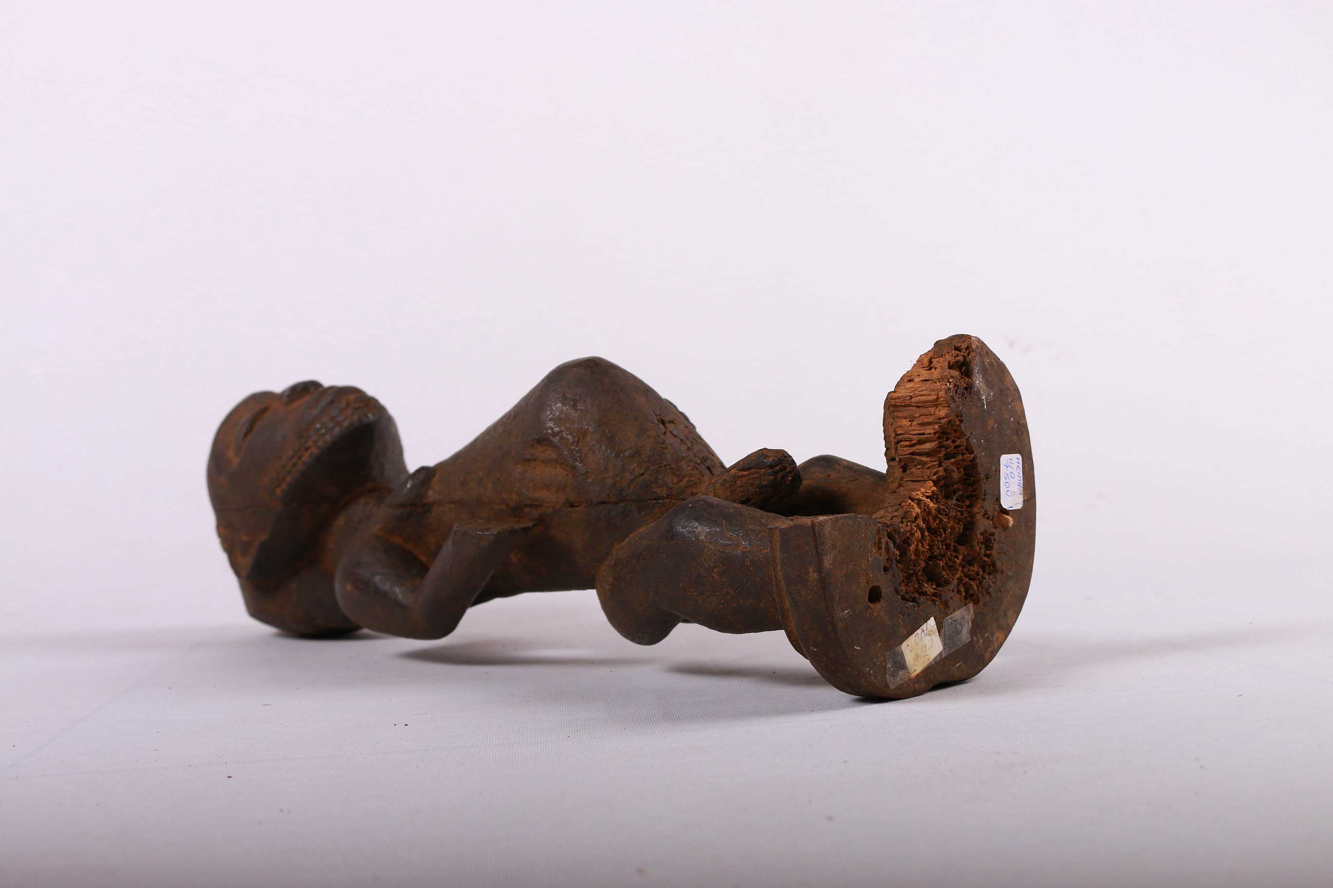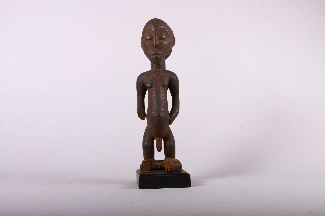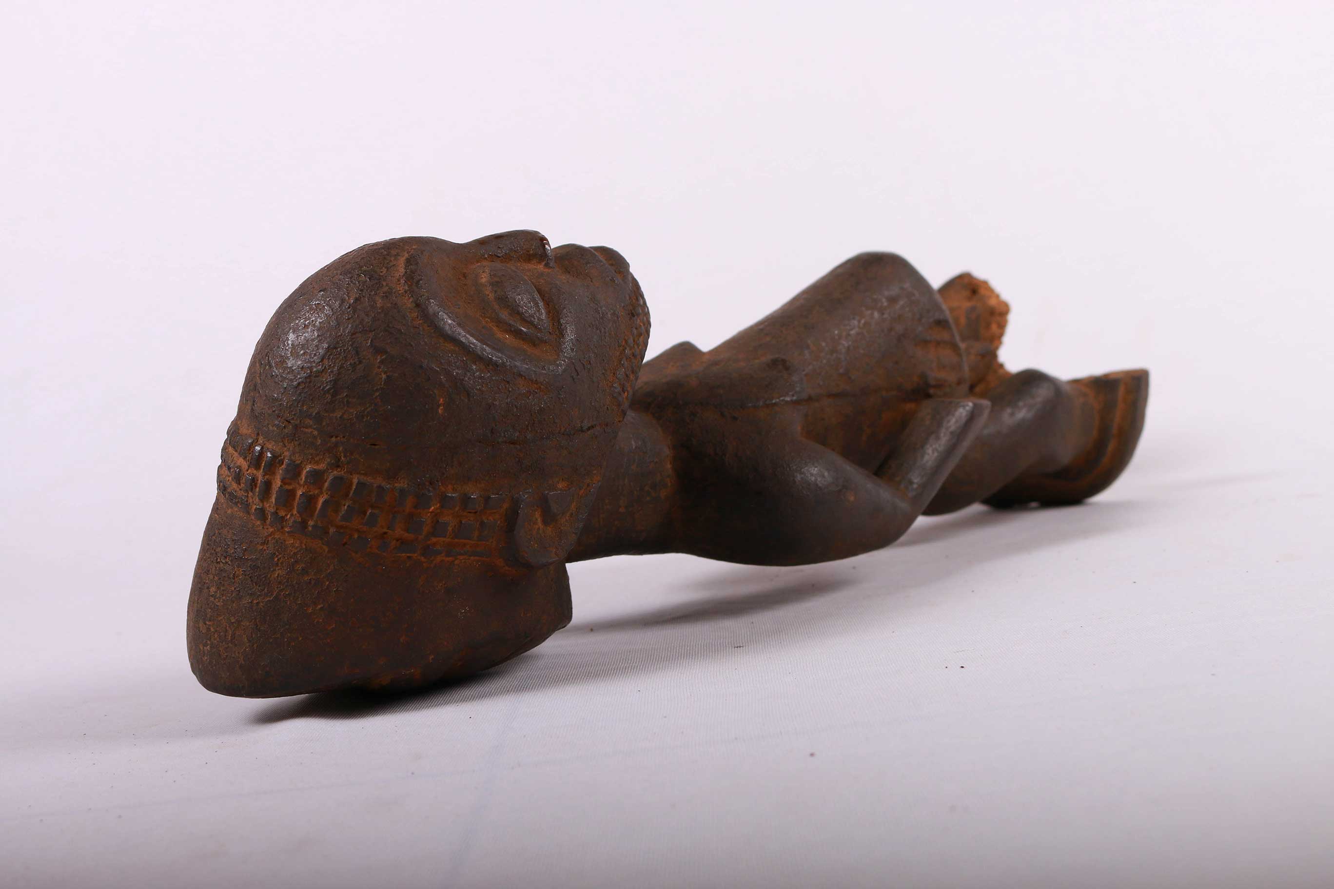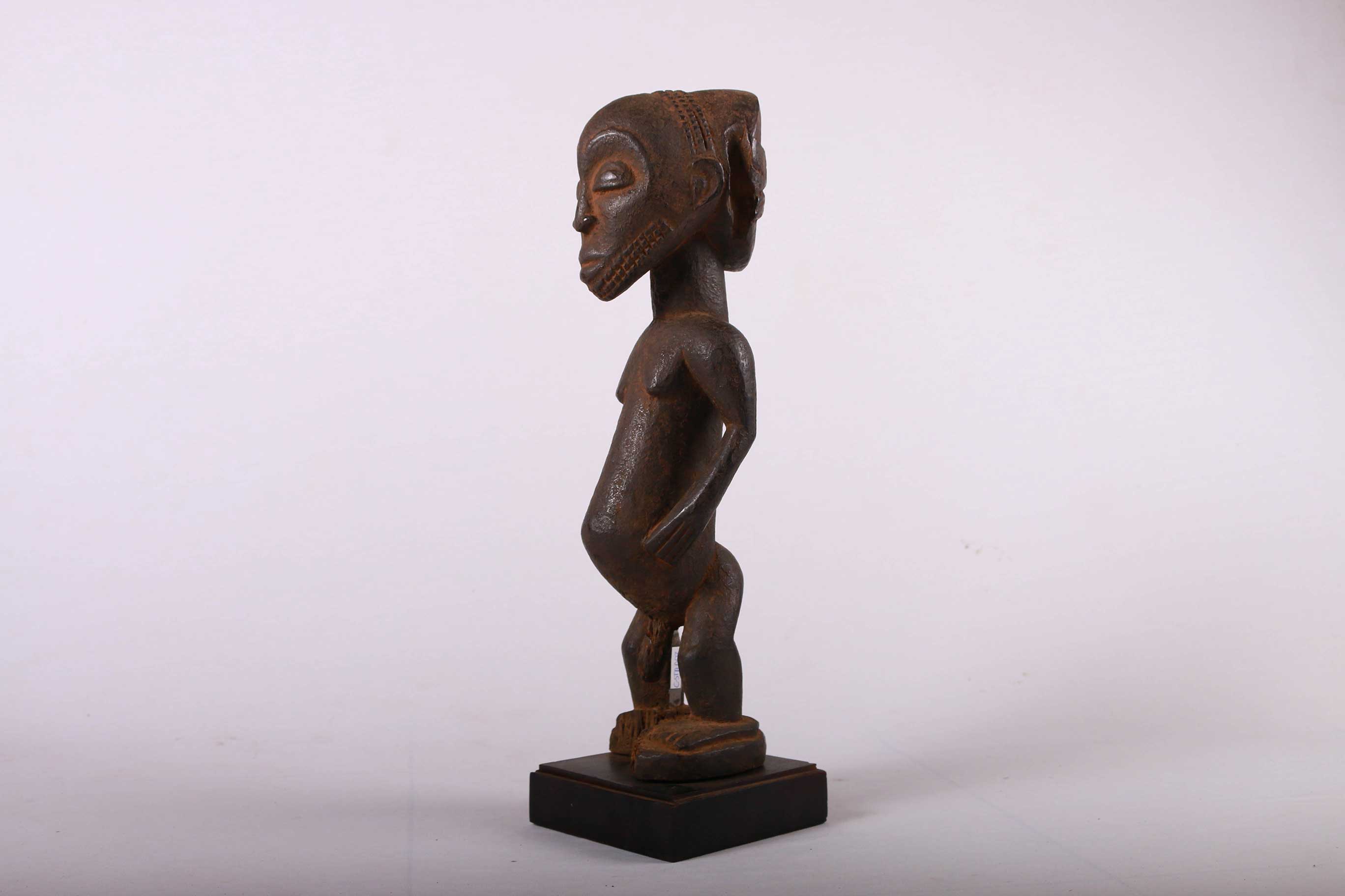 The Hemba are located along the Congo River in the Democratic Republic of Congo. Hemba art foams are closely linked to Luba art. Hemba sculptures are representations of ancestors. Female sculptures are associated with fertility as well as divination purposes. This sculpture has a dark patina, looks visibly old and shows clear signs of usage.