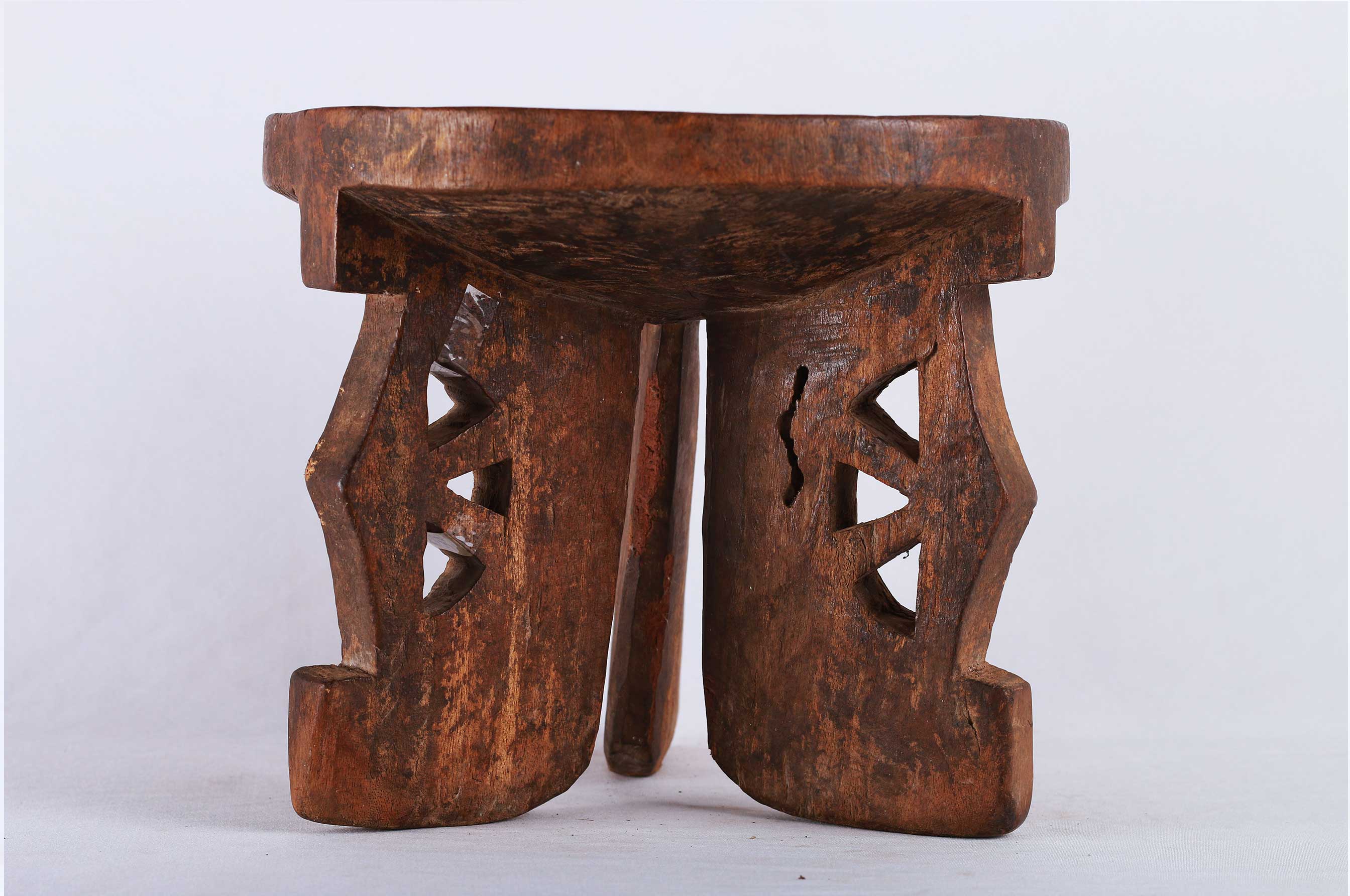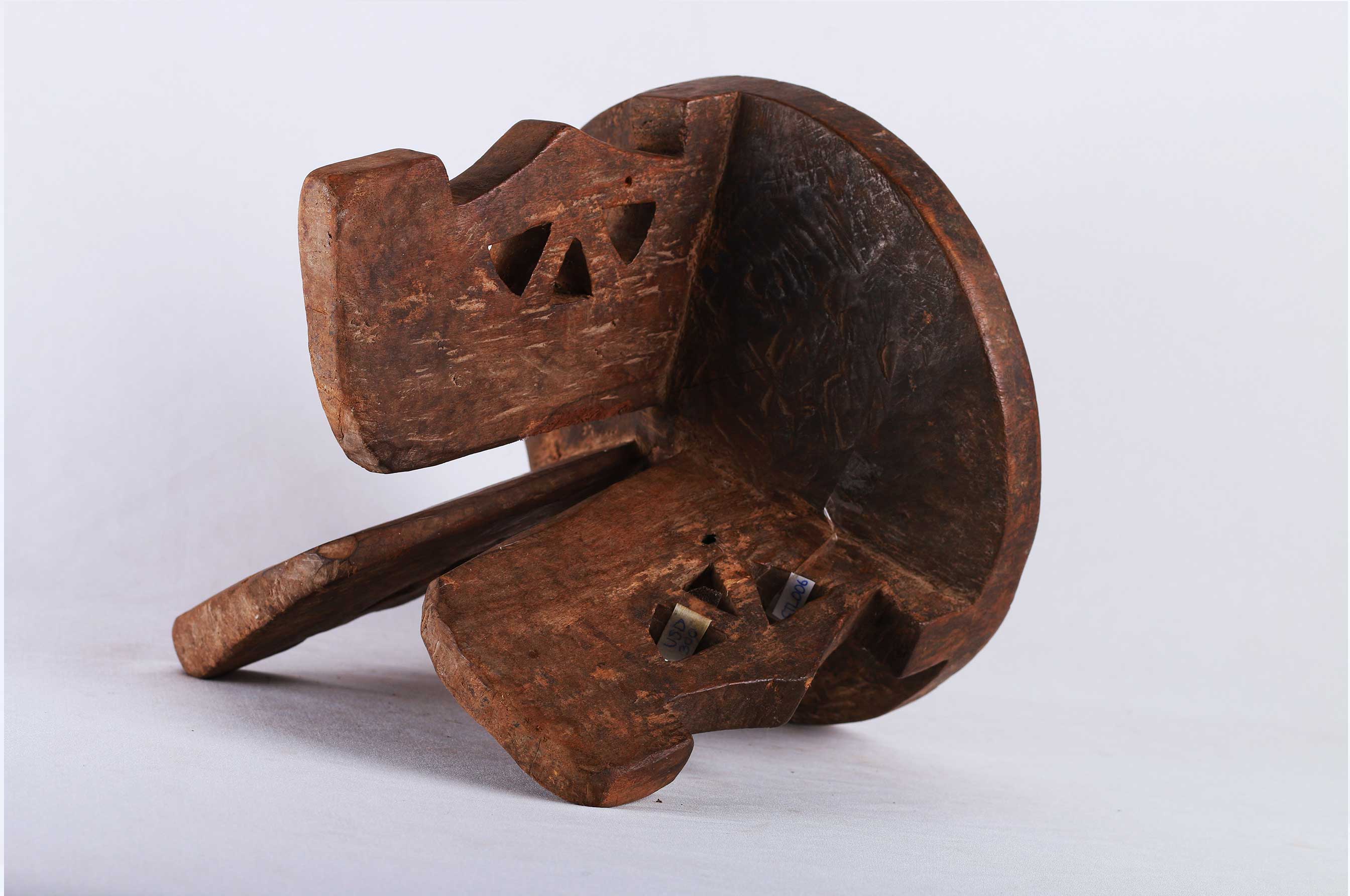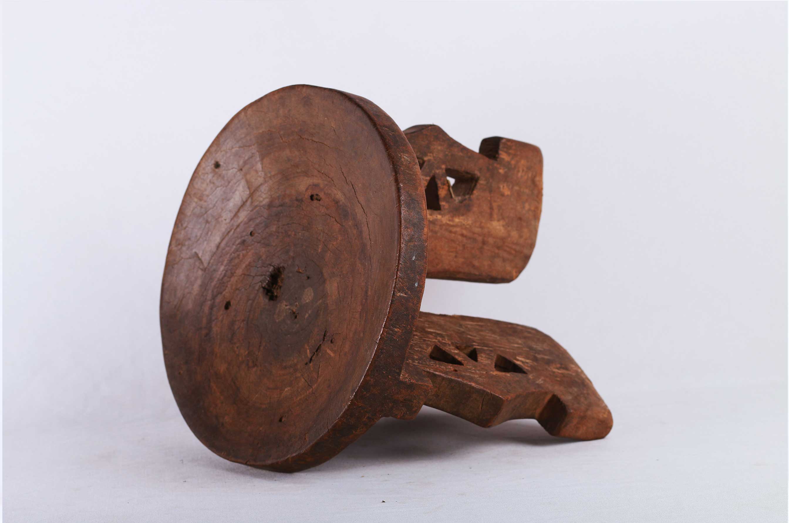 The Kamba people are a Bantu ethnic group who live in the semi-arid formerly Eastern Province of Kenya stretching east from Nairobi to Tsavo and north up to Embu, Kenya. This land is called Ukambani which constitutes of Makueni County, Kitui County, and Machakos County. These are utilitarian pieces that were made mostly by the Kamba and Dorobo men for family use, they acted as personal seats to the elders. This stool is in good condition, though worn with age, and has evidence overall of old worm wear to the surfaces.