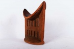 This is a block headrest curved from a single solid piece of wood, with epitomized simplicity or abstraction, a reduction of the form to its simplest nature. We believe this headrest to have originated from the Sidama or Kambatta tribe. The curved platform is linked to the base by carefully sculpted columns. The fine headrest has a wonderful brown patina, smooth texture, carved in hardwood. It shows signs of usage and old age.
