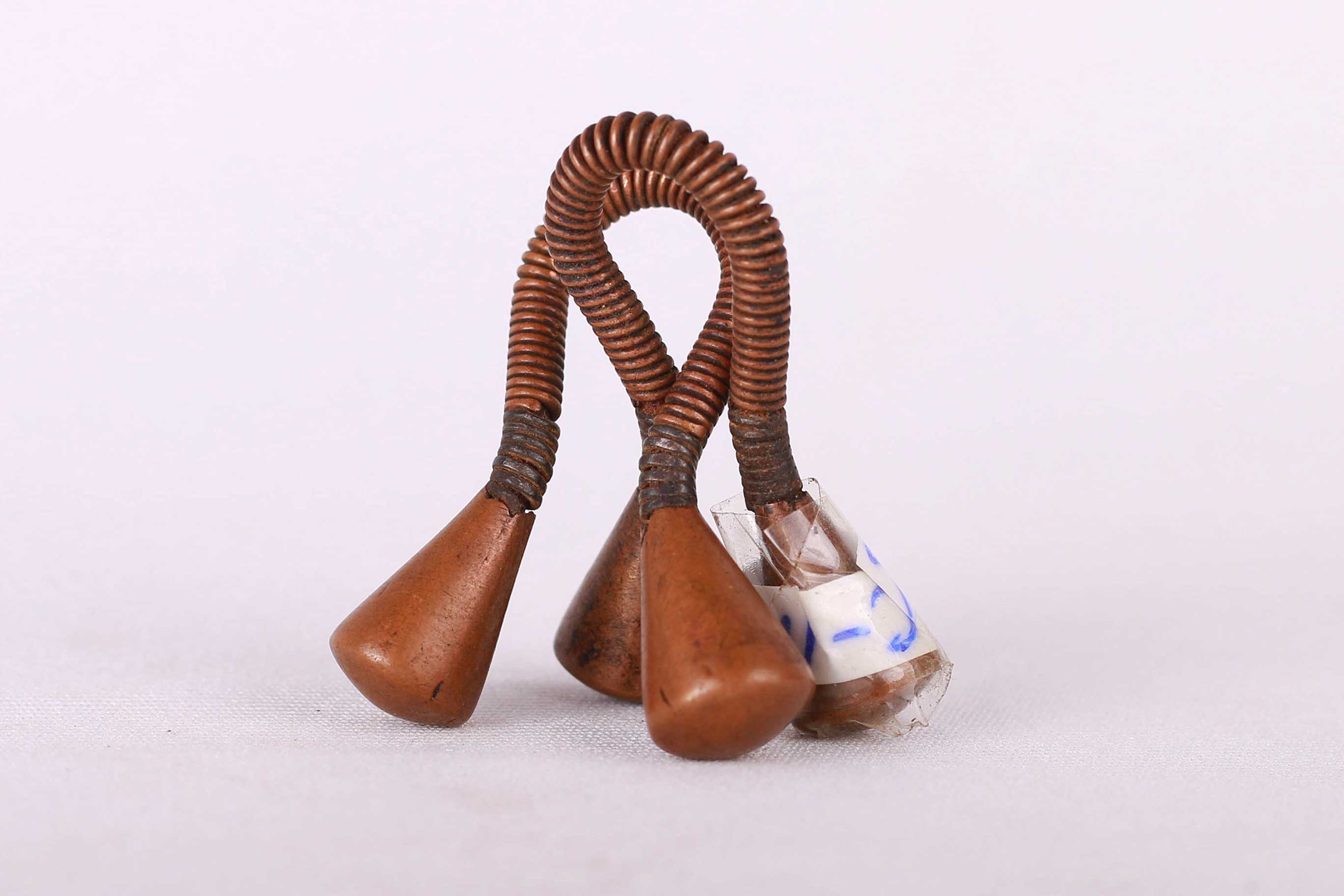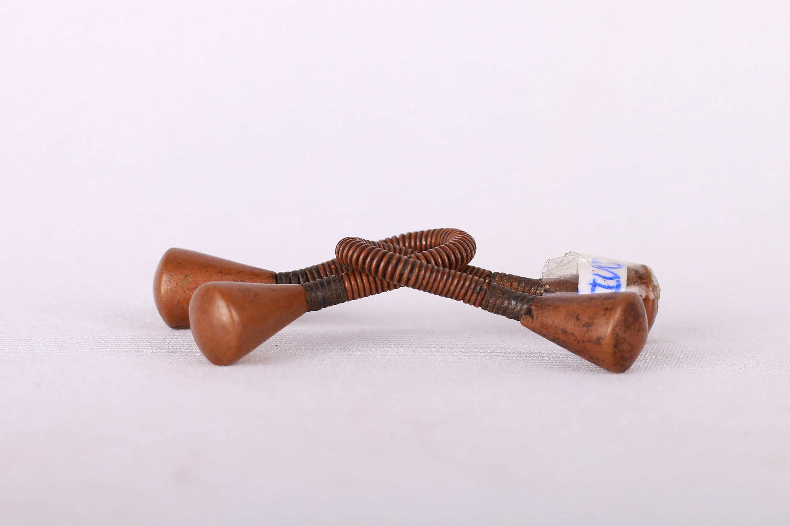 These are old copper earrings originating from the Karamojong or Karimojong an ethnic group of agro-pastoral herders living mainly in the north-east of Uganda. Such earings were worn by Karamajong women as adornments to enhance their beauty and illustrate sophistication. These earrings look visible old, show signs of wear and usage, they have a brown patina. They are small and are sold in pairs.