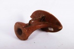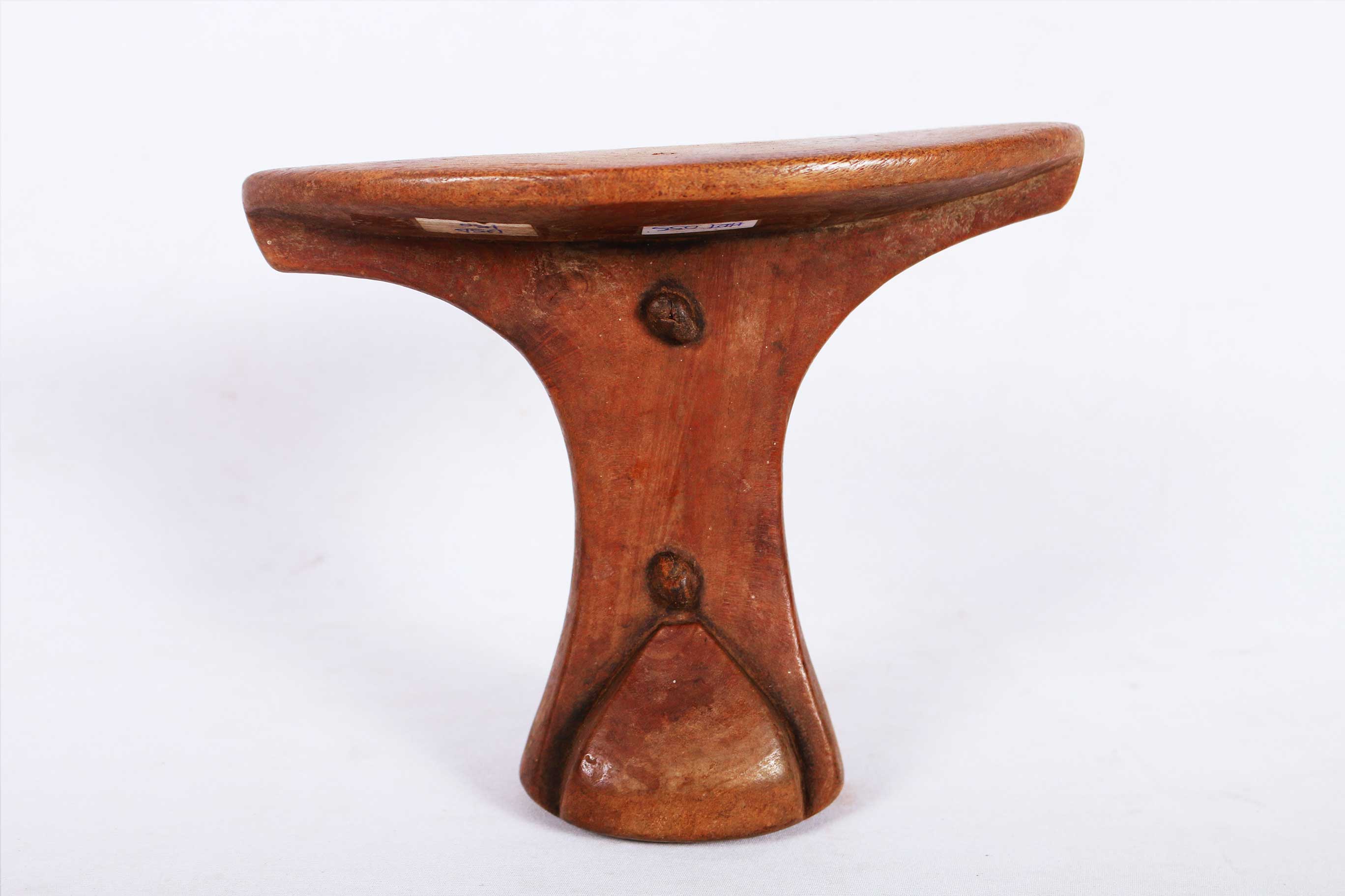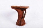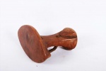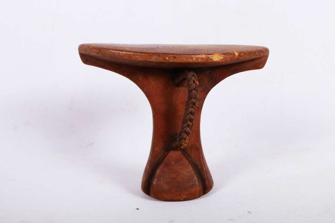 This is a T-shaped headrest from the Karamajong, an ethnic group of agro-pastoral herders living mainly in north-eastern Uganda. Headrests appear like simple pieces of craftmanship but they are of aesthetic value. They possess significance value and they have artistic status, they mean more than just mere objects. These pillow-like objects are some of the most distinctive East African articrafts. Headrests symbolized high social status or magical power such as the gift of foretelling. Headrests are also traditionally believed to protect elaborated headdresses, headrests are no longer a feature of modern life in this region.