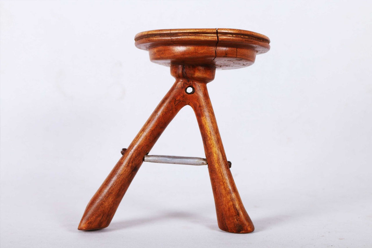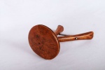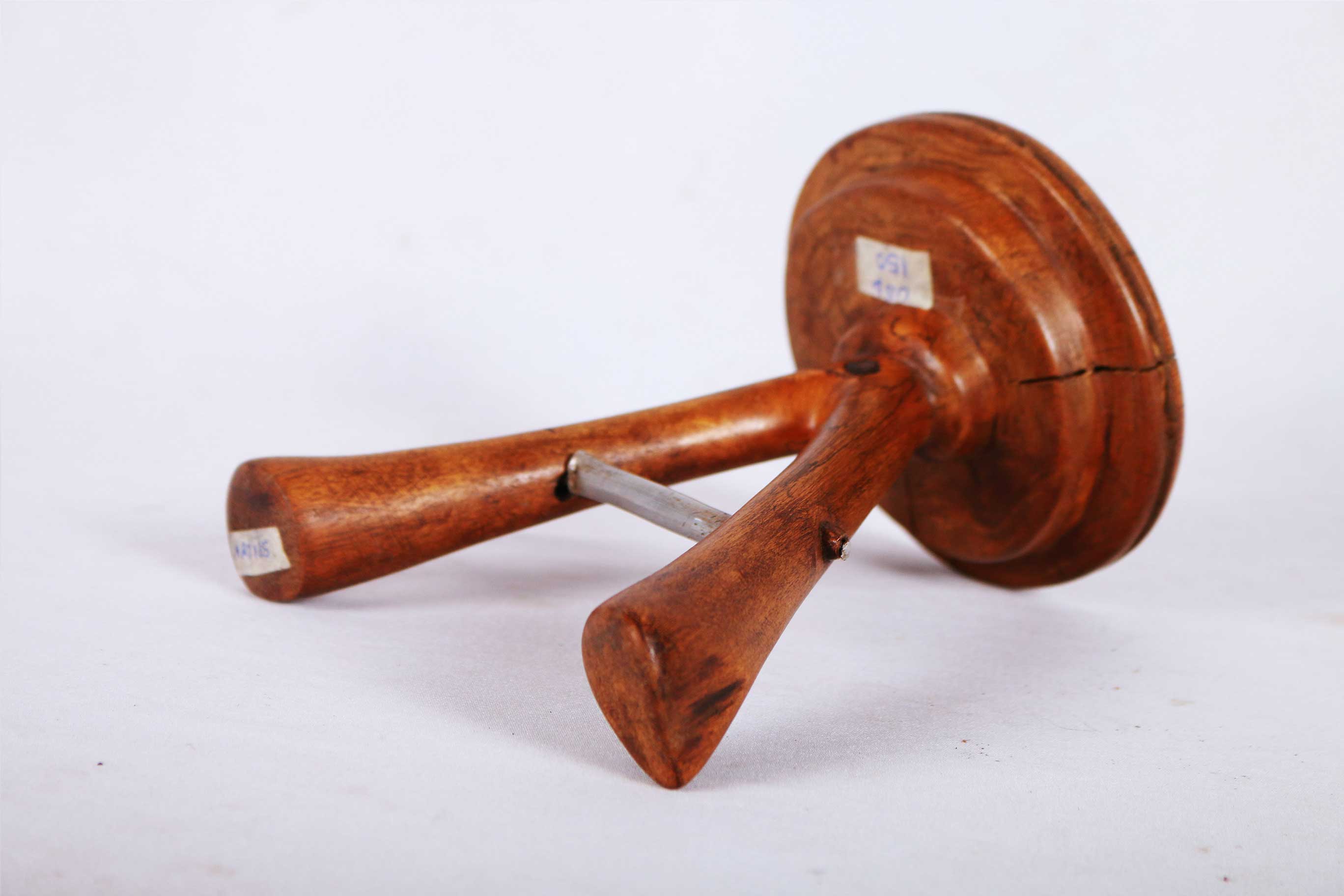 This is a two-legged stool from the Karamajong, an ethnic group of agro-pastoral herders living mainly in north-eastern Uganda. Headrests appear like simple pieces of craftmanship but they are of aesthetic value. They possess significance value and they have artistic status, they mean more than just mere objects. These pillow-like objects are some of the most distinctive East African articrafts. Headrests symbolized high social status or magical power such as the gift of foretelling. Headrests are also traditionally believed to protect elaborated headdresses, headrests are no longer a feature of modern life in this region.
