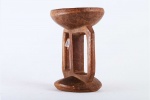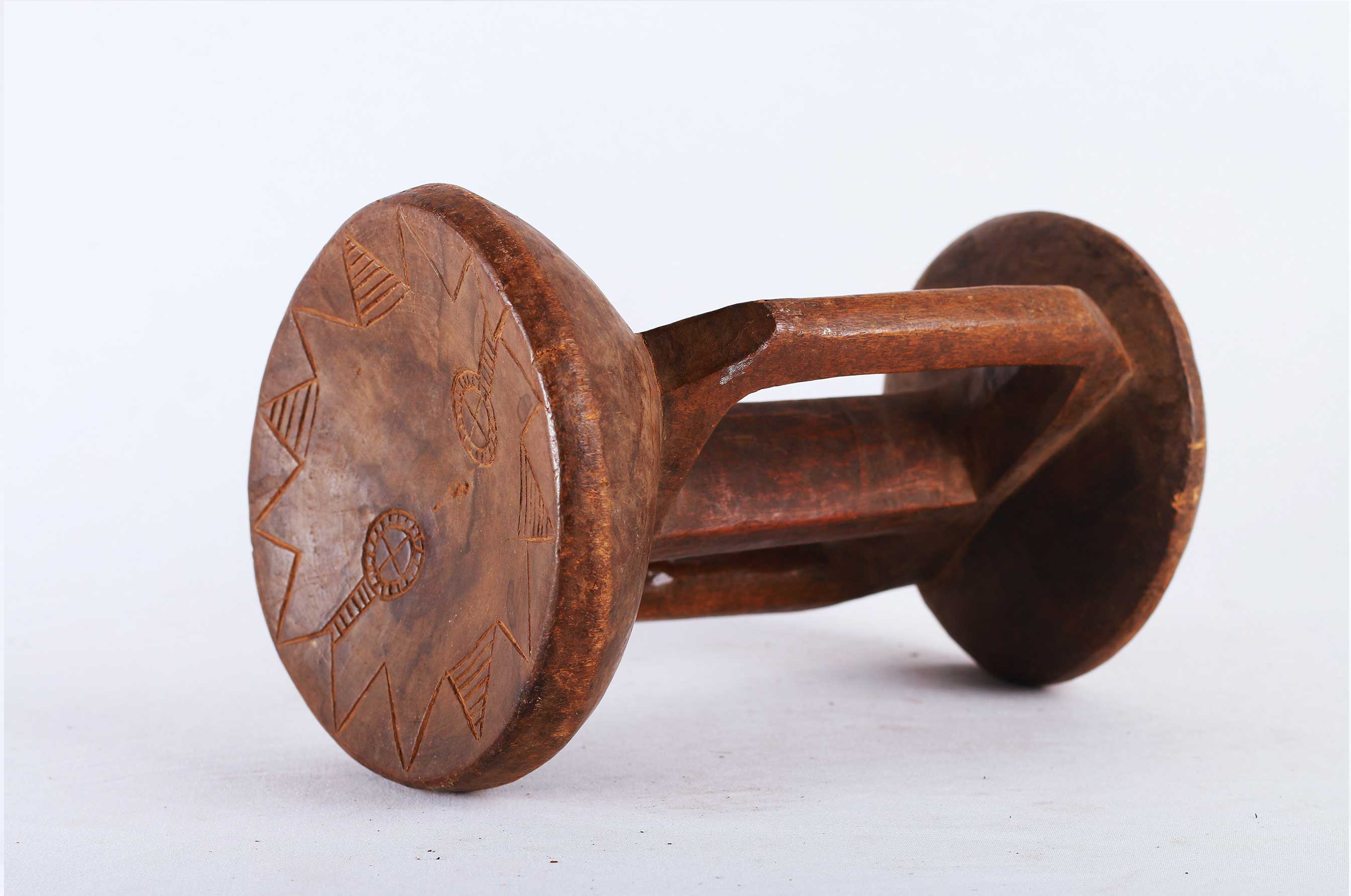 The Karamojong are an ethnic group of agro-pastoral herders living mainly in the north-east of Uganda. These stools are crafted in a different size, some are as big as a regular chair while others are made small. Most people in the region are interested in the small ones because they are light. One can move with it everywhere so that when he gets tired, he can sleep anywhere and turn it into a pillow. The stool plays a big role when shooting at a target during a war. The warrior takes cover with the wooden handguard of the gun (near the bayonet) resting on top of the stool so that a gun will not shake.After raiding cattle during such battles, one animal will be killed and its fats are removed and used for smearing the stools. They only smear the stools that were used during that particular event. The smearing is to thank the gods for the work of the stools. These stools have no restrictions; everybody starting with 10-year-old boys can own one if he can manage to make his. Young people are not allowed to sit on the stool of elderly people. Likewise, the elderly cannot sit on the stools of boys.