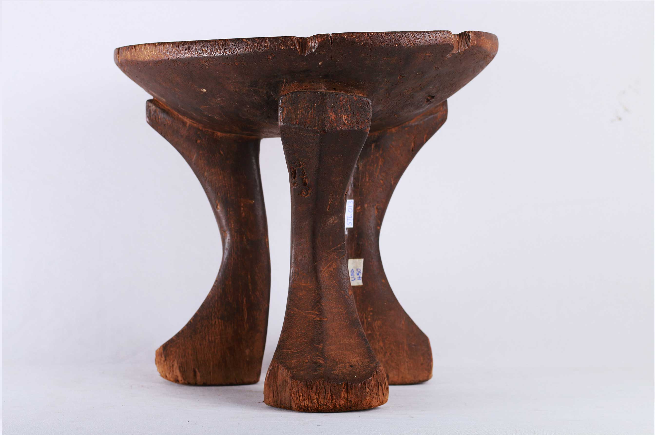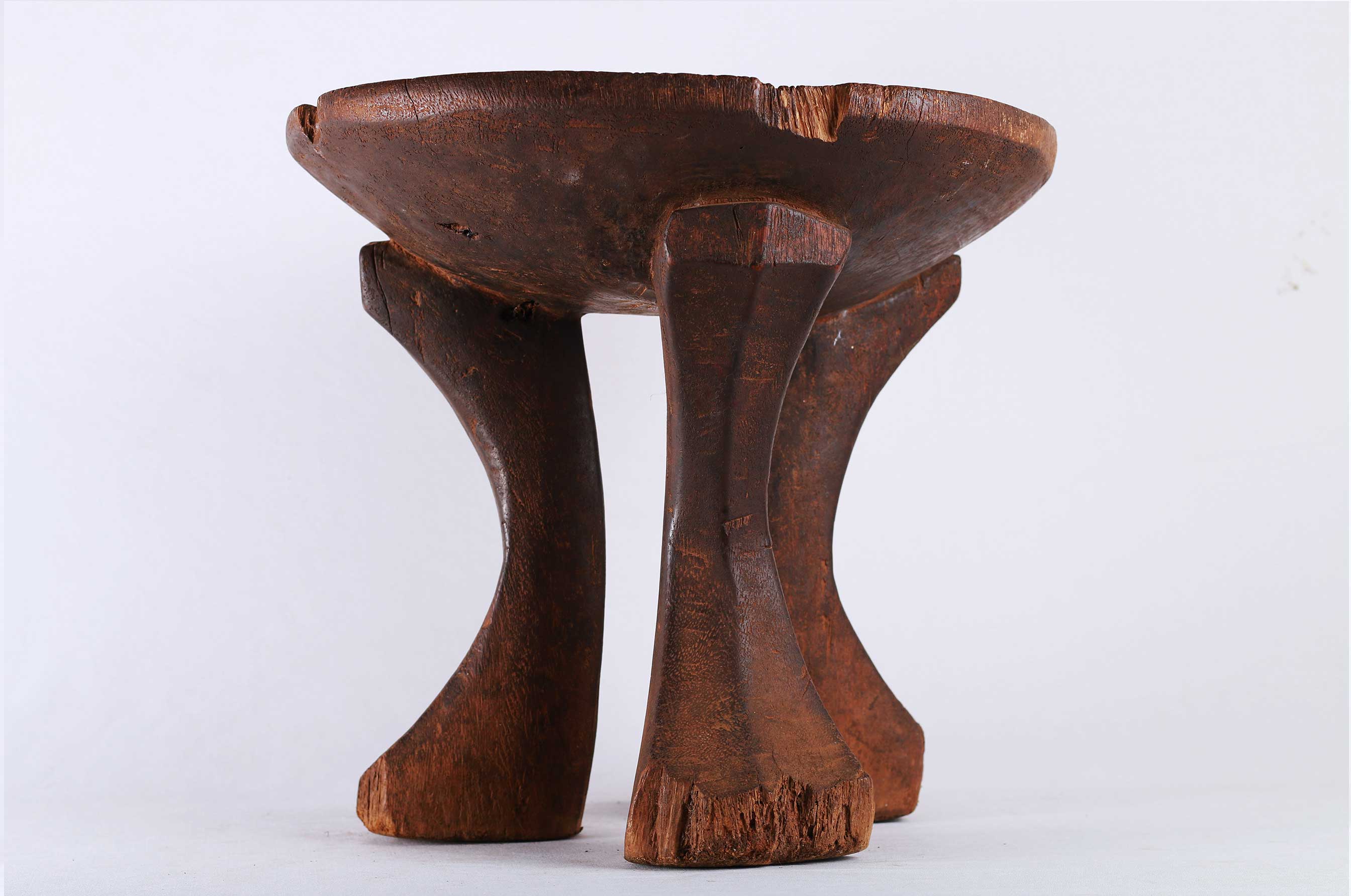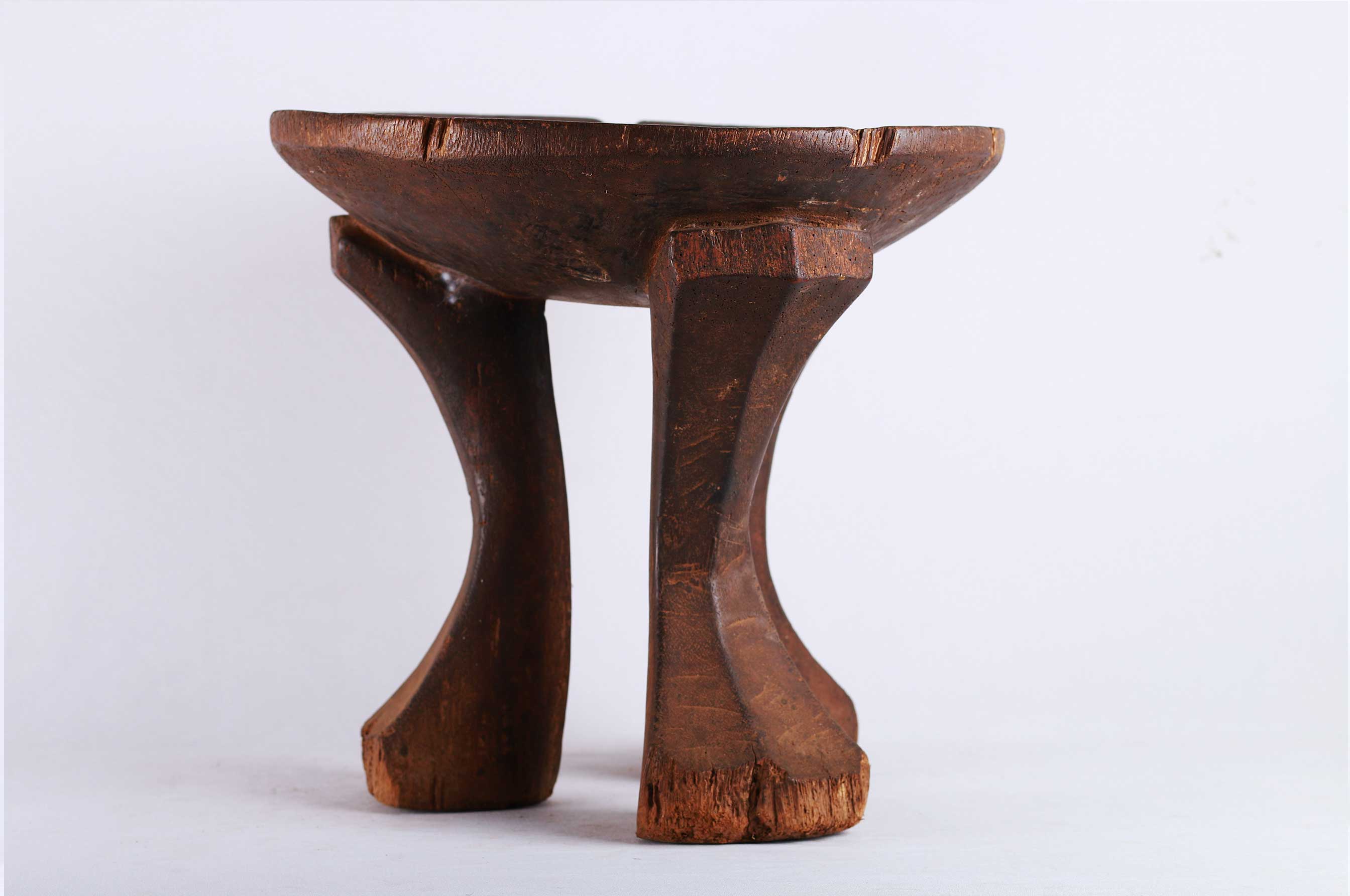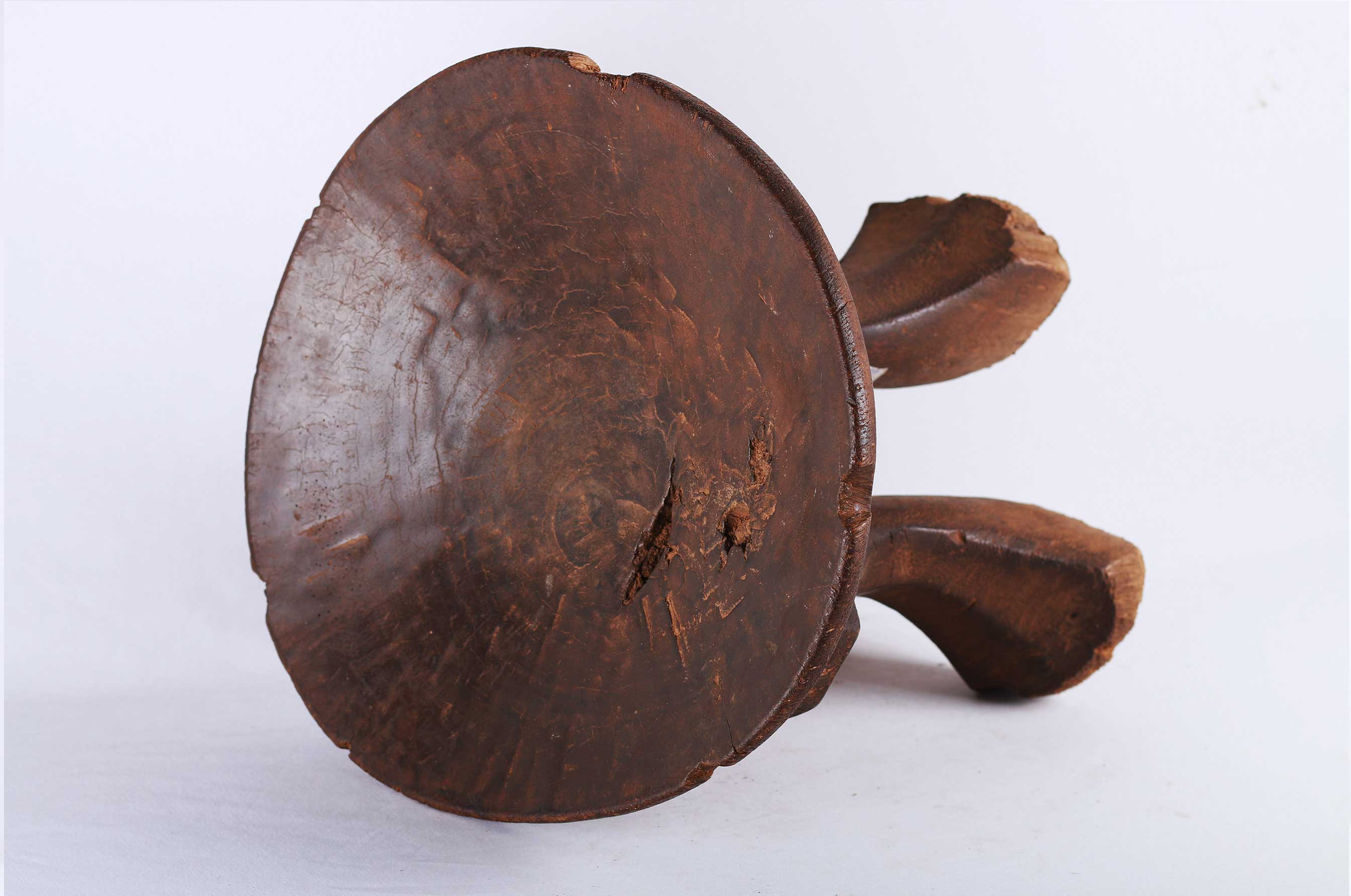 The Kikuyu tribe is a Bantu tribe that neighbours the Embu, Mbeere, and Meru tribes around Mount Kenya. These stools were personal to the owner. They were not transferred or traded, so intimately associated were they with the person for whom they were made. The size of the stool was often in relation to the importance of the owner. This stool is in good condition, though worn with age, and has evidence overall of old wear to the surfaces and great patination,