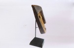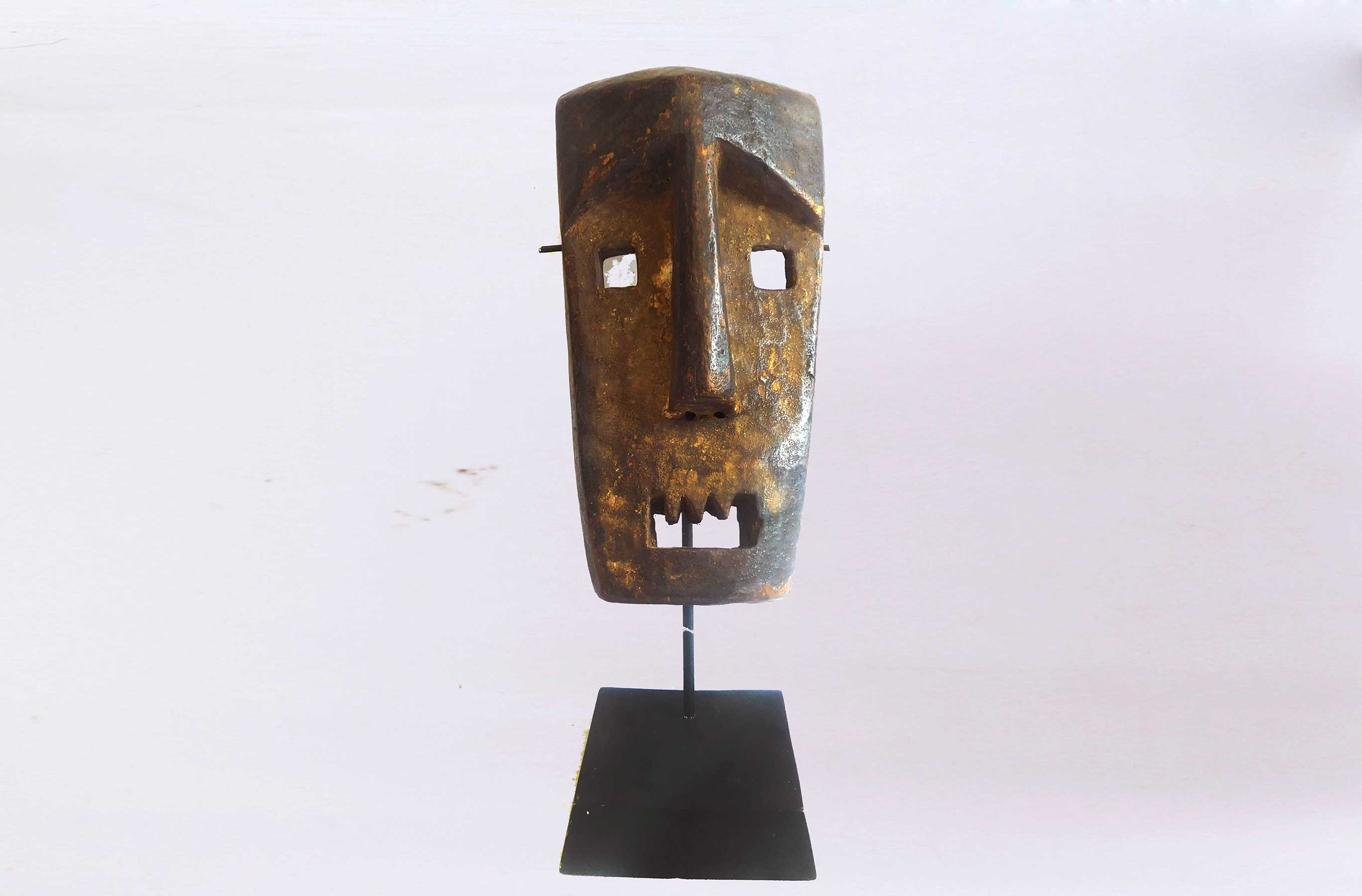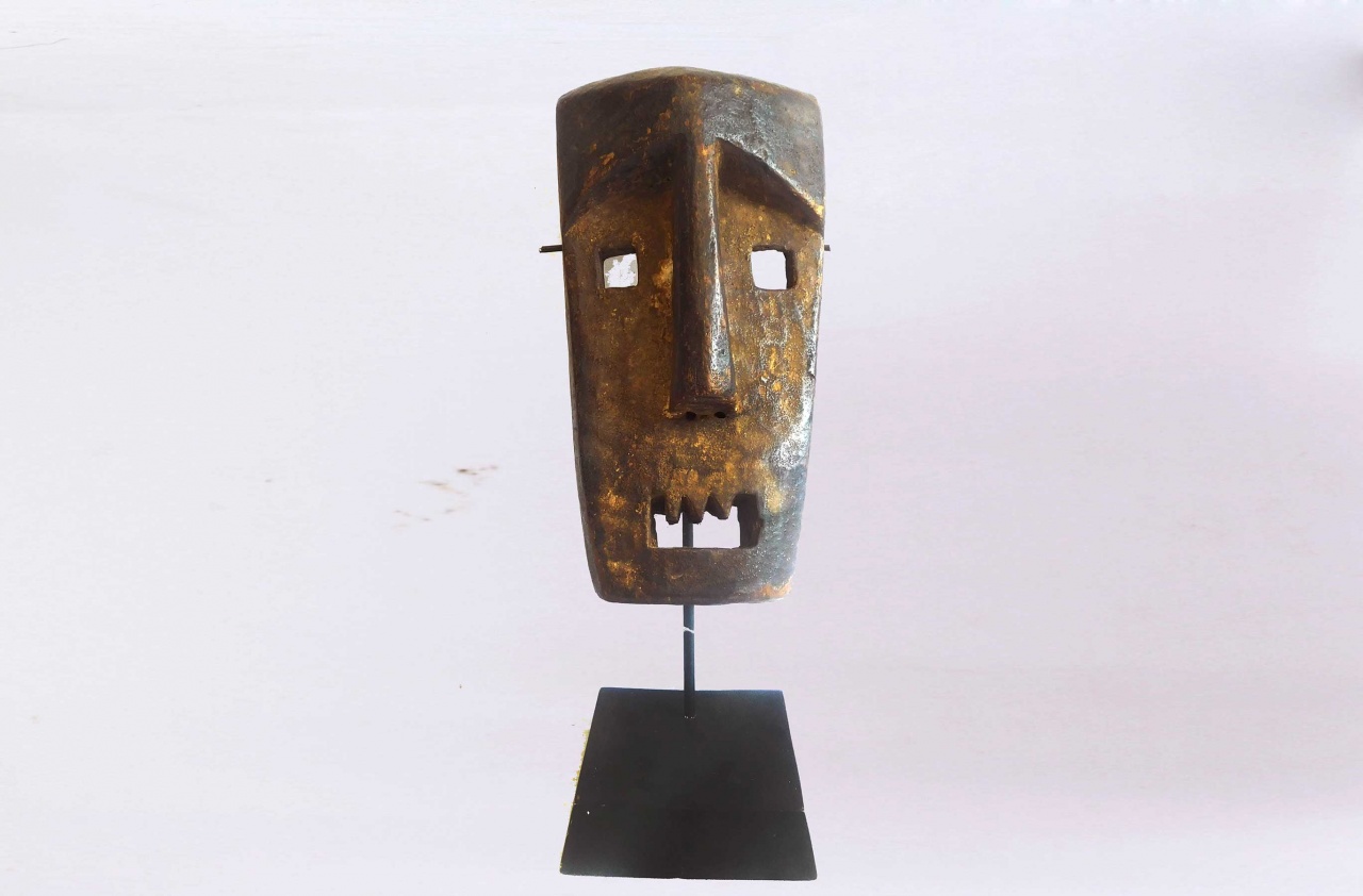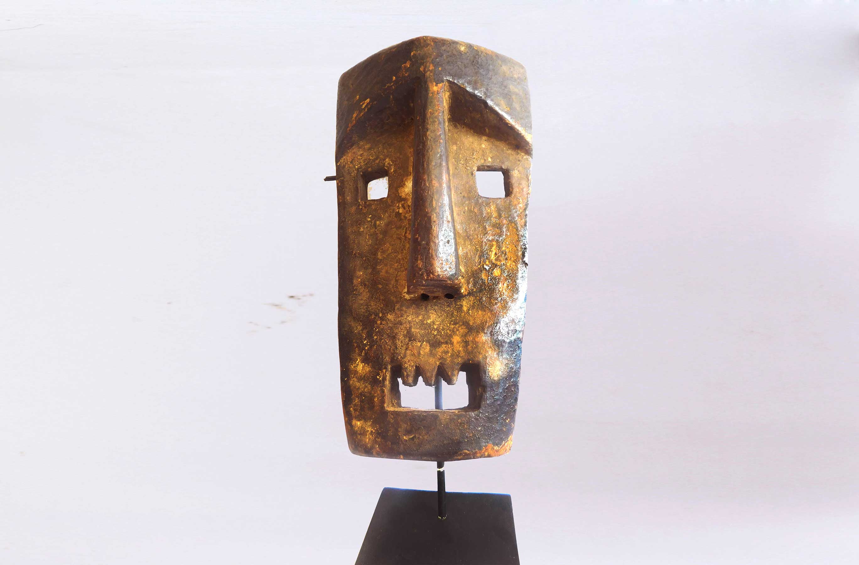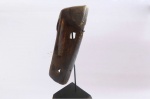 The Kumu live in the eastern Democratic Republic of Congo. The Kumu place a high value on loyalty to the extended family and honoring the in-laws. The following Kumu mask has a dark patina and is covered in old Kaolin, Kumu masks were often used during initiation into the secret society known as “Nkunda”
