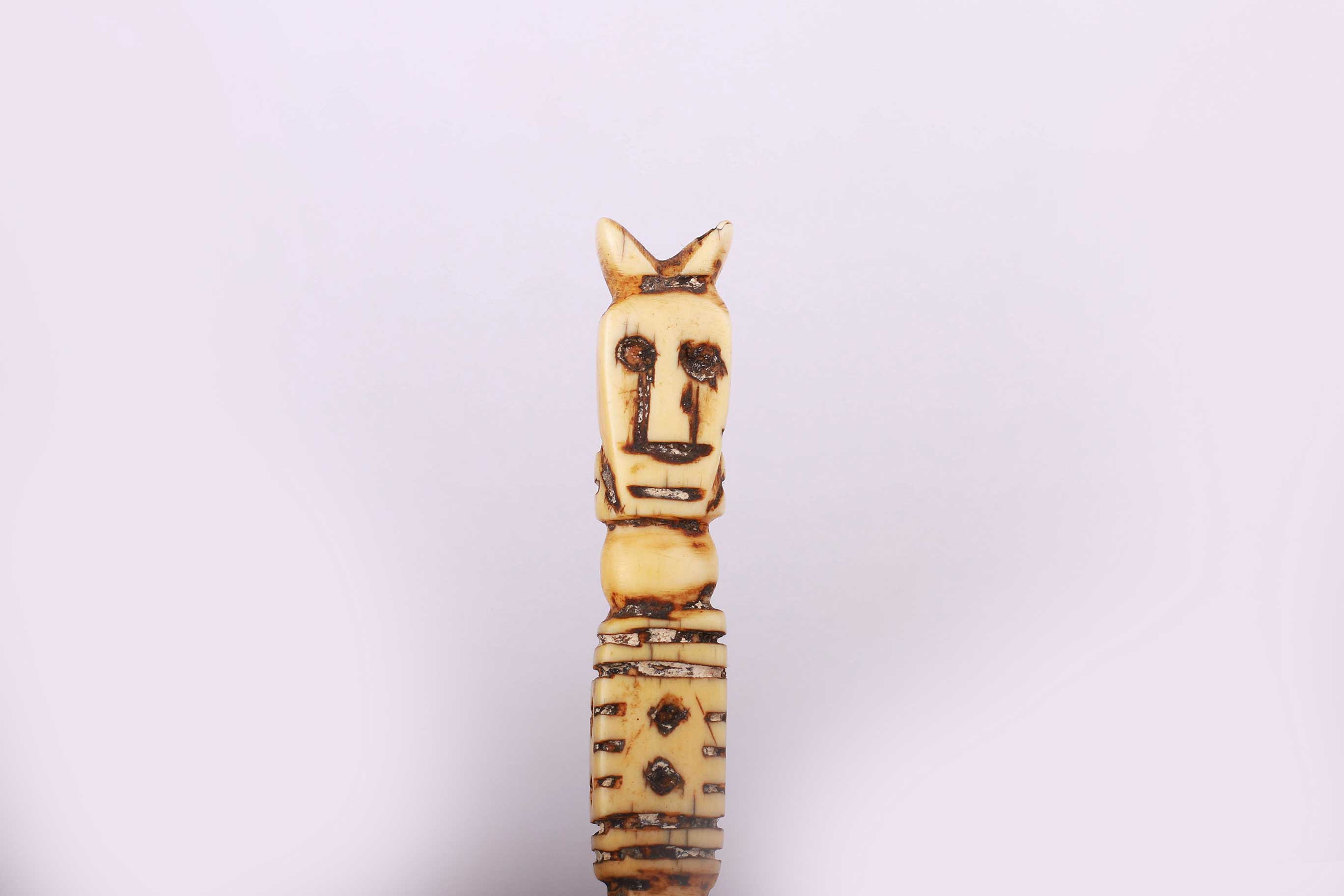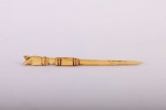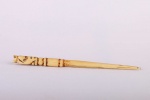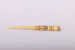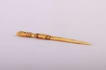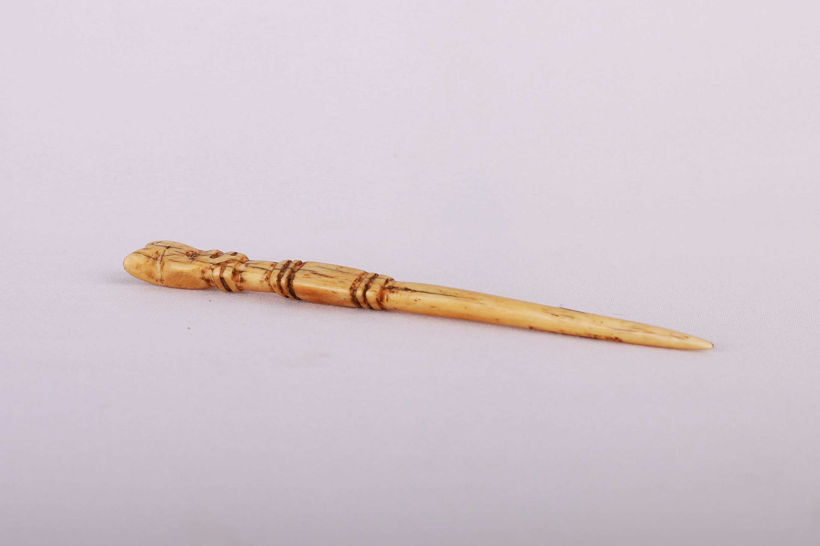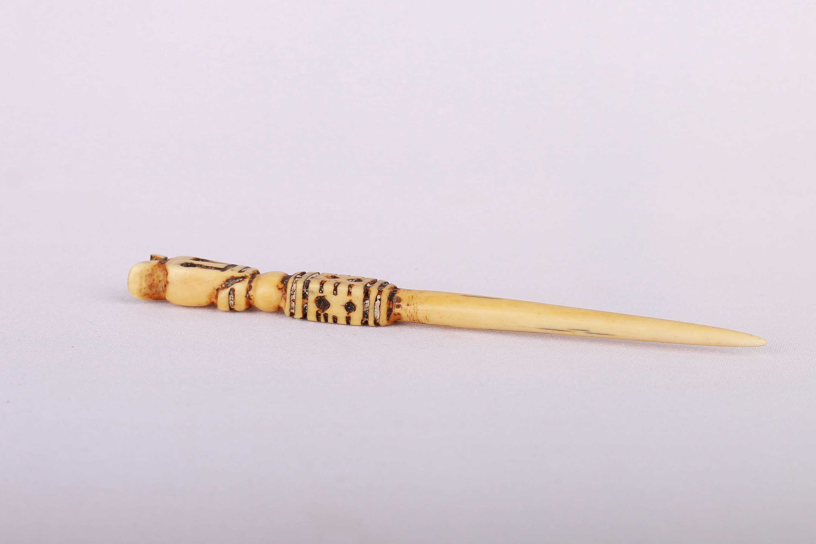 These hairpins were given to a Kwere woman by her husband either when the first daughter was born or when they moved into their own house. Afterward, the hairpins were worn as ornaments on festive occasions. They are carved from wood, have a dark patina, have a figurine at the top and are pointed at the bottom and decorations of a small layer of beads around the figurine’s waist and neck. These pins are sold in pairs and they look visibly old and show signs of usage.