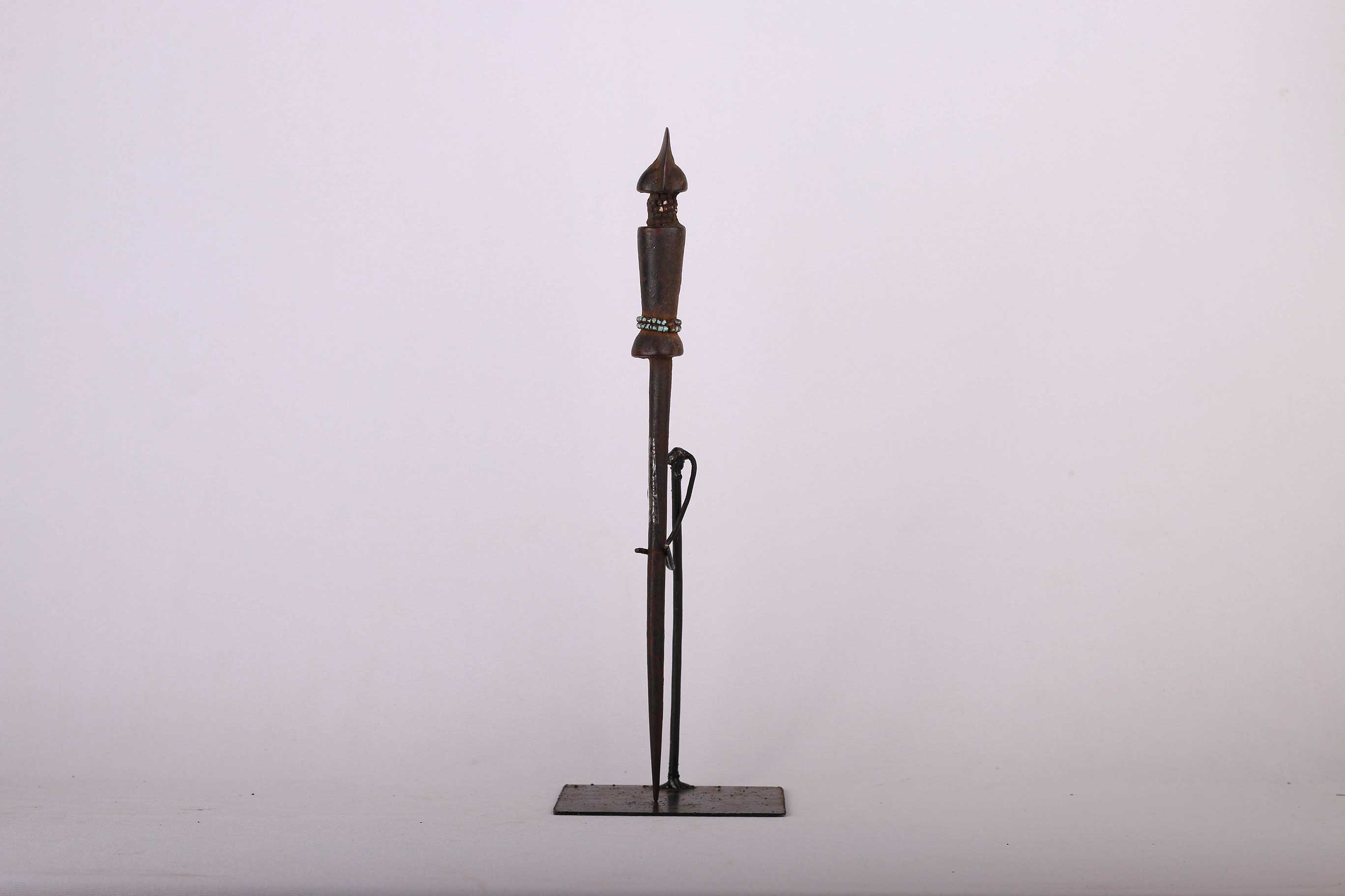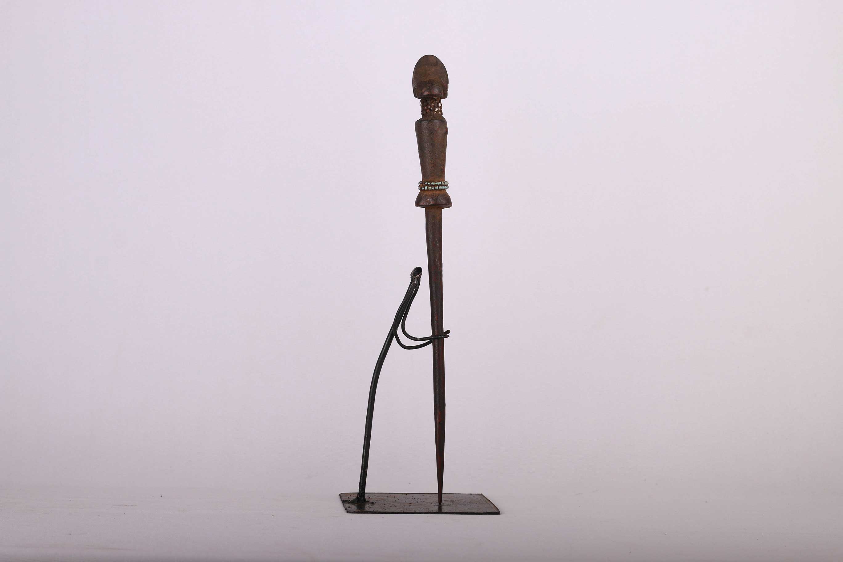 These hairpins were given to a Kwere woman by her husband either when the first daughter was born or when they moved into their own house. Afterward, the hairpins were worn as ornaments on festive occasions. They are carved from wood, have a dark patina, have a figurine at the top and are pointed at the bottom and decorations of a small layer of beads around the figurine’s waist and neck. These pins are sold in pairs and they look visibly old and show signs of usage.