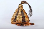 This ancient piece (a button hat) originates from the Lega people. They are an ethnic group found in the Democratic Republic of Congo. All Lega art is used within the context of the Bwami society for the production of most Lega artwork. This hat could be worn by initiates to Kindi, the highest level of Bwami. Imported buttons began to replace cowrie shells on such prestige items with the growing influence of the western culture in Congo.