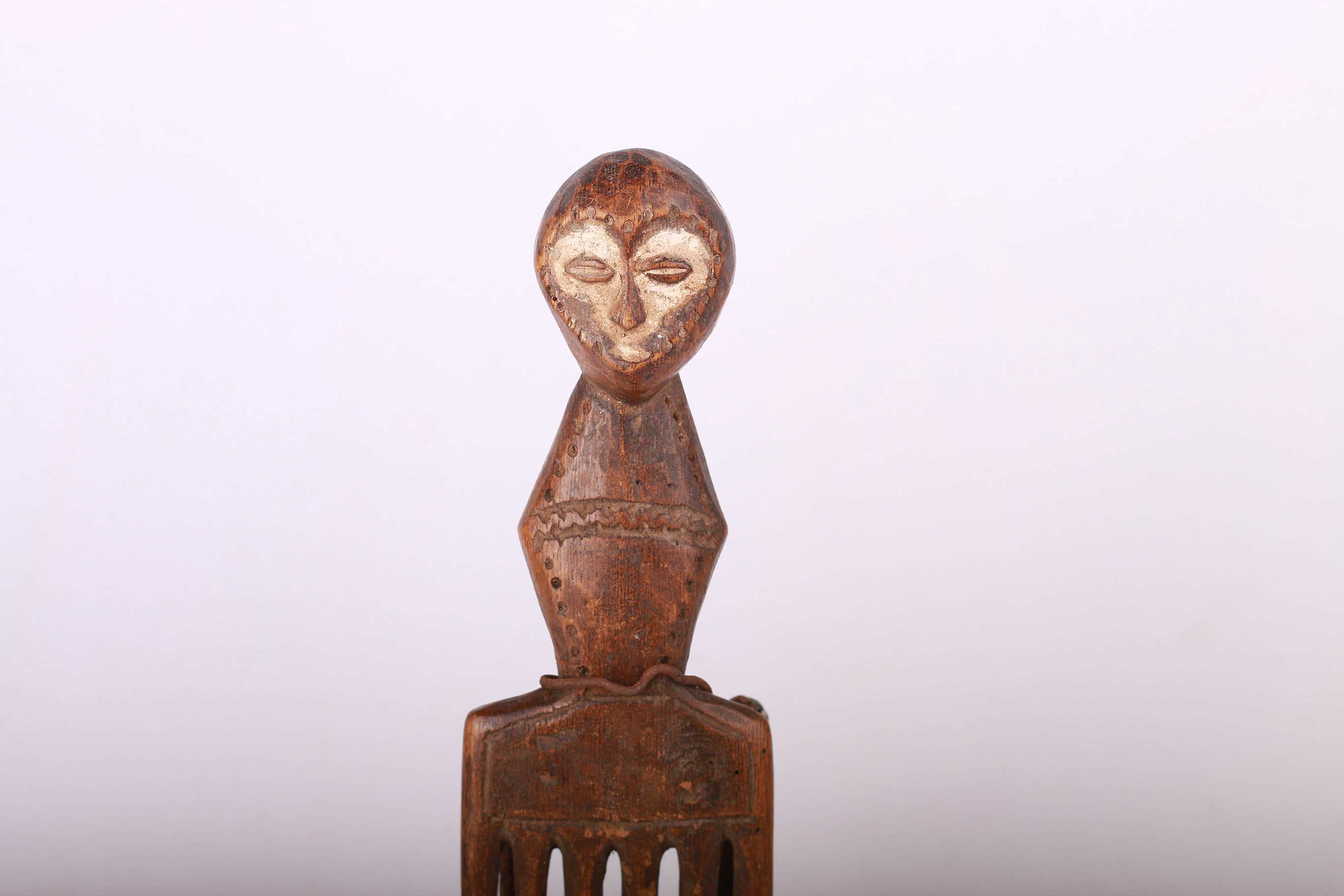 The Bwami society is the context for the production of most Lega artwork, which includes ivory and wooden statuettes and masks. Ivory objects are reserved for the highest level, Kindi, while wooden objects are used by Kindi and Yonanio, the second level.