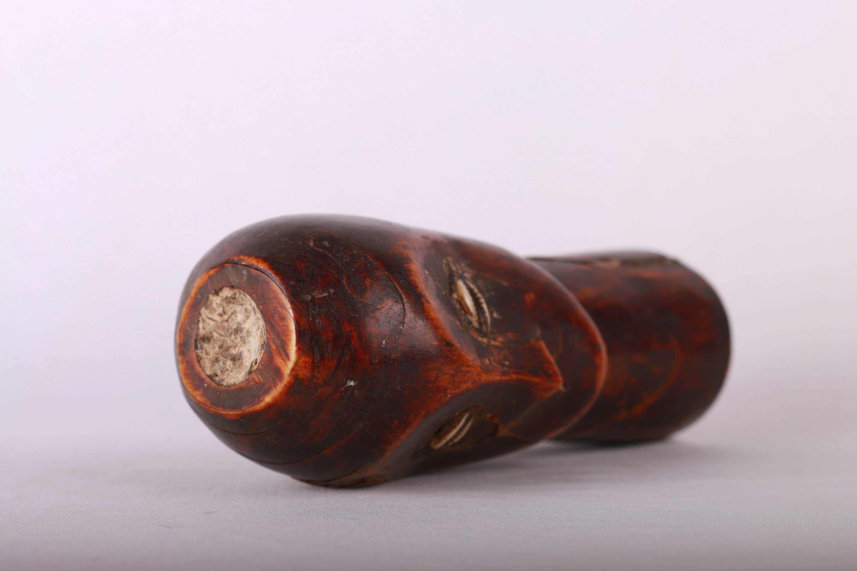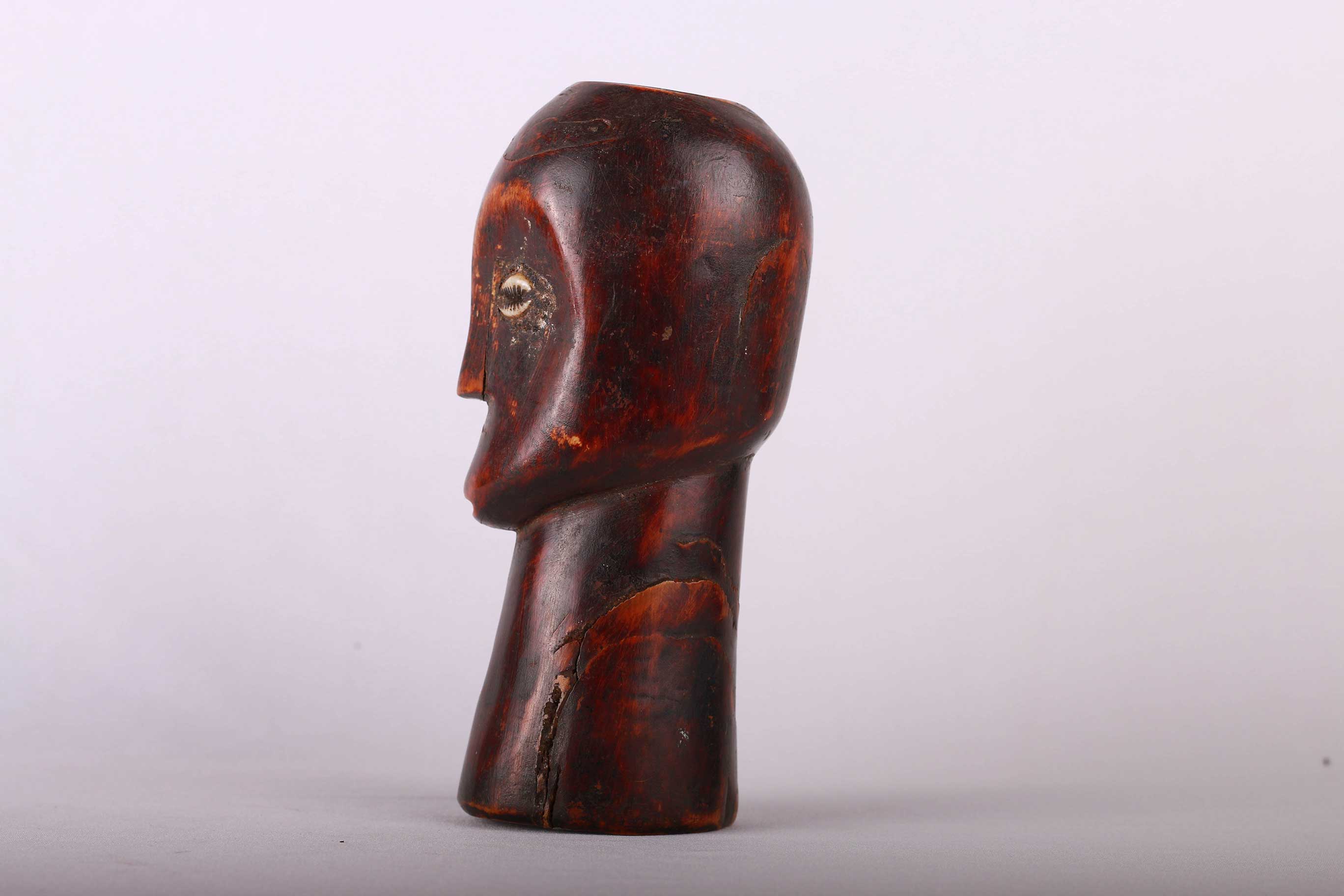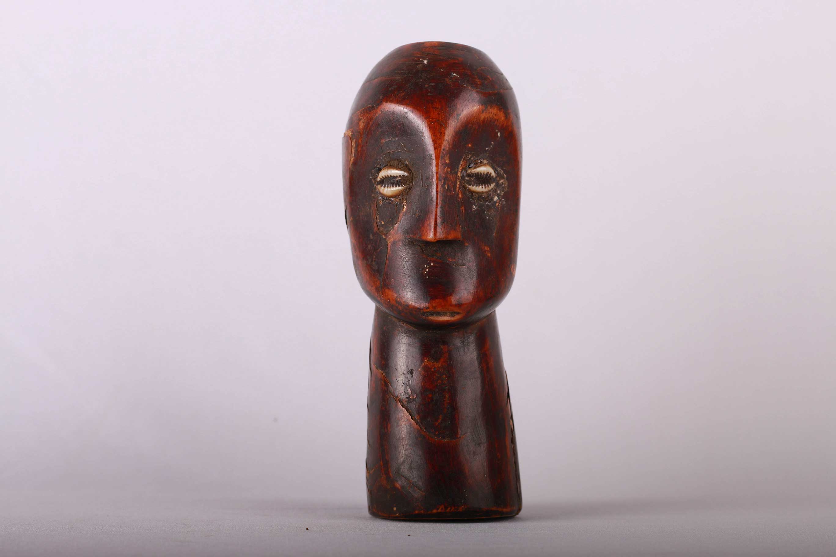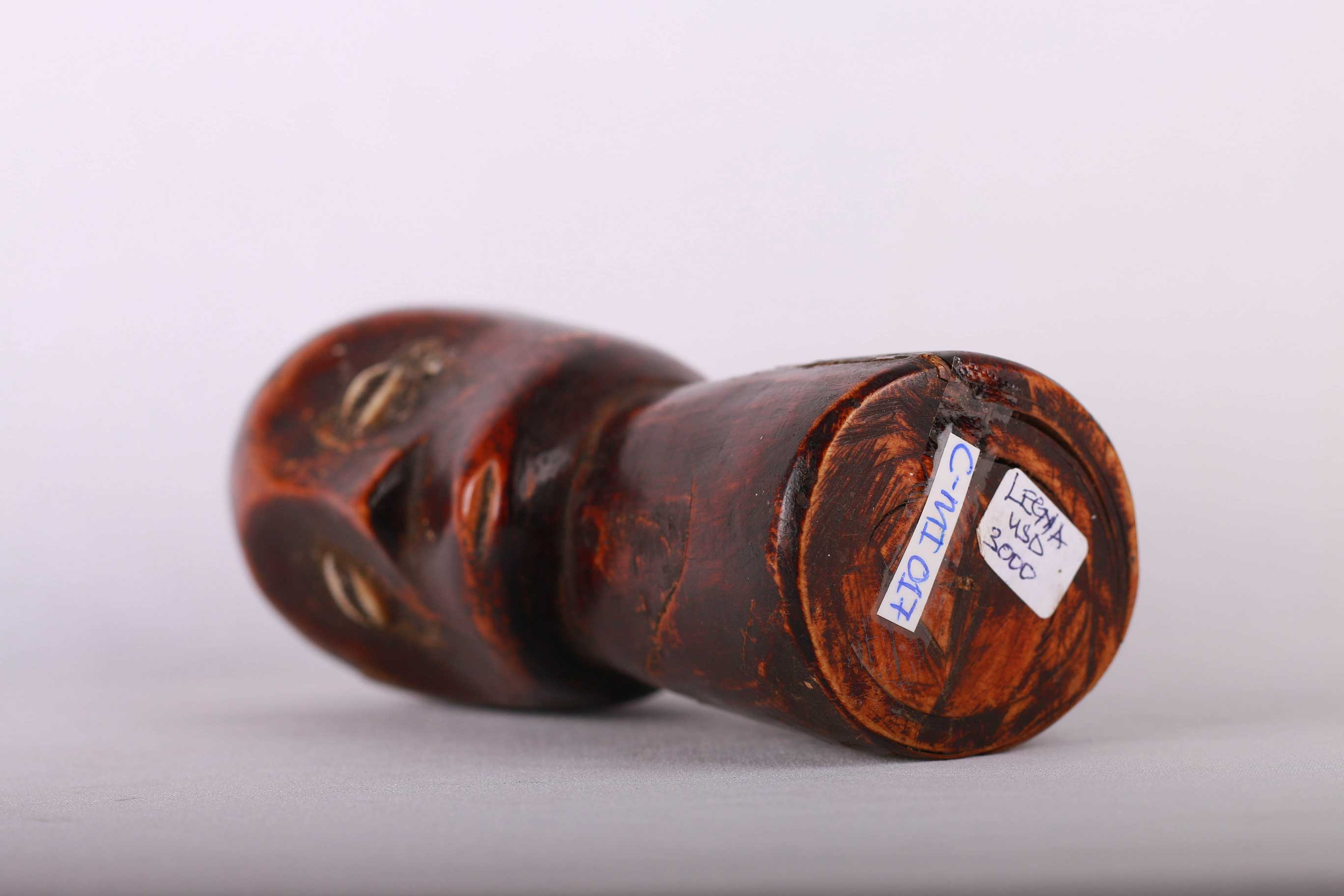 This is a Lega trunk head and such statues were revered to be one of the most important object types in Lega art. Sculptures of this type were both owned by the highest-ranking bwami or communally entrusted to an individual of lesser rank. Very little information regarding the use of trunk heads is known but was most likely the central figure around which other sculptures were displayed in bwami rituals. The following sculpture is undoubtedly a field-collected item and bares a consistent patina and shows signs of age.