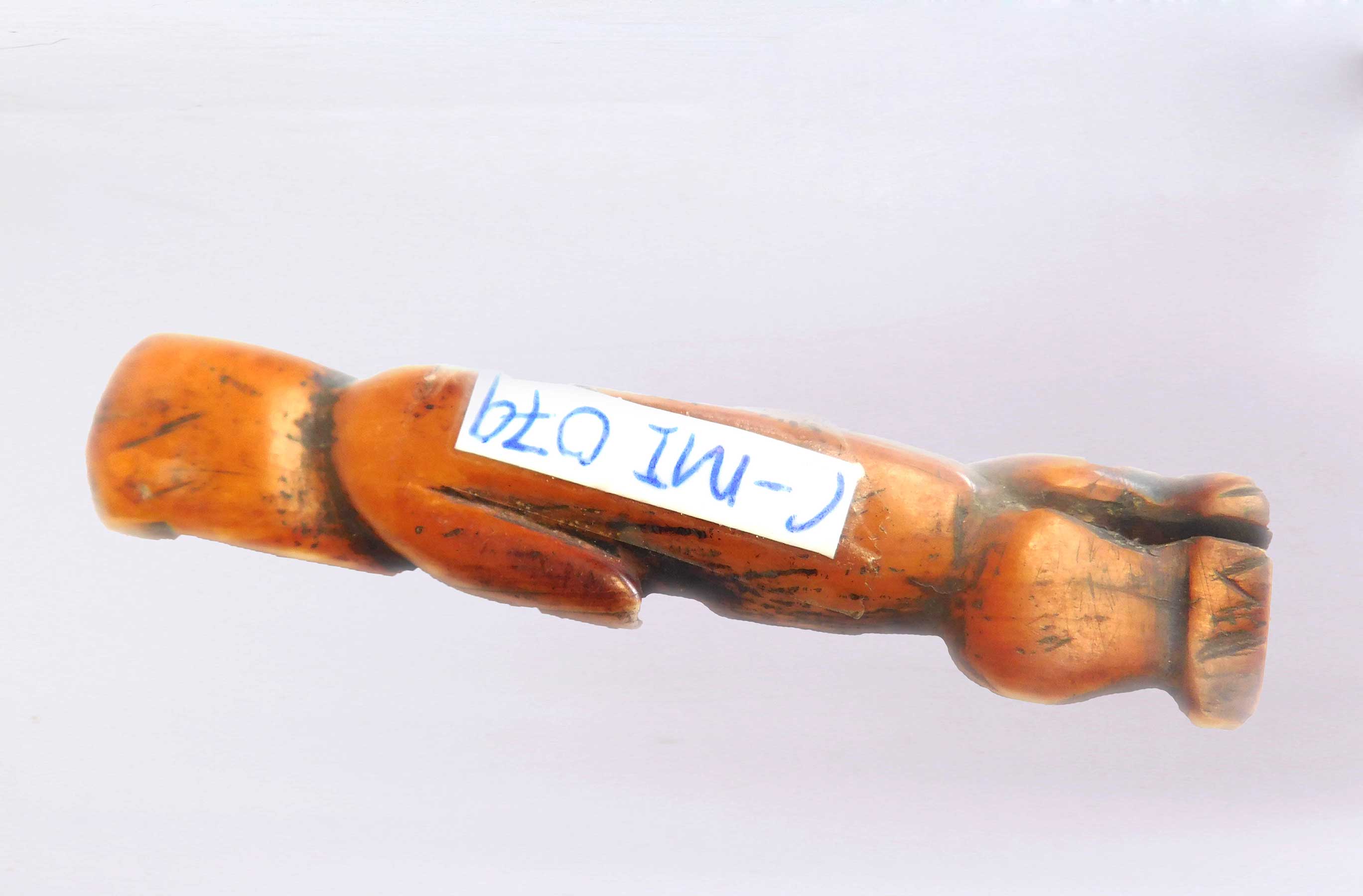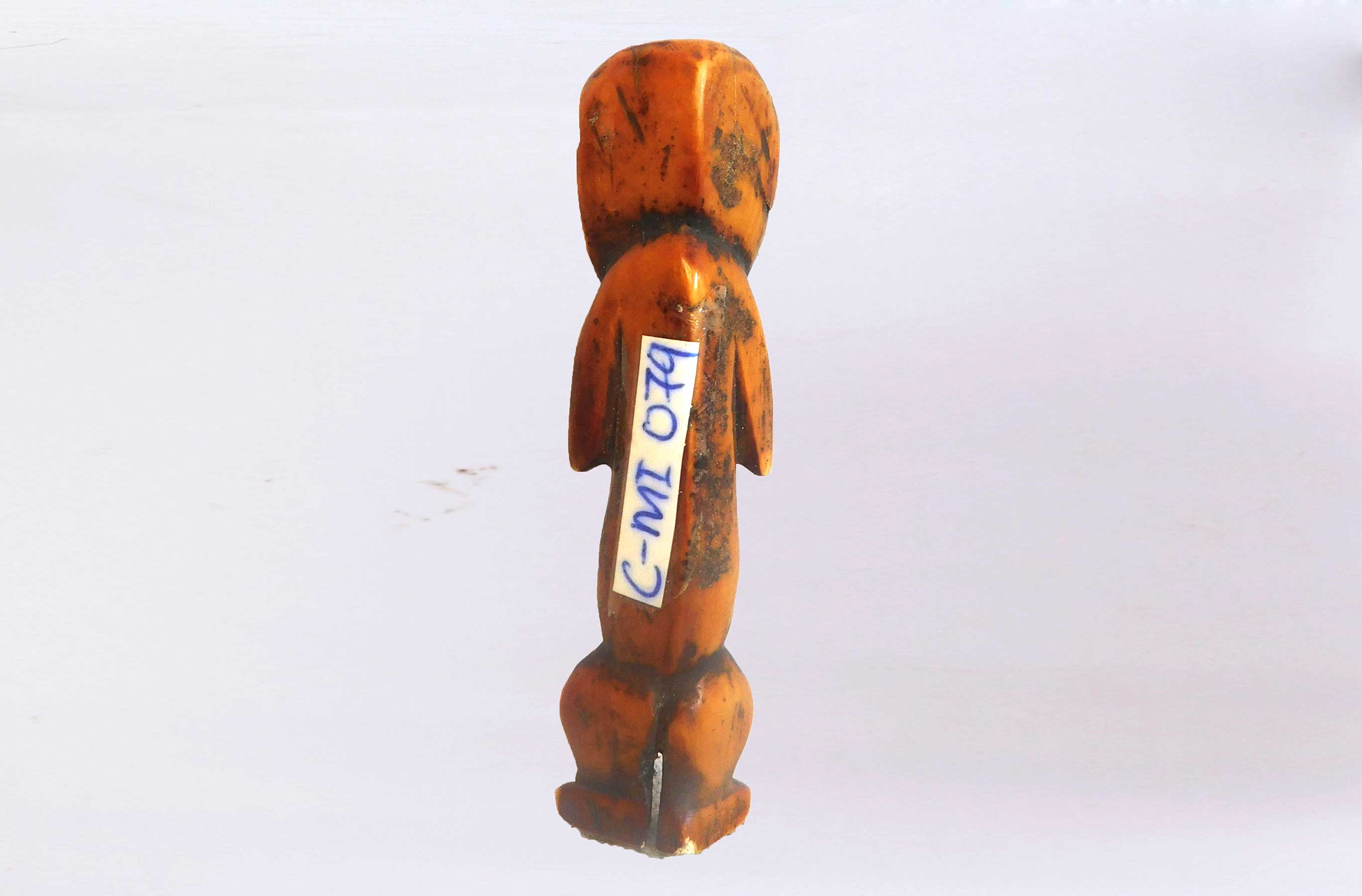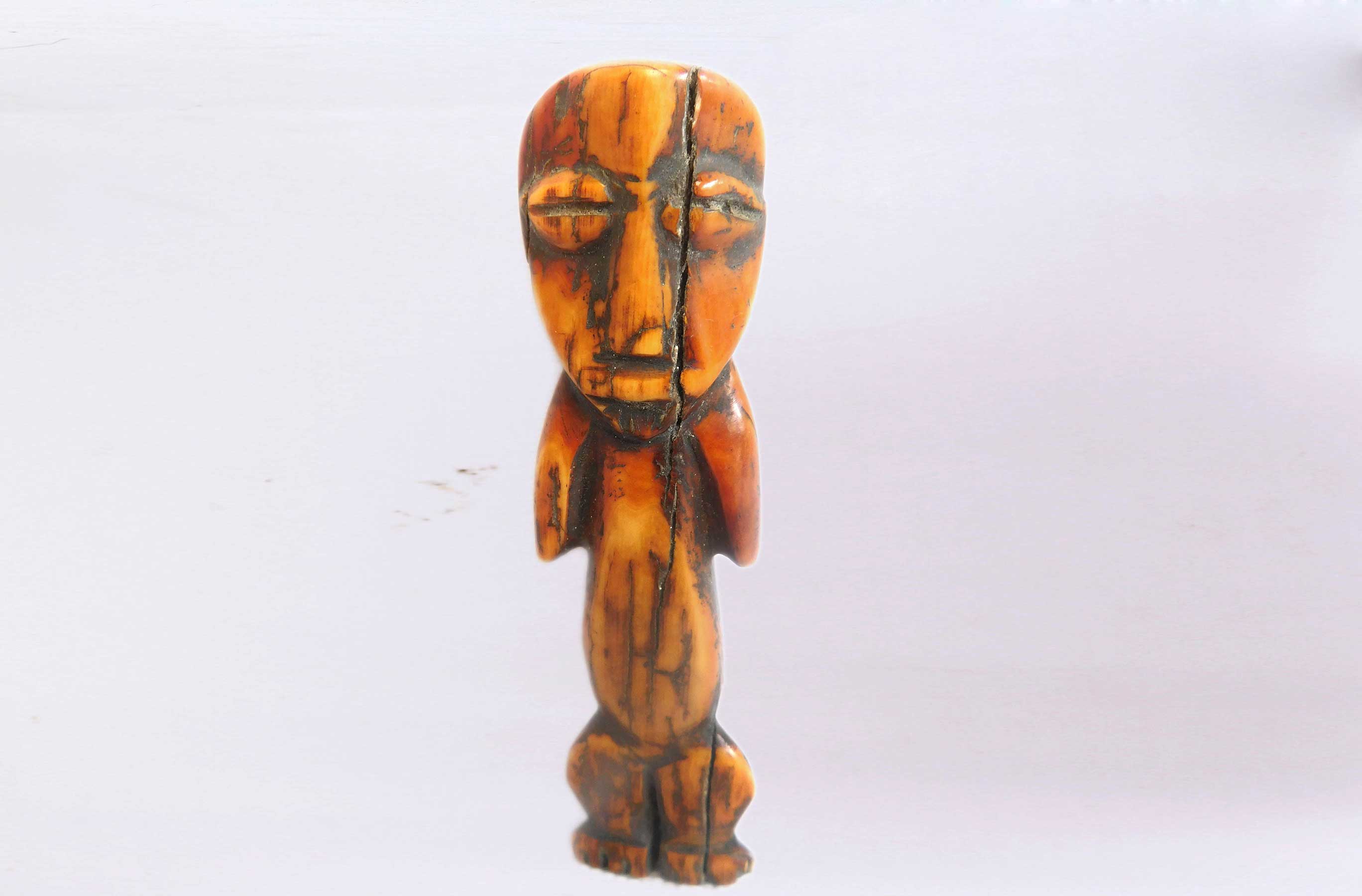 This is an old ivory carving locally known as “kalimbangoma”, it originated from the Lega tribe an ethnic group found in the Democratic Republic of Congo. The Lega tribe art is created for primarily their semisecret associations of men and women, such as the Bwami society of the Lega peoples.