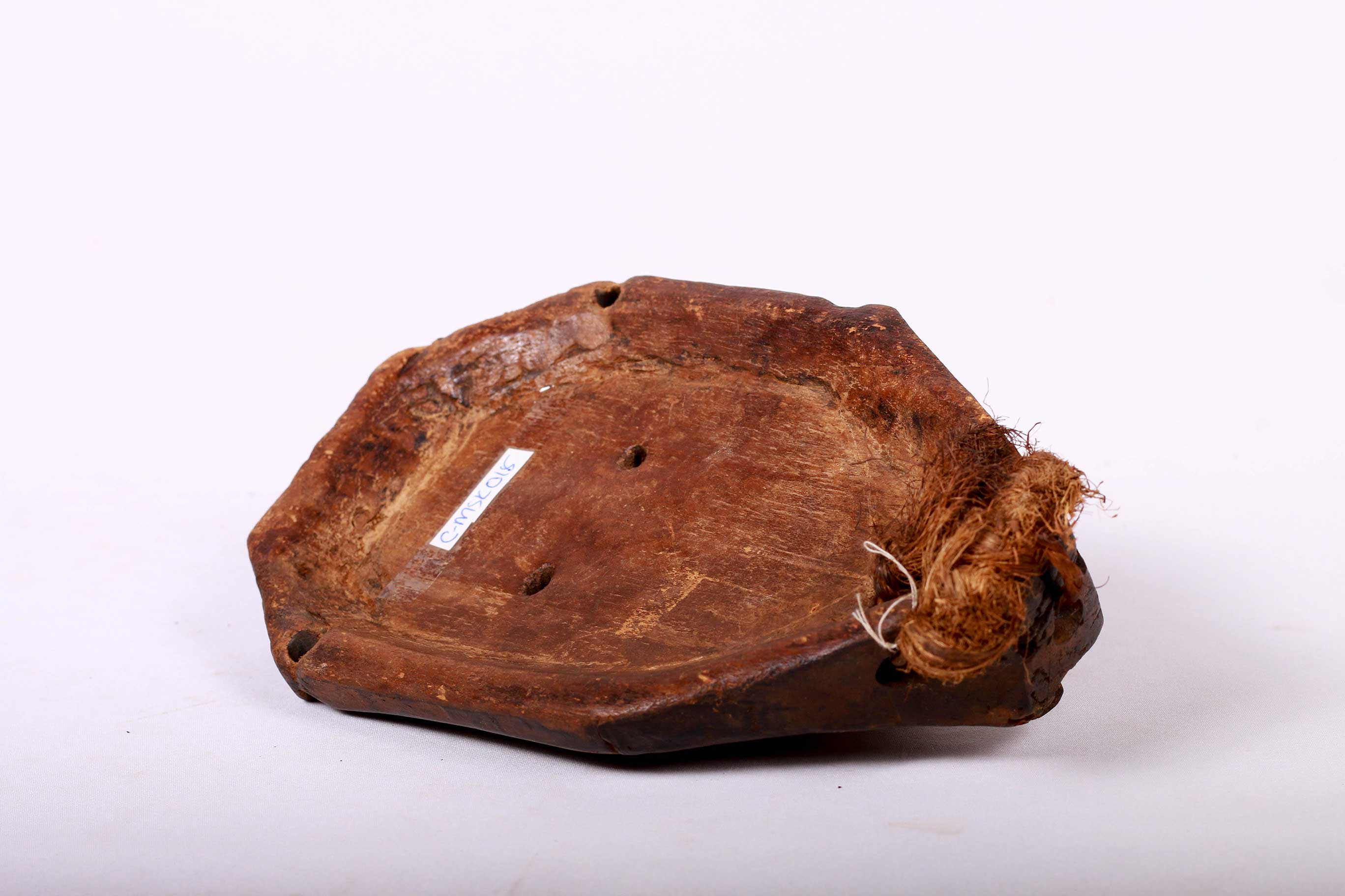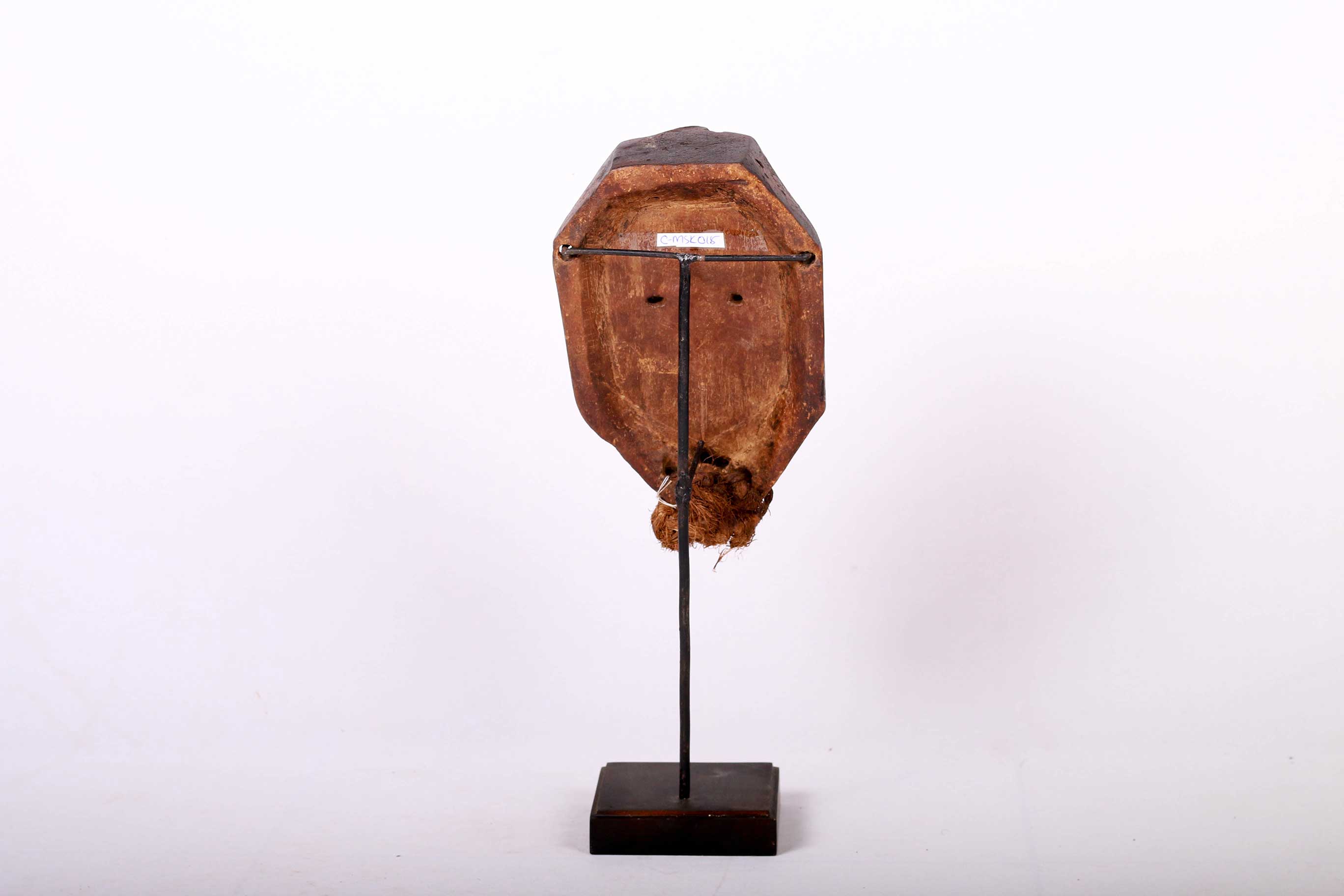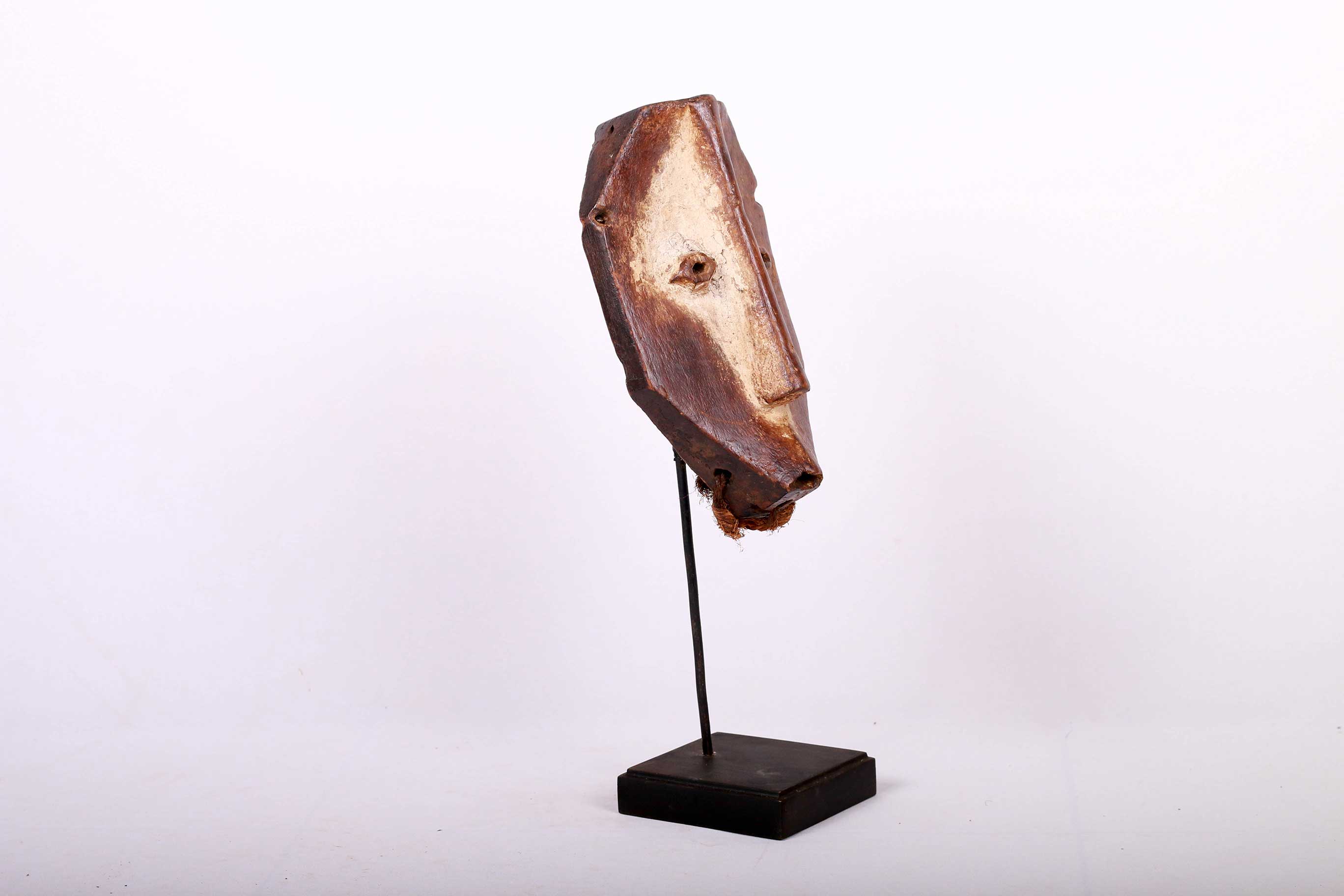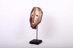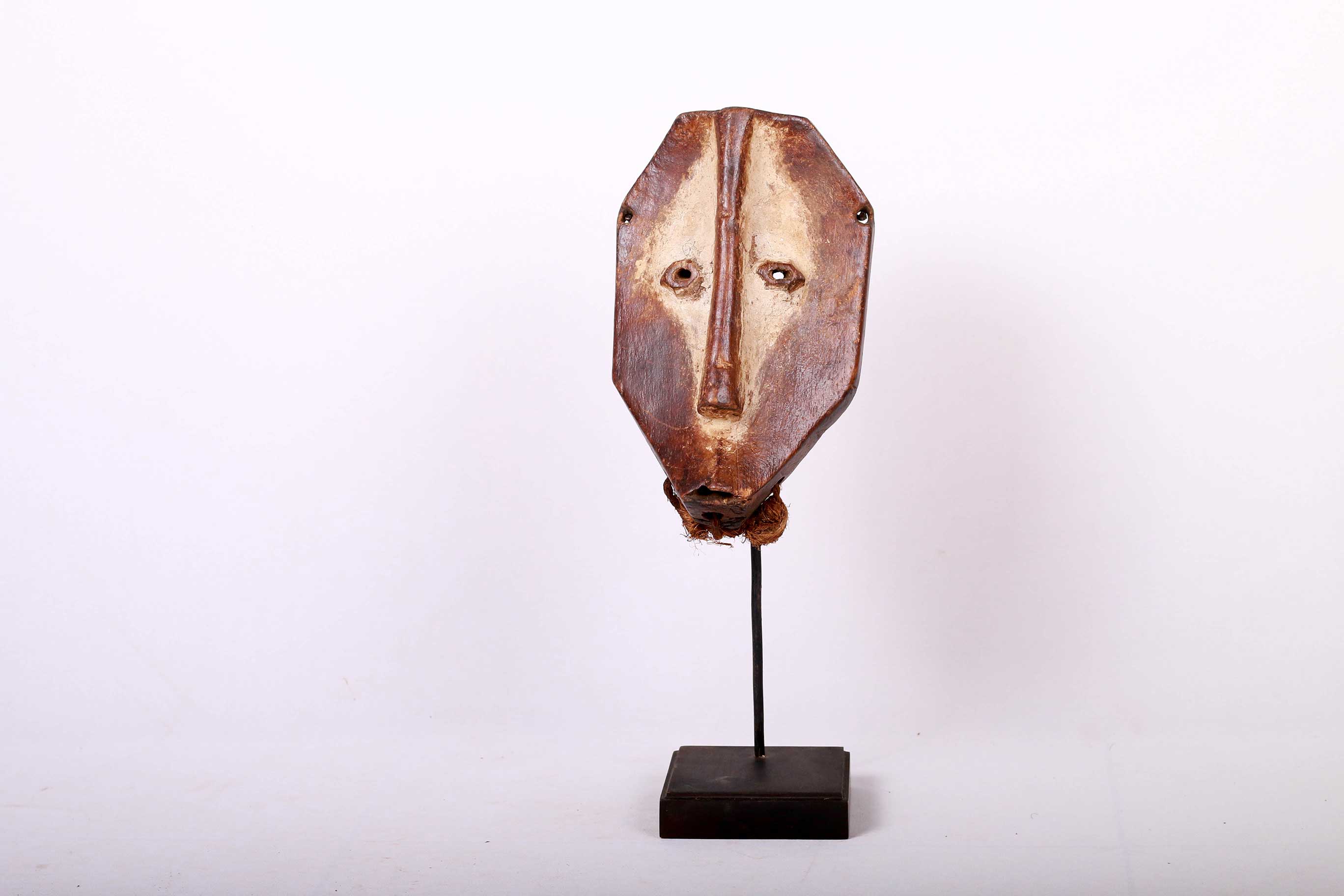 This is an old small Lega passport mask from the Lega tribe habiting in the Democratic Republic of Congo. Lega masks refer to ancestors and are passed from one generation of initiates to the next as symbols of continuity. Lega masks were used for the instruction and initiation ceremonies ceremony rites into the different progressive levels of Bwami society, the association that Lega men rise through with lifelong deeds and often learning up the hierarchy. The following mask is made from light wood and has a brown patina, it shows good signs of age and usage.