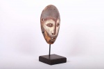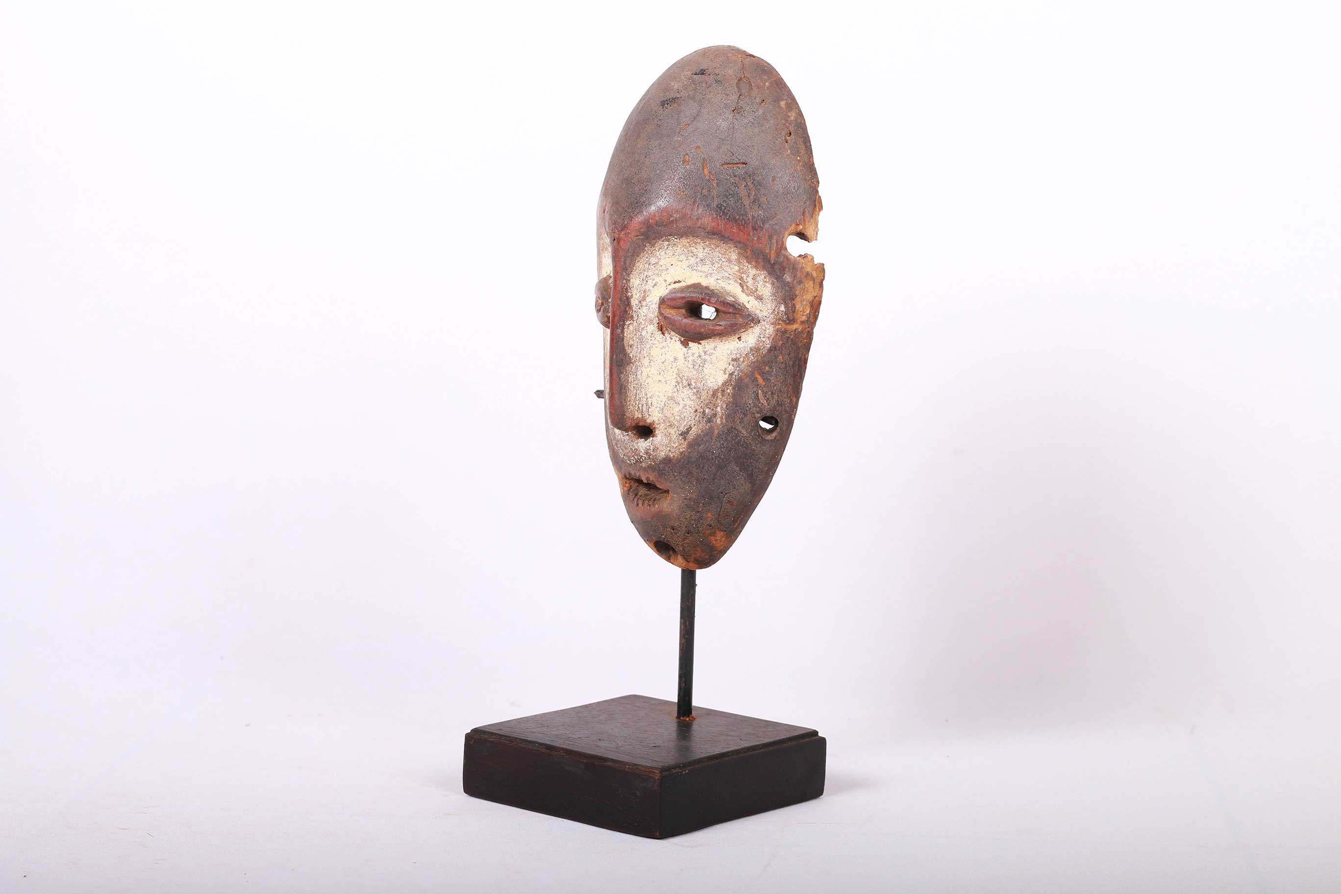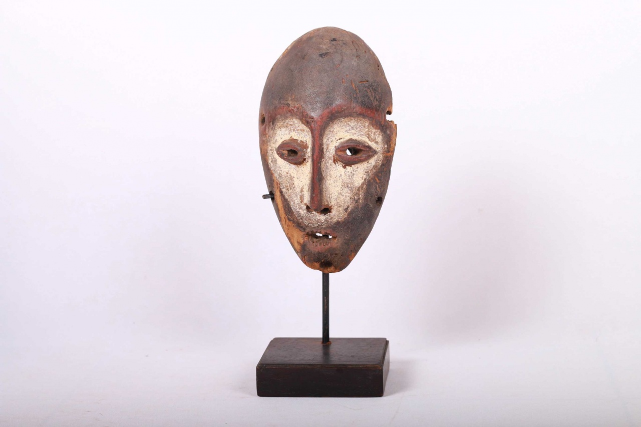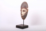 The Lega is an ethnic group found in the Democratic Republic of Congo. The Lega tribe art is created for primarily their semisecret associations of men and women, such as the Bwami society of the Lega peoples. The teachings of Bwami are a cornerstone of all aspects of life, guiding the moral development of the individual and governing relations with others. Bwami doctrine is represented by wood and ivory masks, heads, and small figures, all of which play a vital role during initiation into the society’s highest grades. Lega masks refer to ancestors and are passed from one generation of initiates to the next as symbols of continuity. Lega masks were used for the instruction and initiation ceremonies ceremony rites into the different progressive levels of Bwami society, the association that Lega men rise through with lifelong deeds and often learning up the hierarchy. The following mask is made from light wood and has a dark patina, it shows good signs of age and usage.