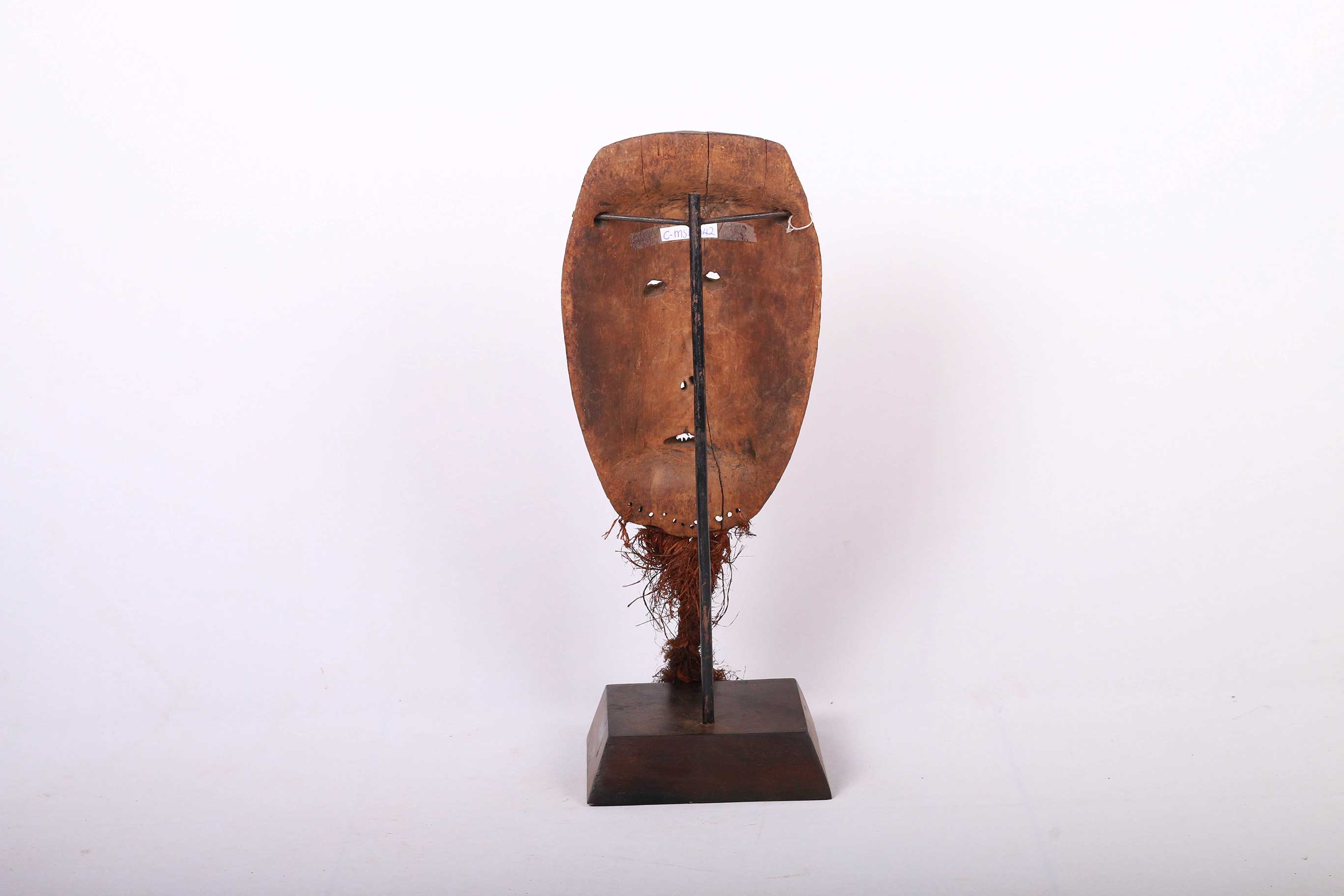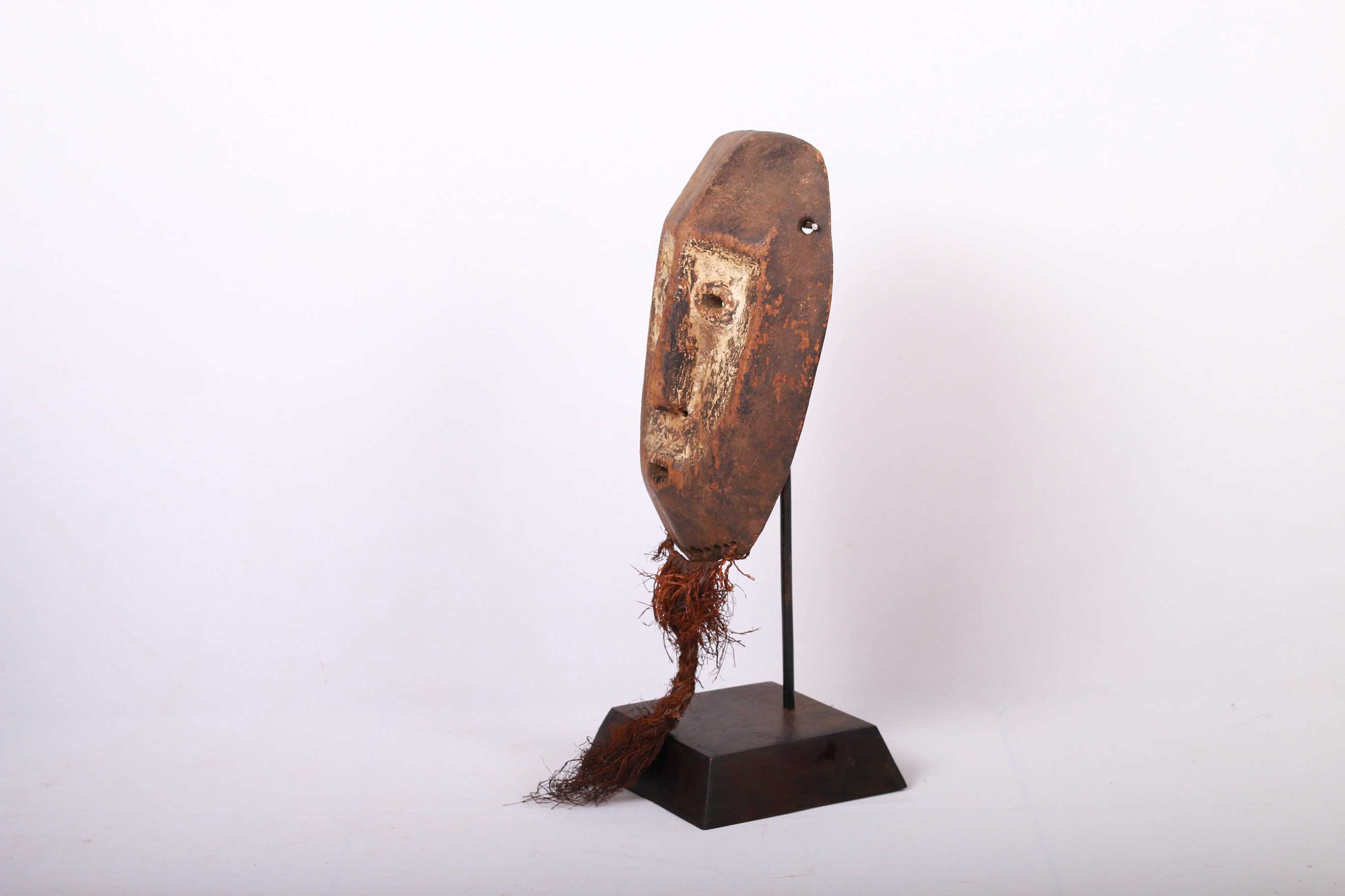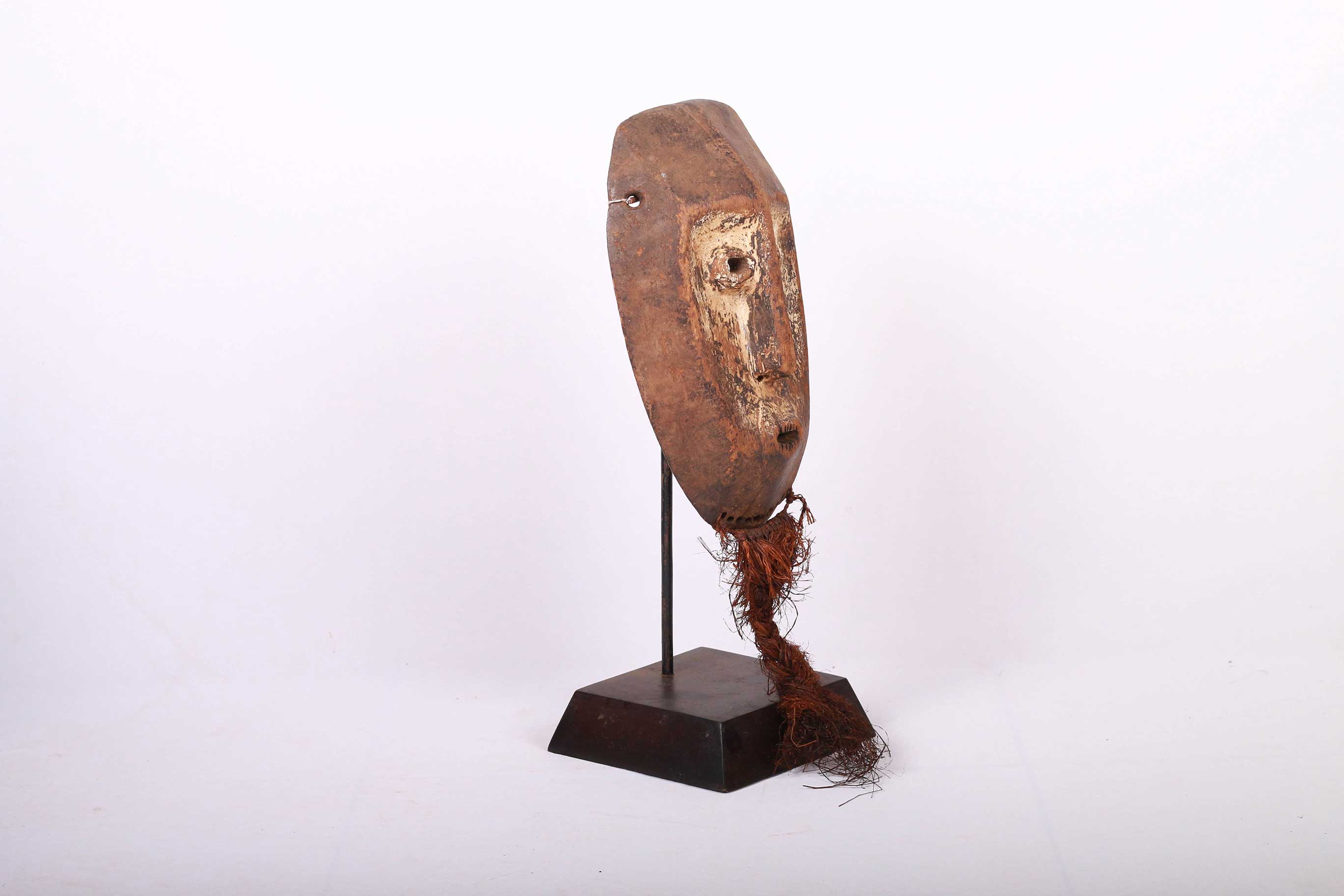 A carefully carved shallow faced mask from the Lega tribe habiting in the Democratic Republic of Congo. Lega masks refer to ancestors and are passed from one generation of initiates to the next as symbols of continuity. Lega masks were used for the instruction and initiation ceremonies ceremony rites into the different progressive levels of Bwami society, the association that Lega men rise through with lifelong deeds and often learning up the hierarchy. The following mask has a light wood, khaki patina and shows good age and usage.