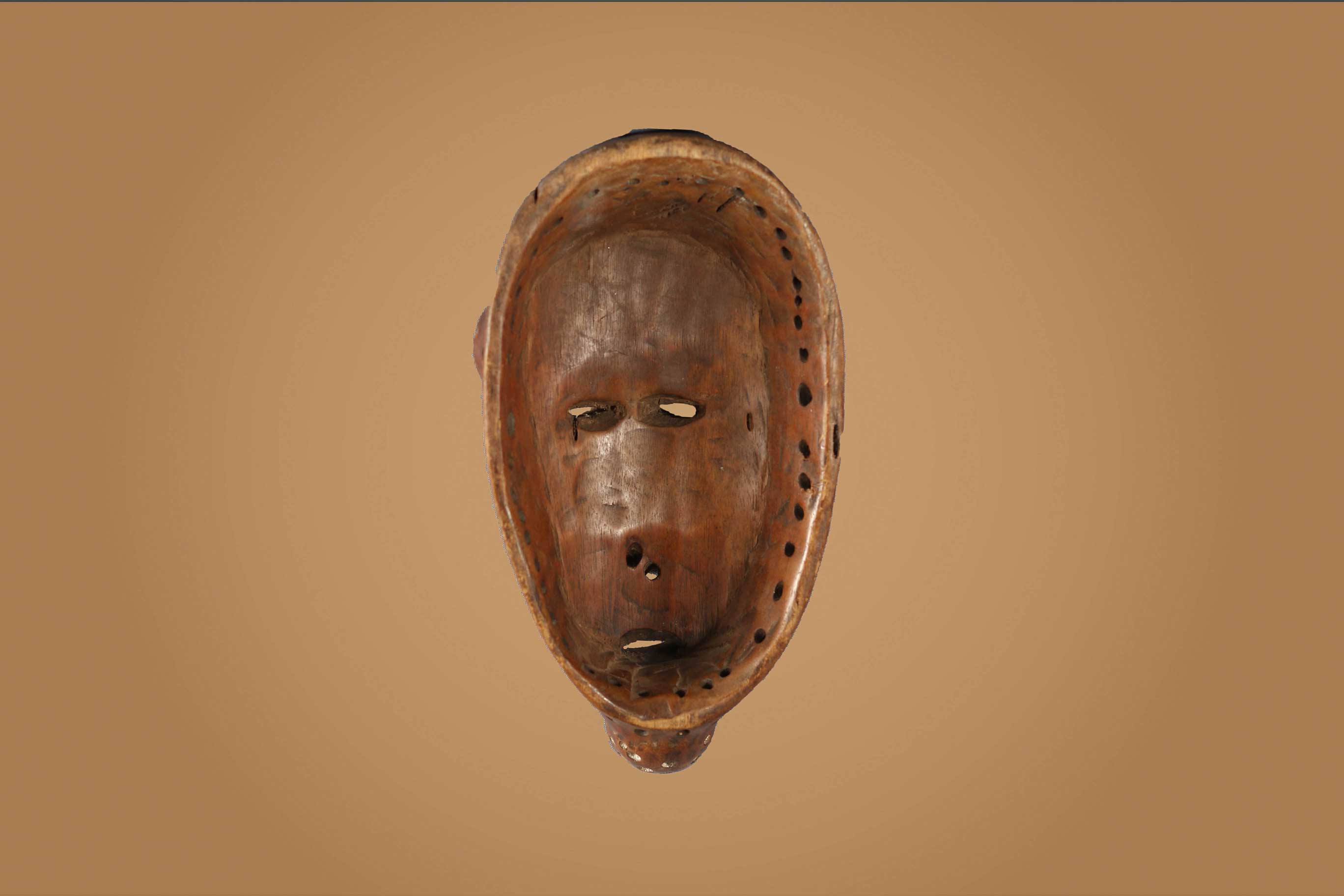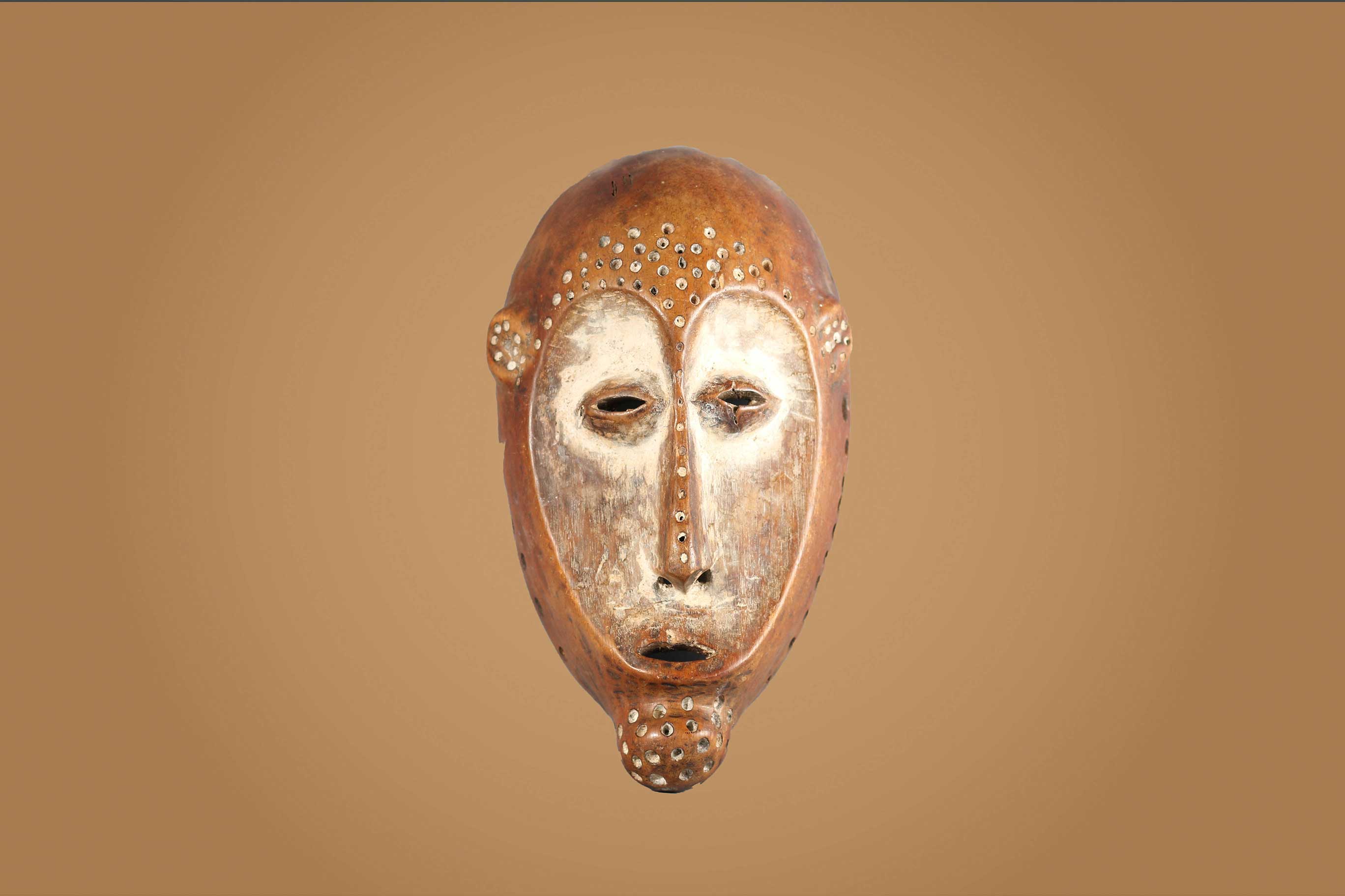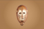 An interesting old mask from the Lega tribe habiting in the Democratic Republic of Congo. Lega masks refer to ancestors and are passed from one generation of initiates to the next as symbols of continuity. Lega masks were used for the instruction and initiation ceremonies ceremony rites into the different progressive levels of Bwami society, the association that Lega men rise through with lifelong deeds and often learning up the hierarchy. This mask is beautifully carved from light wood and has a brown patina. It shows good signs of age and usage.