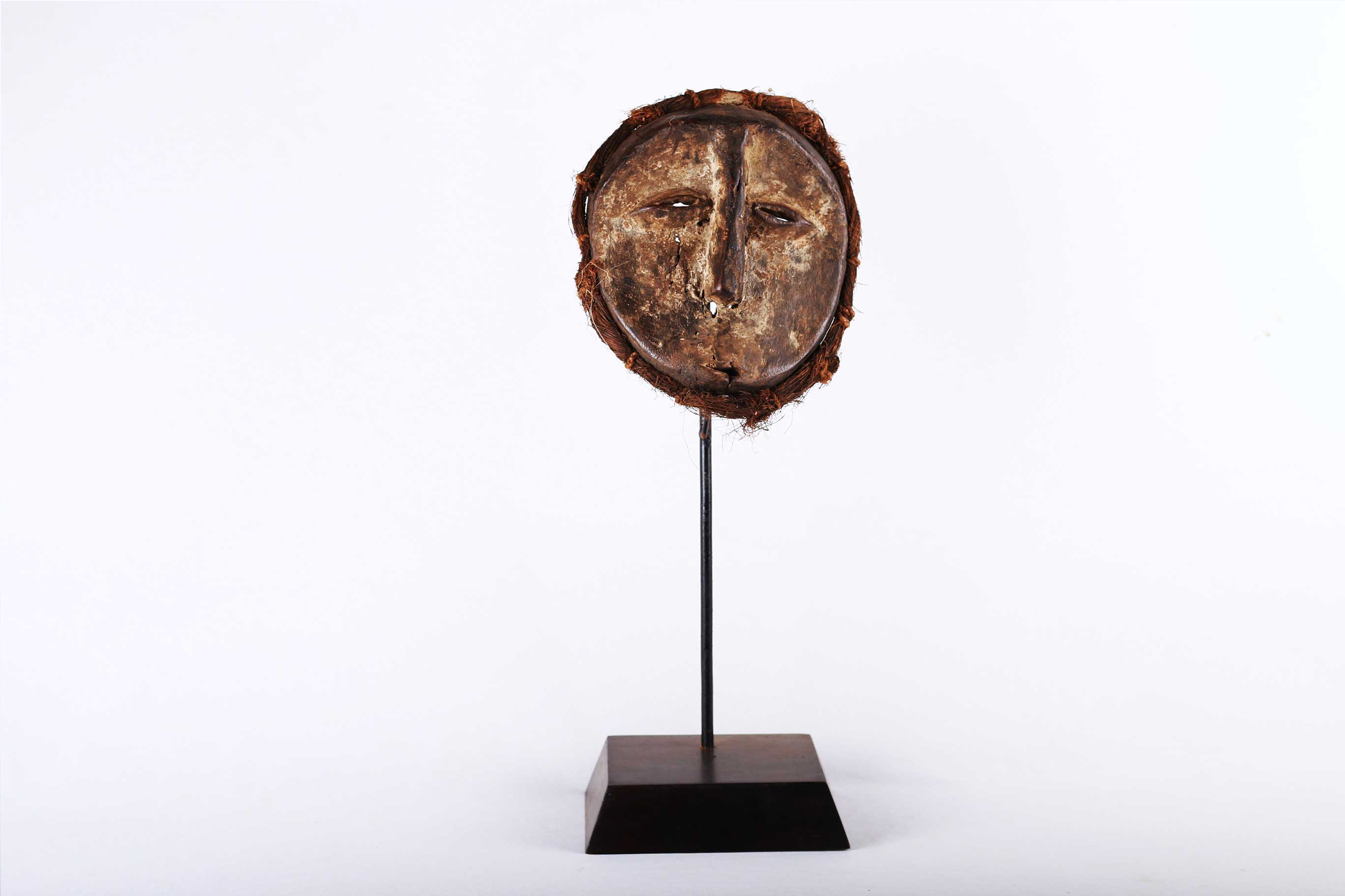 The Lega is an ethnic group found in the Democratic Republic of Congo. The Lega tribe art is created for primarily their semisecret associations of men and women, such as the Bwami society of the Lega peoples. The teachings of Bwami are a cornerstone of all aspects of life, guiding the moral development of the individual and governing relations with others. Bwami doctrine is represented by wood and ivory masks, heads, and small figures, all of which play a vital role during initiation into the society’s highest grades. Lega masks refer to ancestors and are passed from one generation of initiates to the next as symbols of continuity. Lega masks were used for the instruction and initiation ceremonies ceremony rites into the different progressive levels of Bwami society, the association that Lega men rise through with lifelong deeds and often learning up the hierarchy. The following mask has a brown patina and shows good age and usage.