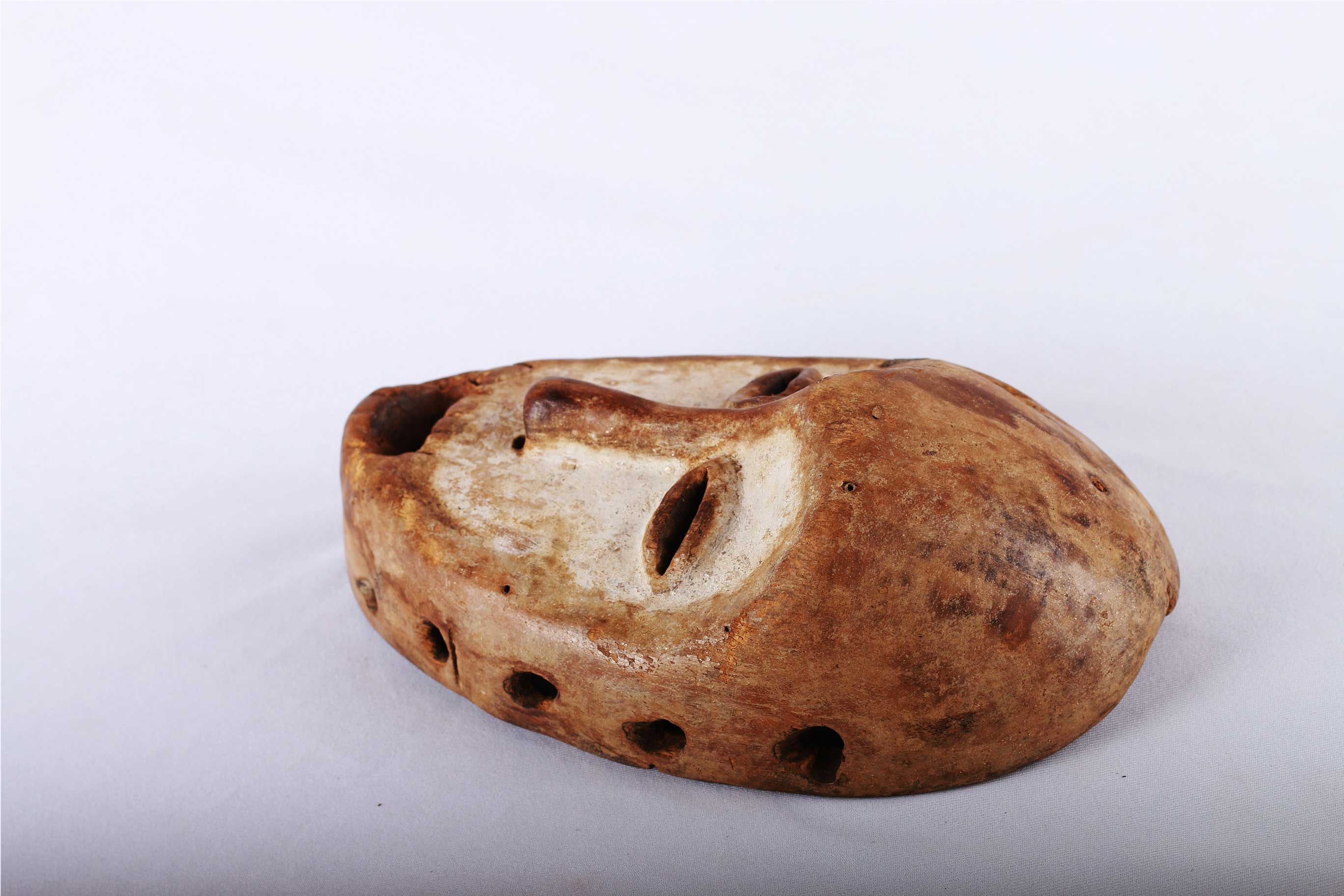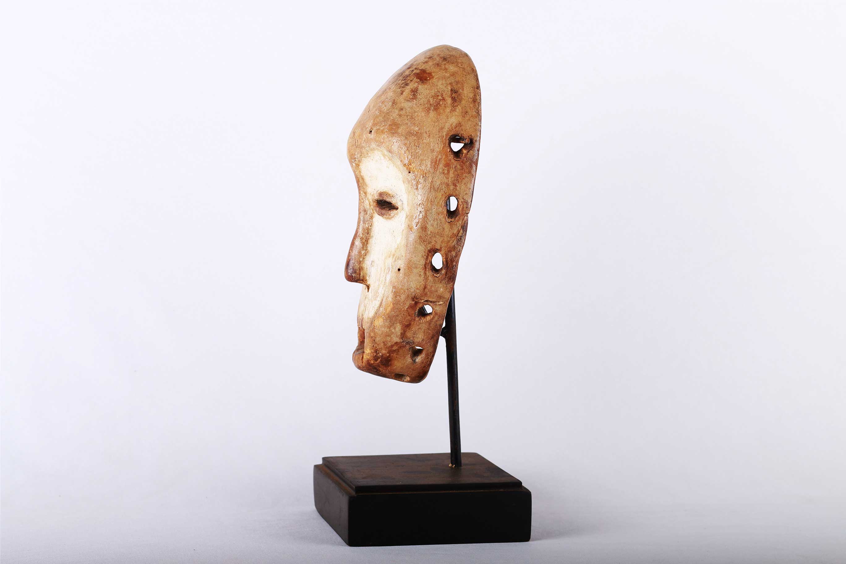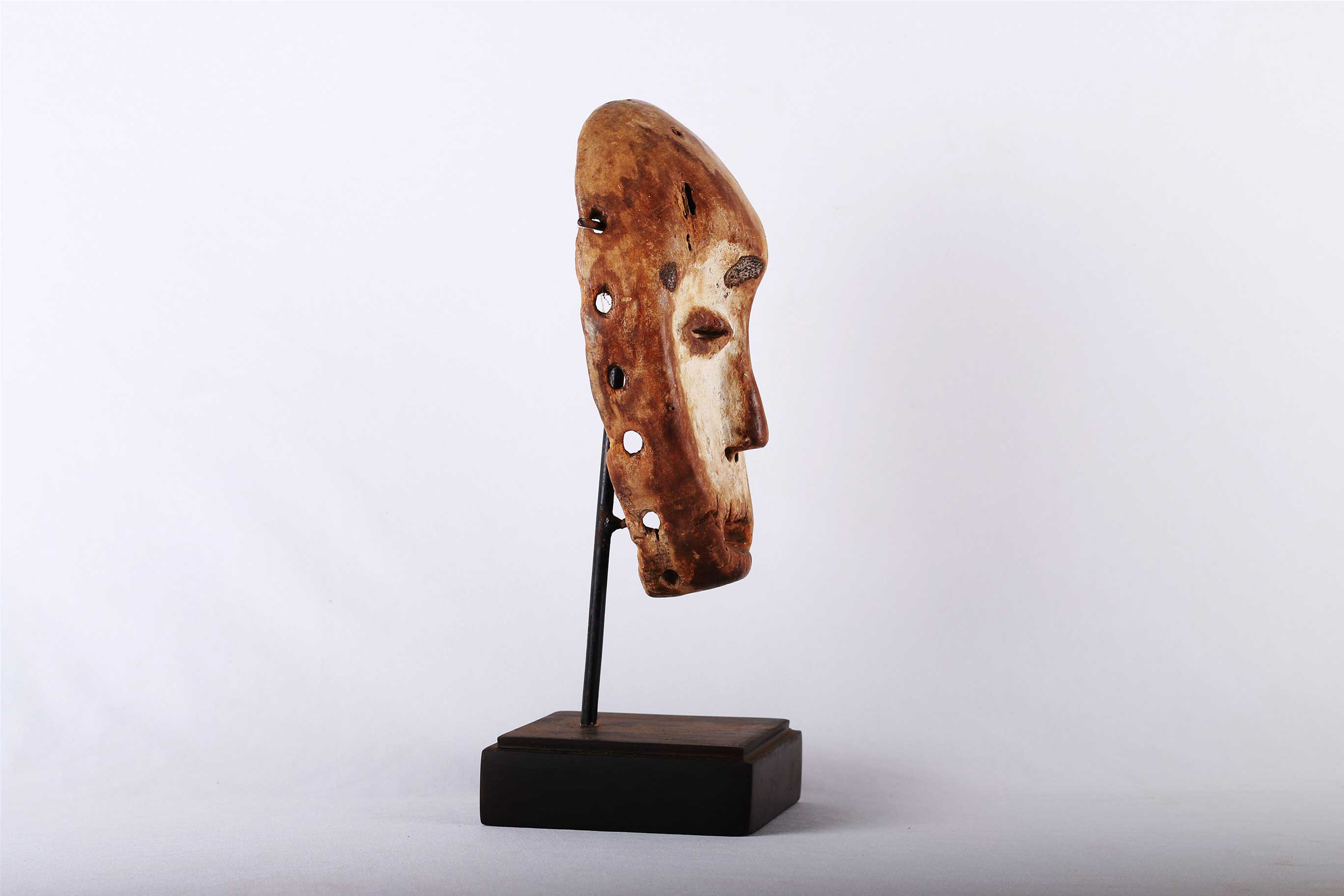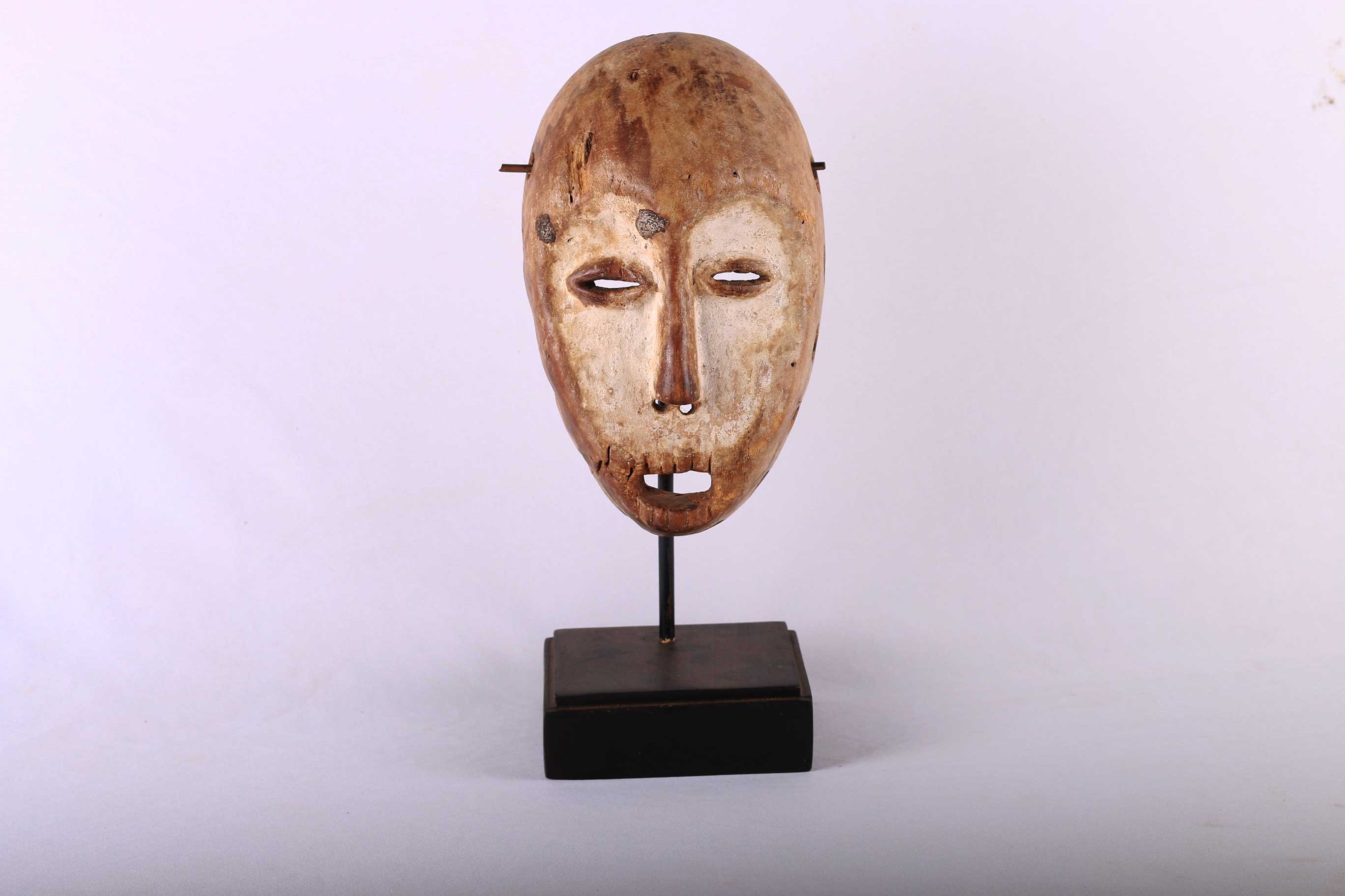 The Lega is an ethnic group found in the Democratic Republic of Congo. The Lega tribe art is created for primarily their semisecret associations of men and women, such as the Bwami society of the Lega peoples. The teachings of Bwami are a cornerstone of all aspects of life, guiding the moral development of the individual and governing relations with others. Bwami doctrine is represented by wood and ivory masks, heads, and small figures, all of which play a vital role during initiation into the society’s highest grades. Lega masks refer to ancestors and are passed from one generation of initiates to the next as symbols of continuity. Lega masks were used for the instruction and initiation ceremonies ceremony rites into the different progressive levels of Bwami society, the association that Lega men rise through with lifelong deeds and often learning up the hierarchy. The following mask has a light wood khaki patina and shows good age and usage.
