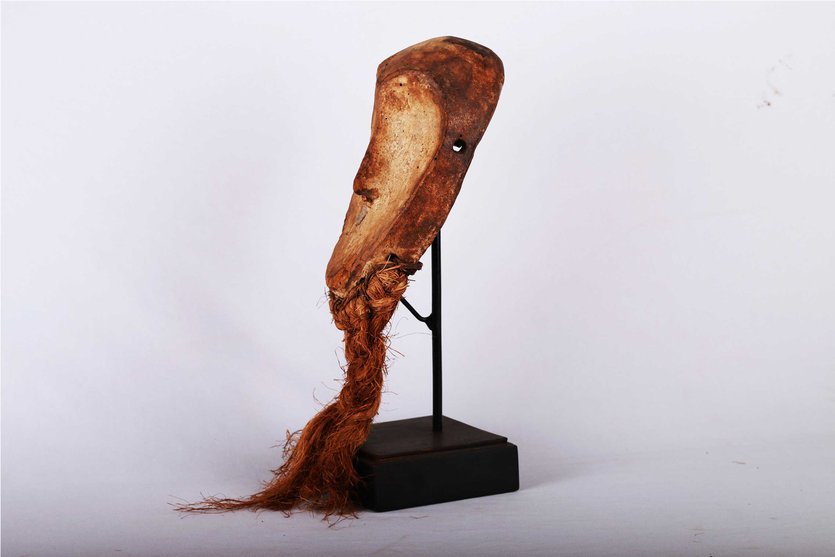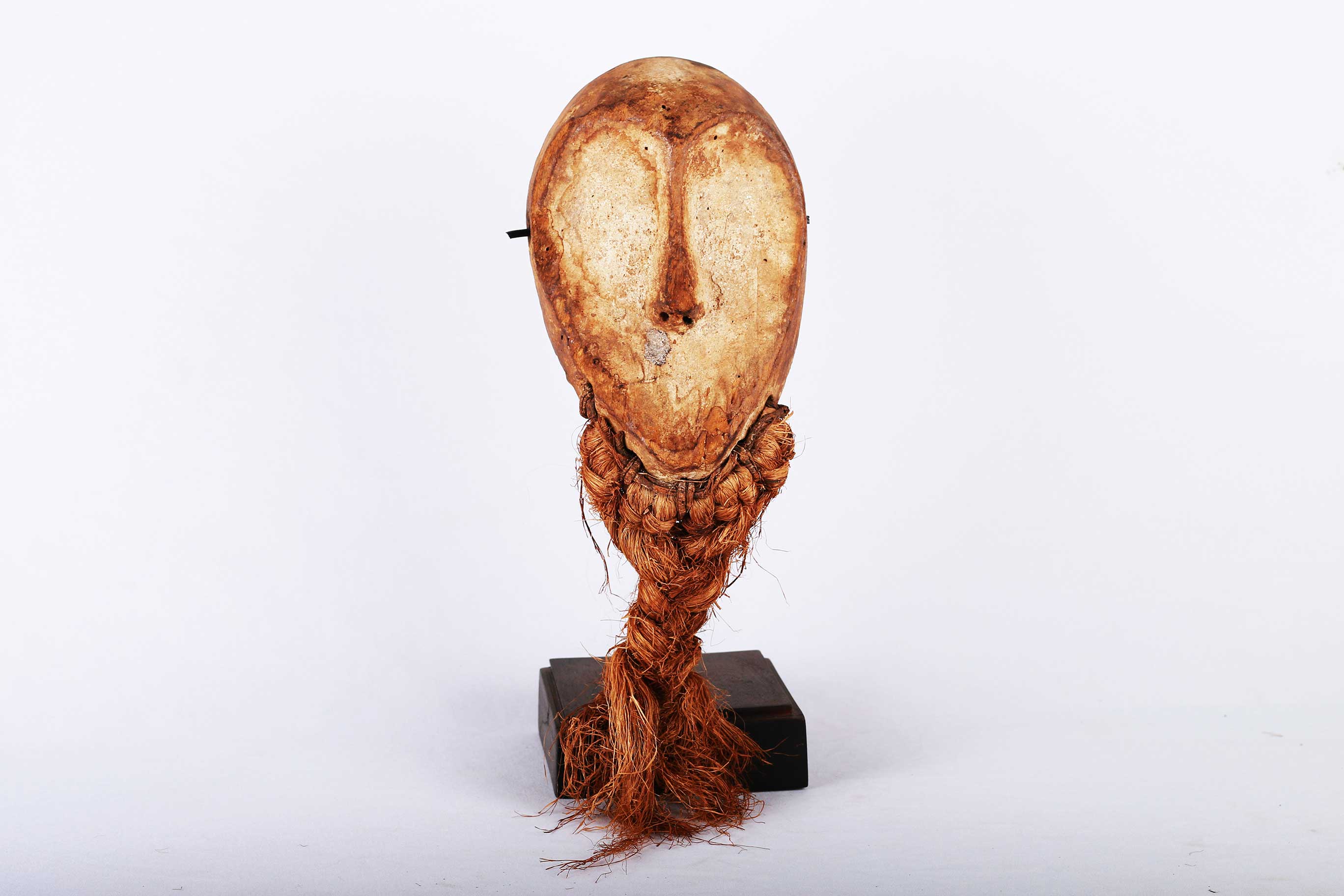 The Lega is an ethnic group found in the Democratic Republic of Congo. The Lega tribe art is created for primarily their semisecret associations of men and women, such as the Bwami society of the Lega peoples. The teachings of Bwami are a cornerstone of all aspects of life, guiding the moral development of the individual and governing relations with others. Bwami doctrine is represented by wood and ivory masks, heads, and small figures, all of which play a vital role during initiation into the society’s highest grades. Lega masks refer to ancestors and are passed from one generation of initiates to the next as symbols of continuity. Lega masks were used for the instruction and initiation ceremonies ceremony rites into the different progressive levels of Bwami society, the association that Lega men rise through with lifelong deeds and often learning up the hierarchy. Lukwakongo masks have no eyes and represent old, blind and wise high-level members of Bwami. The following mask is made from light wood with a khaki patina and shows good age and usage.