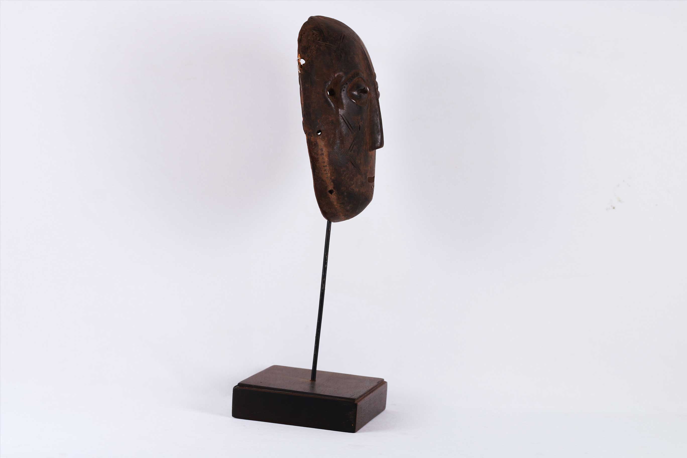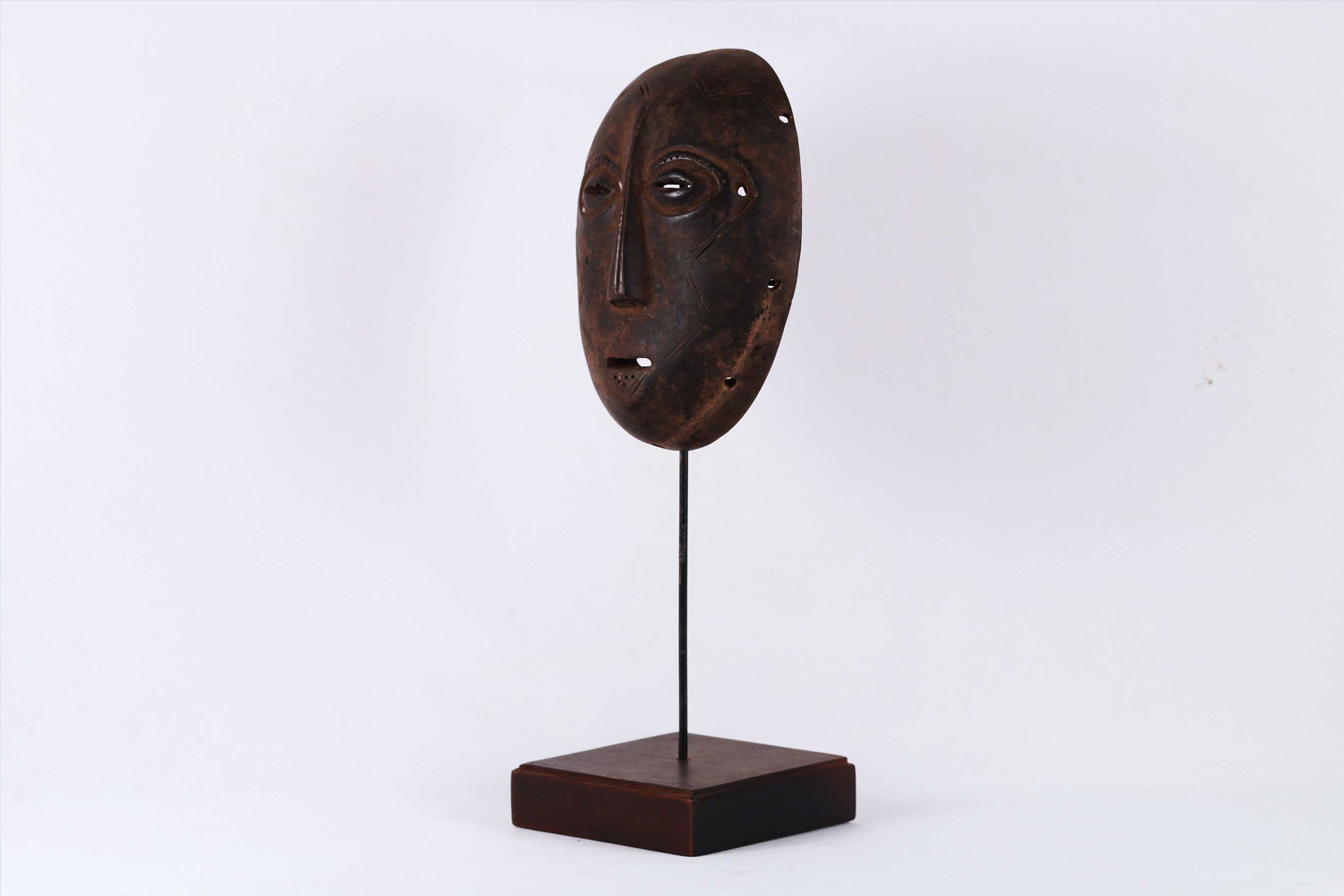 The Lega is an ethnic group found in the Democratic Republic of Congo. The Lega tribe art is created for primarily their semisecret associations of men and women, such as the Bwami society of the Lega peoples. The teachings of Bwami are a cornerstone of all aspects of life, guiding the moral development of the individual and governing relations with others. Bwami doctrine is represented by wood and ivory masks, heads, and small figures, all of which play a vital role during initiation into the society’s highest grades. Lega masks refer to ancestors and are passed from one generation of initiates to the next as symbols of continuity. Lega masks were used for the instruction and initiation ceremonies ceremony rites into the different progressive levels of Bwami society, the association that Lega men rise through with lifelong deeds and often learning up the hierarchy.