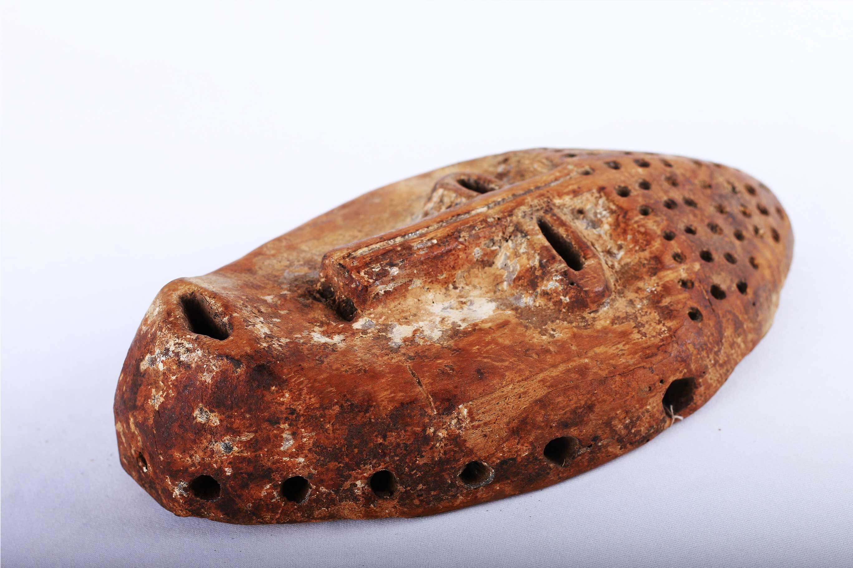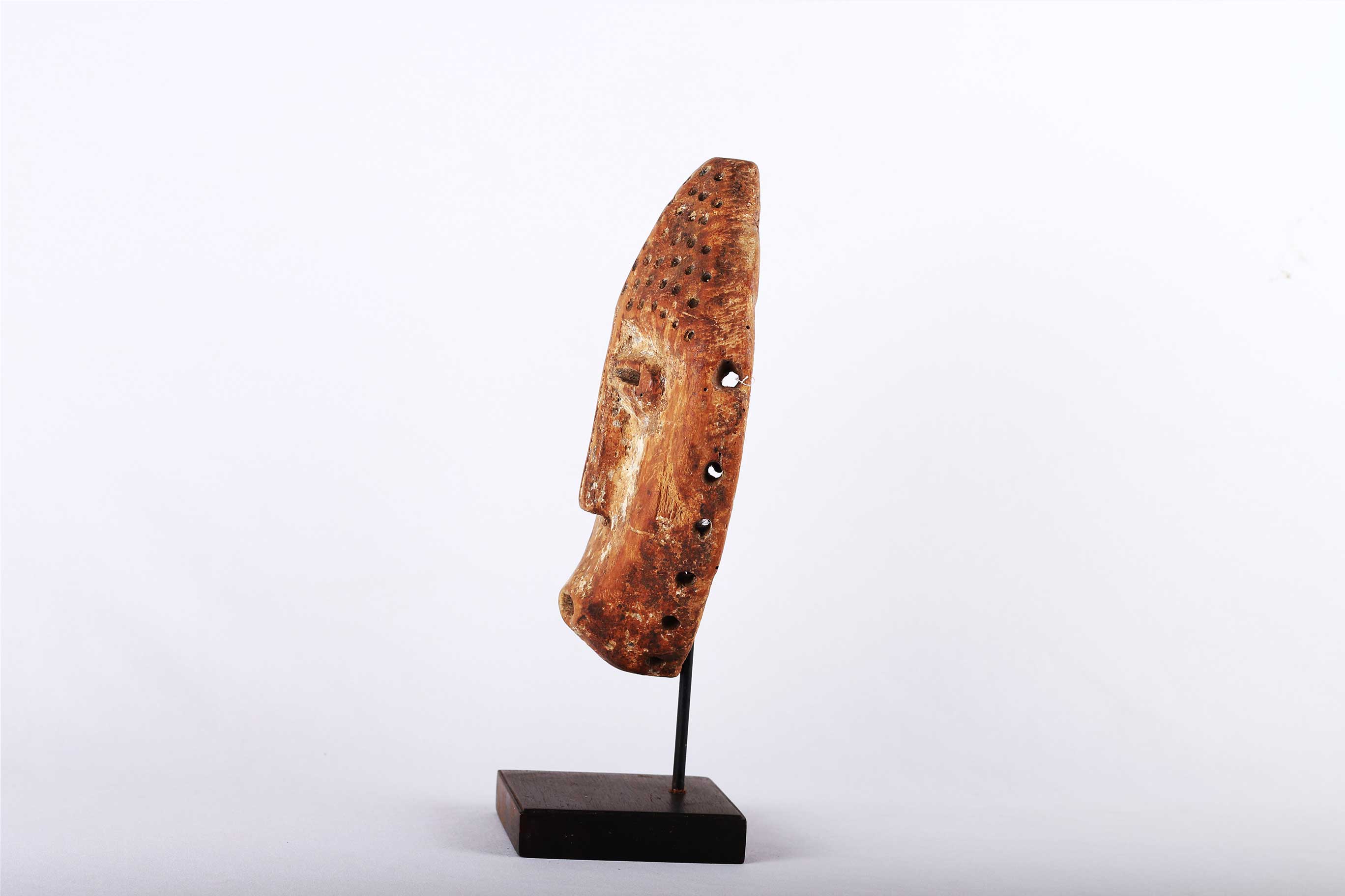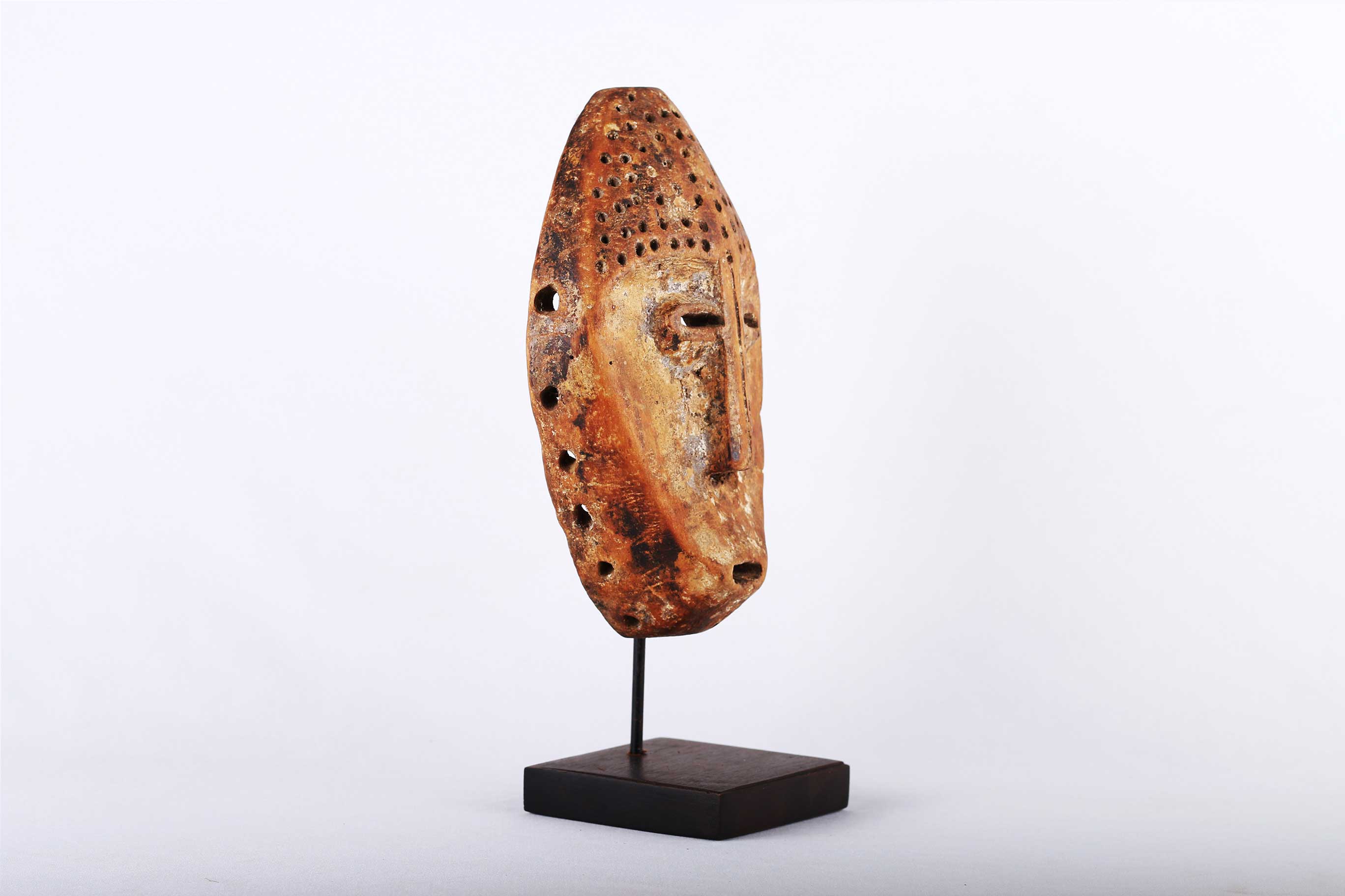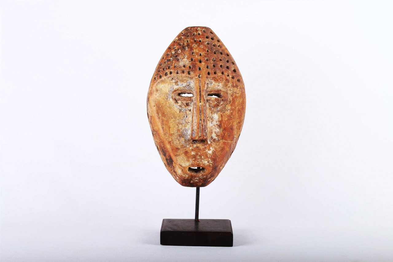 The Lega is an ethnic group found in the Democratic Republic of Congo. The Lega tribe art is created for primarily their semisecret associations of men and women, such as the Bwami society of the Lega peoples. The teachings of Bwami are a cornerstone of all aspects of life, guiding the moral development of the individual and governing relations with others. Bwami doctrine is represented by wood and ivory masks, heads, and small figures, all of which play a vital role during initiation into the society’s highest grades. Lega masks refer to ancestors and are passed from one generation of initiates to the next as symbols of continuity. Lega masks were used for the instruction and initiation ceremonies ceremony rites into the different progressive levels of Bwami society, the association that Lega men rise through with lifelong deeds and often learning up the hierarchy. The following mask is made from light wood and has a brown patina and shows good signs of age and usage.