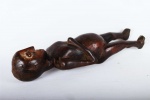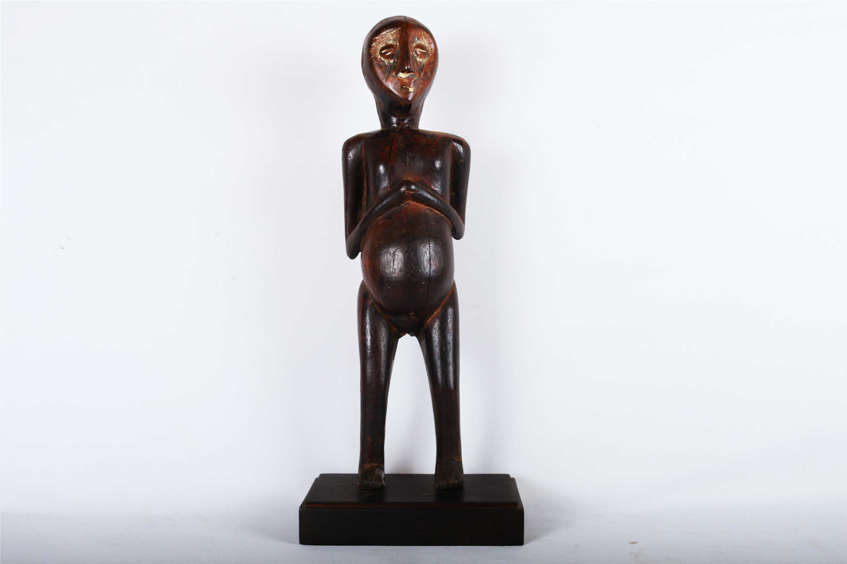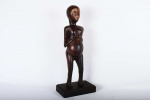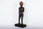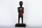 The Lega tribe is found in eastern DRC, the Lega live alongside Luba people who are their neighbours. All Lega art is used within the context of the Bwami society for the production of most Lega sculptures were individually owned by the highest-ranking society members and are the most coveted of all initiation objects. The following sculpture has a shinny brown patina and looks visibly old.
