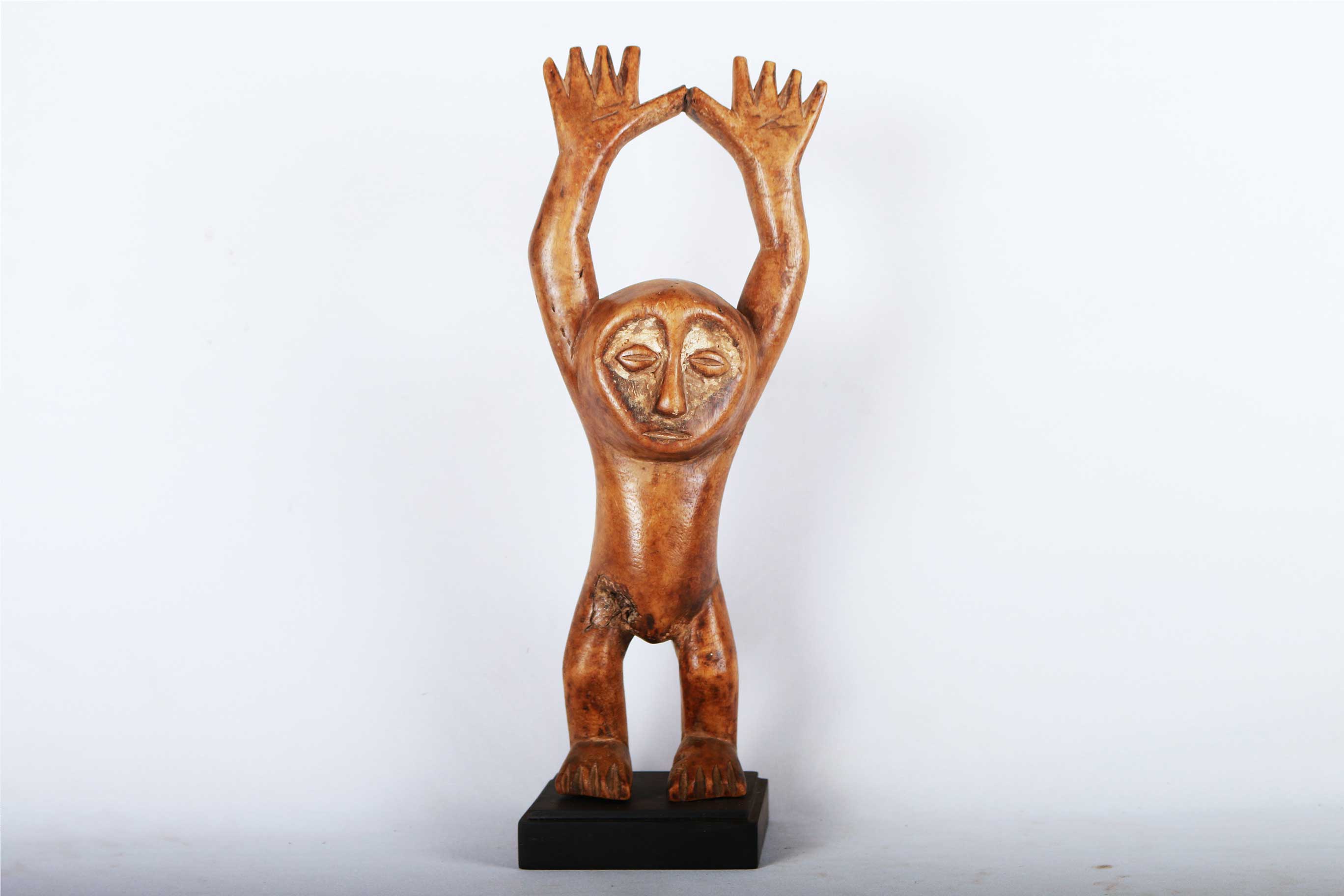 The Lega tribe is found in eastern DRC, the Lega live alongside Luba people who are their neighbours. All Lega art is used within the context of the Bwami society for the production of most Lega sculptures were individually owned by the highest-ranking society members and are the most coveted of all initiation objects. The following sculpture has a shinny brown patina and looks visibly old.