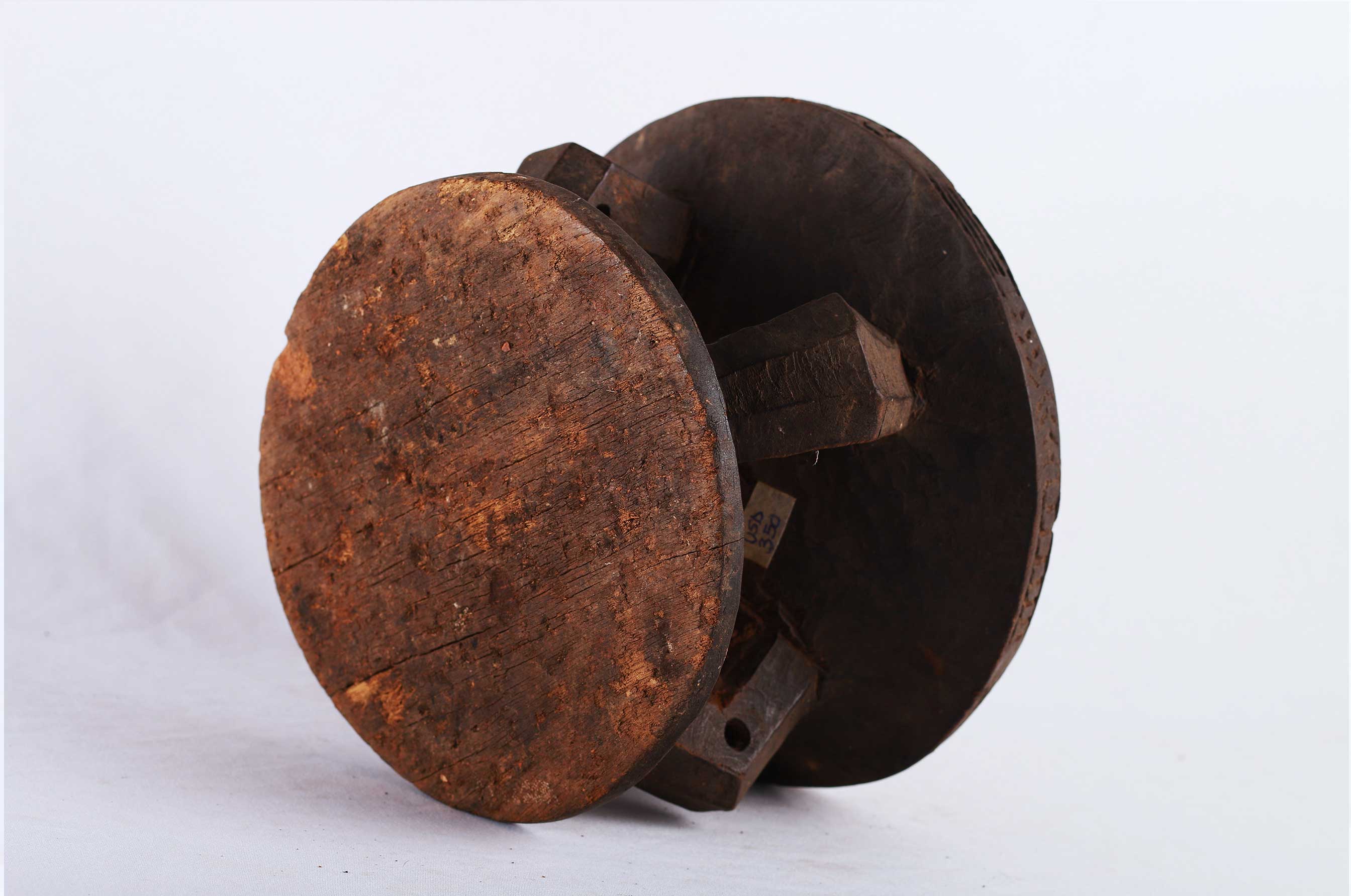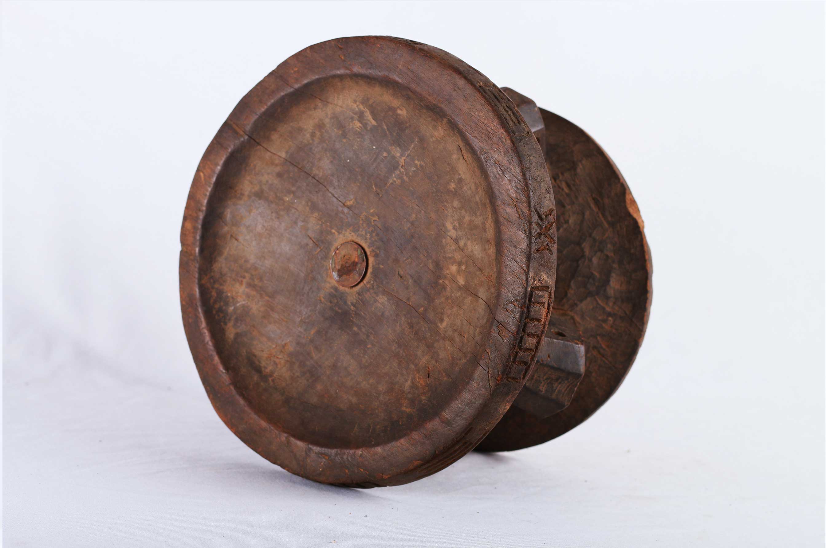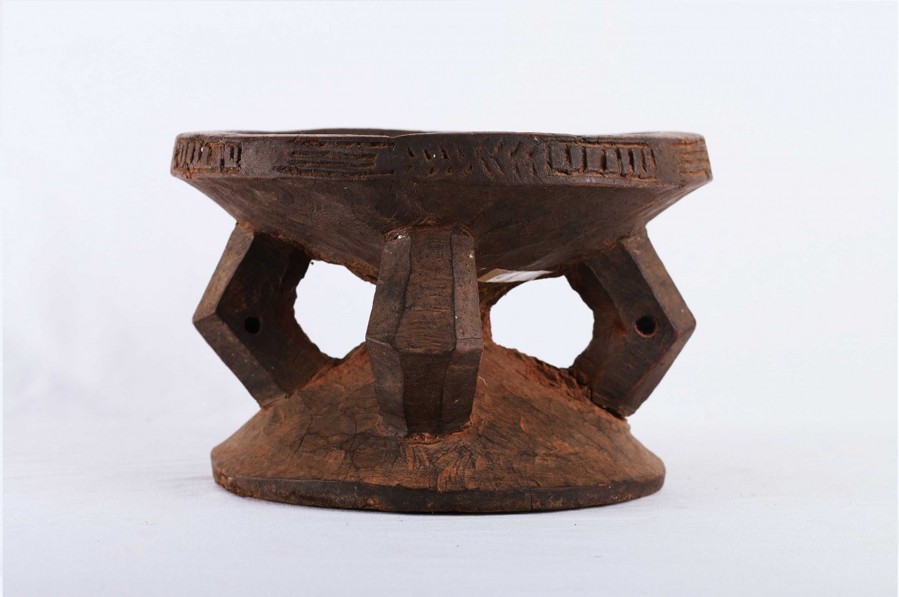 The Lega is found in the virgin forest of eastern DRC, next to Luba people. Like nearly all art among the Lega, stools have a metaphoric use in the Bwami association, the primary secret society by which socio-political life is structured. Members at the level called Yananio keep their stools until death, at which time it is passed on to their replacement within Bwami. Stools designate status and represent the complete moral code of society. This stool is in good condition, though worn with age, and has evidence overall of old worm wear to the surfaces.