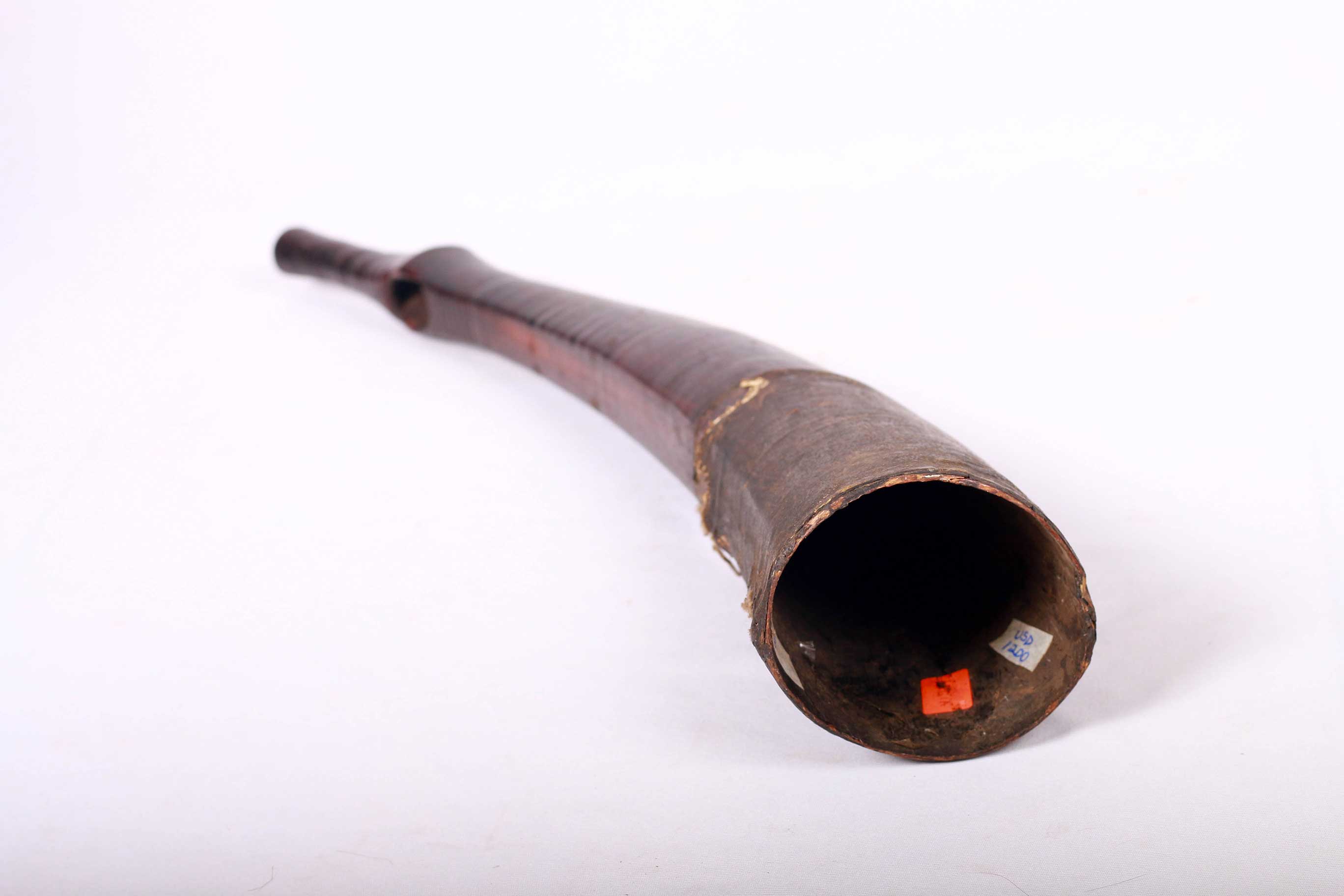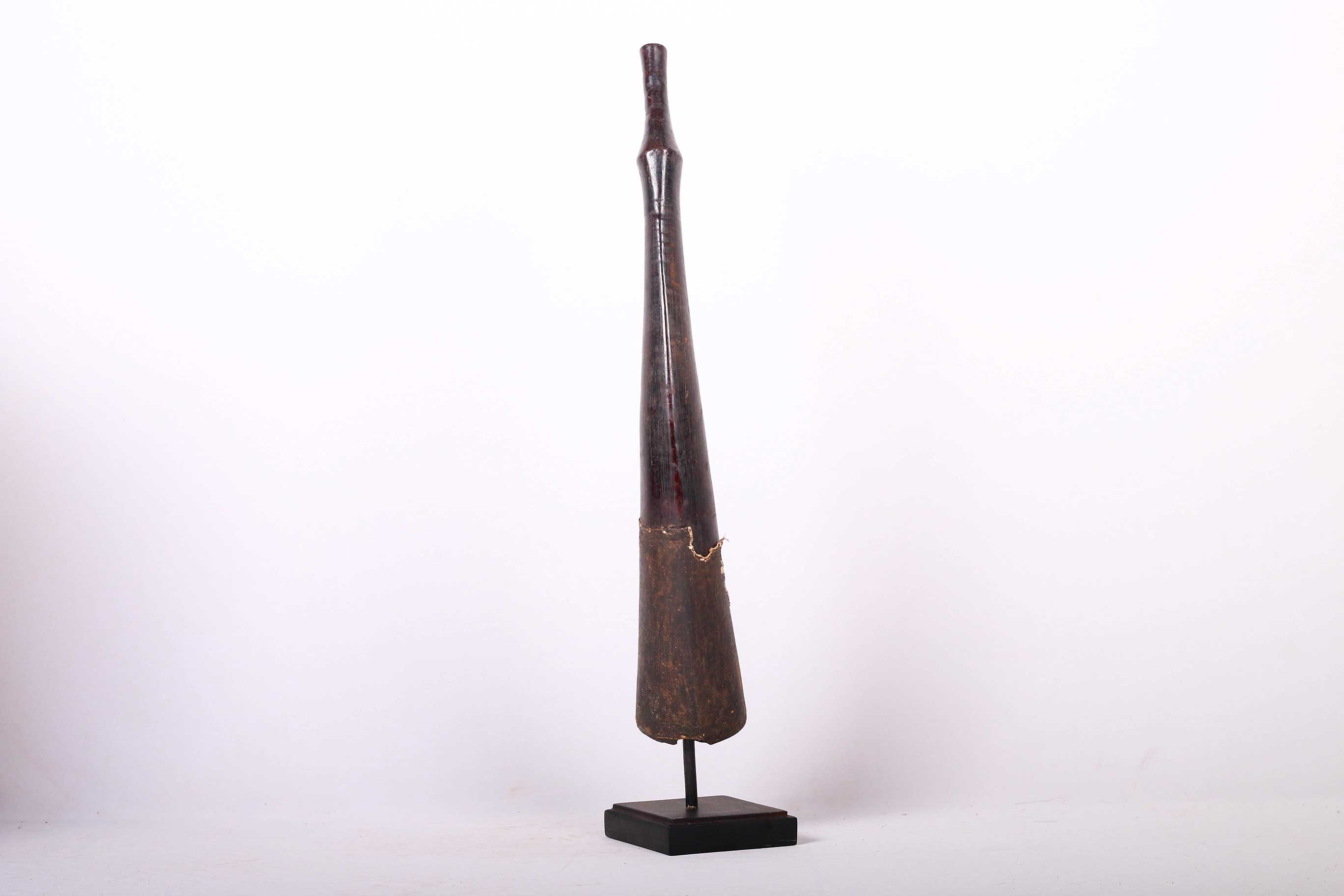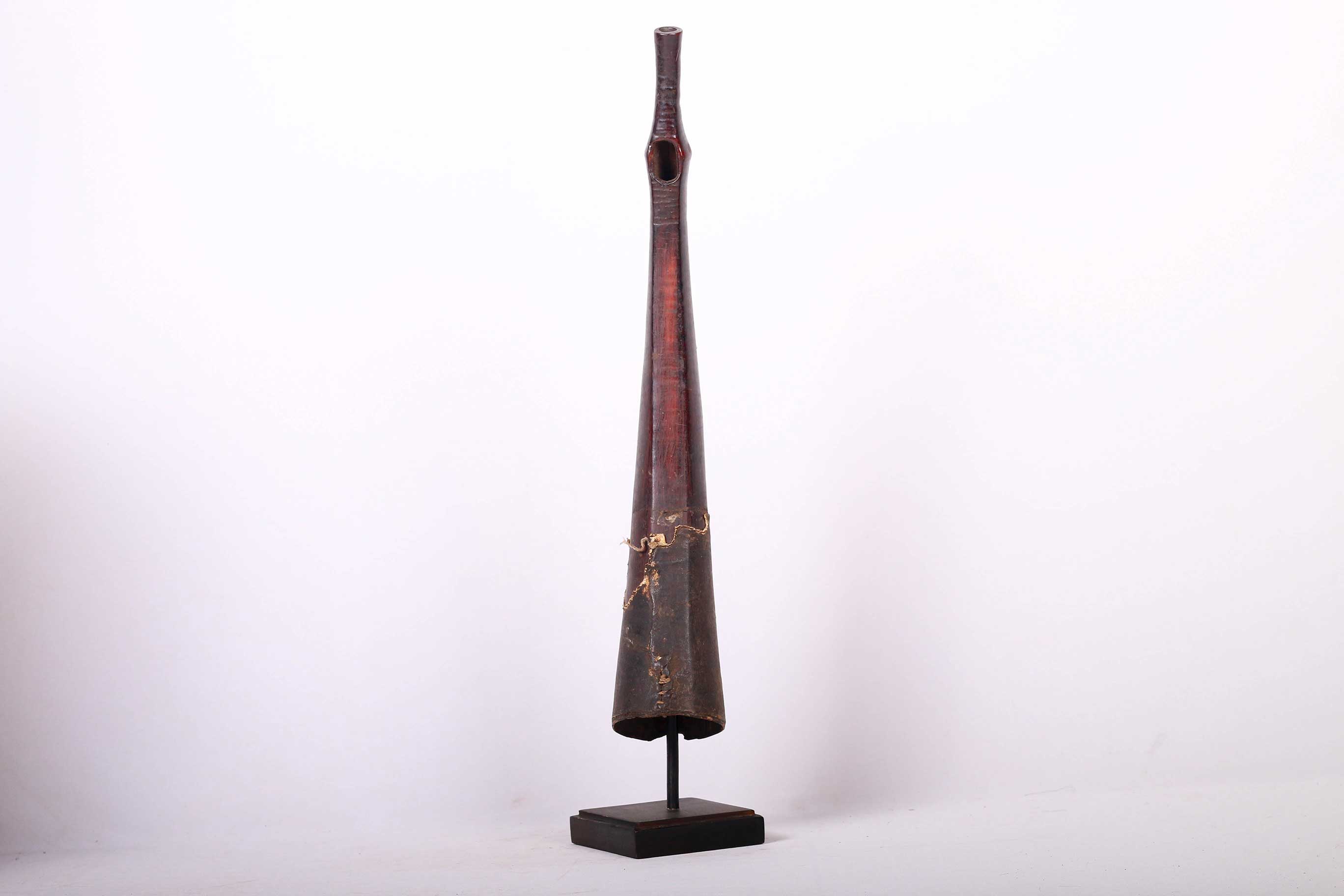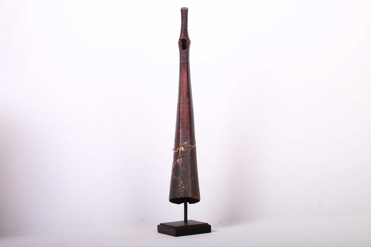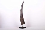The Lega is an ethnic group found in the Democratic Republic of Congo. The Lega tribe art is created for primarily their semisecret associations of men and women, such as the Bwami society of the Lega peoples. The following is a side-blown trumpet made of visibly very old ivory. Such horns were blown in war dances, they also announced the killing of an elephant.