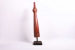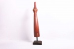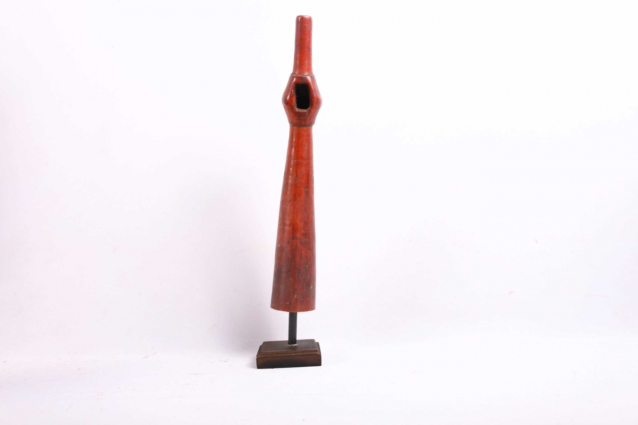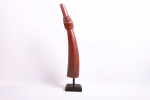The Lega is an ethnic group found in the Democratic Republic of Congo. The Lega tribe art is created for primarily their semisecret associations of men and women, such as the Bwami society of the Lega peoples. The teachings of Bwami are a cornerstone of all aspects of life, guiding the moral development of the individual and governing relations with others. Bwami doctrine is represented by wood and ivory masks, heads, and small figures, all of which play a vital role during initiation into the society’s highest grades. This is a Lega mask commonly known as “Mpanda”, it is painted on the side with black lettering. It is a side-blown trumpet made of visibly very old ivory. With an oval mouthpiece on the inside, a charming face in relief on the thickened external body, and a hole for a carrying cord underneath. The external surfaces of the instrument are decorated with typical tribal motifs of geometric dots of the Lega, a tribe living in the eastern Democratic Republic of Congo. Such horns were blown in war dances, they also announced the killing of an elephant.