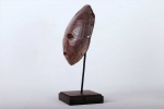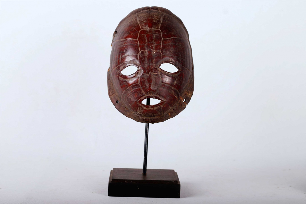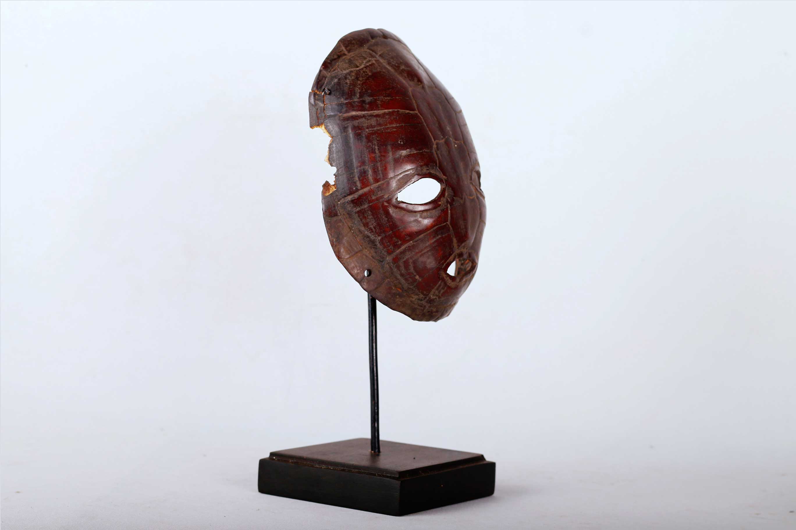 The Lega is found in the virgin forest of eastern DRC, between the great lakes and the Lualaba River, next to Luba people. This is an old Lega mask that was carved from turtle shell it shows wear and tear and has a nice patina. The Lega admire turtles which they commonly refer to as Nkulu for their slow and cautious movements. They also believe that they are smart. During ceremonies, turtles are represented with sculptures or with a shell. They symbolize the wisdom of the older senior members of the Bwami.