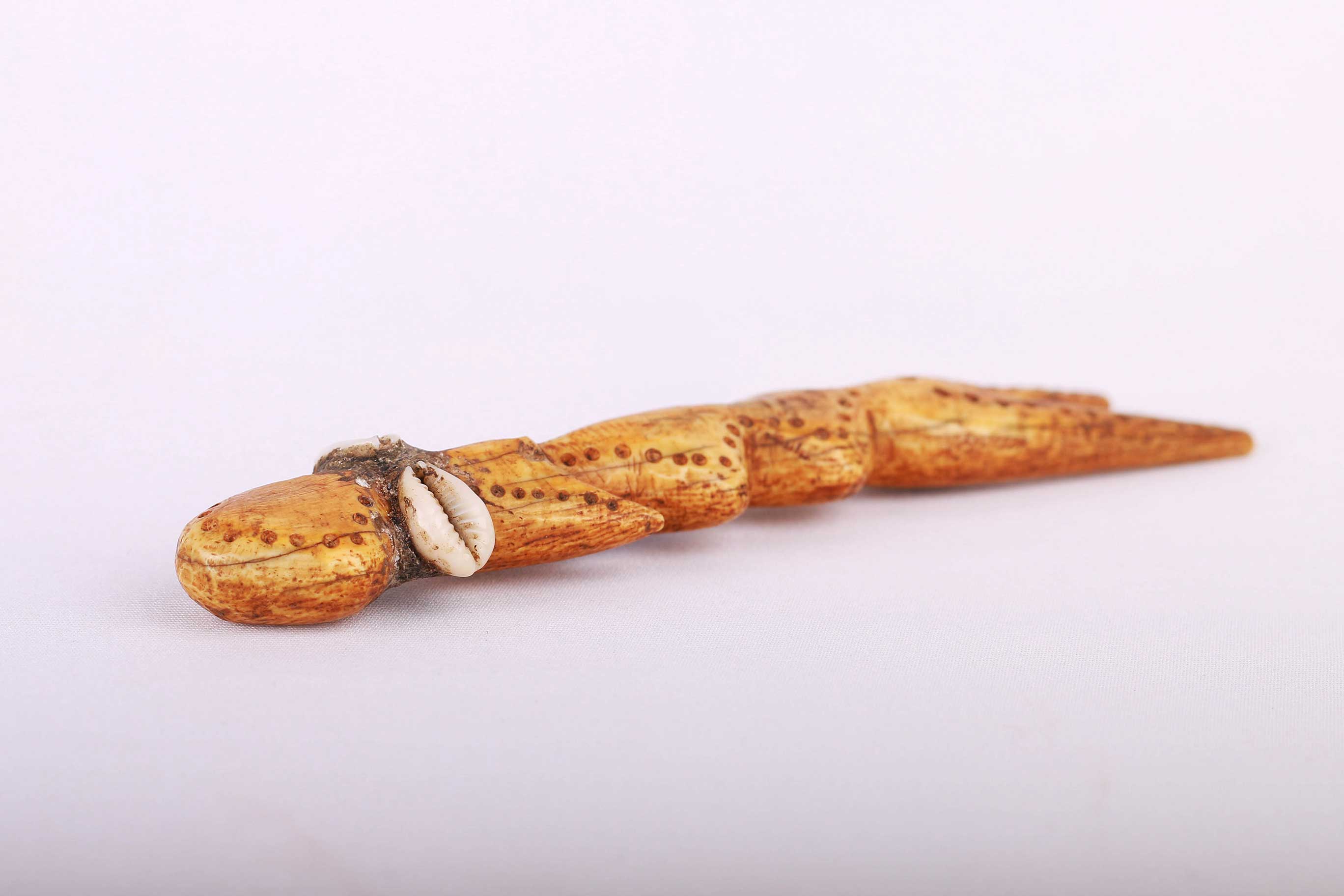 - Material: Ivory and cowrie shells